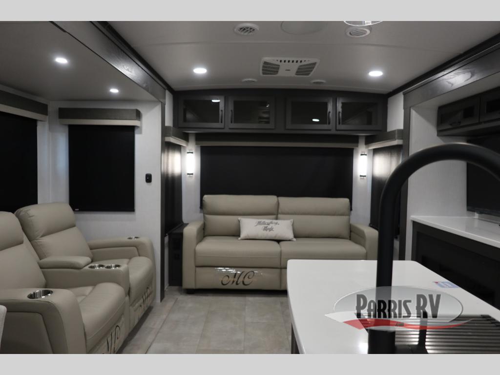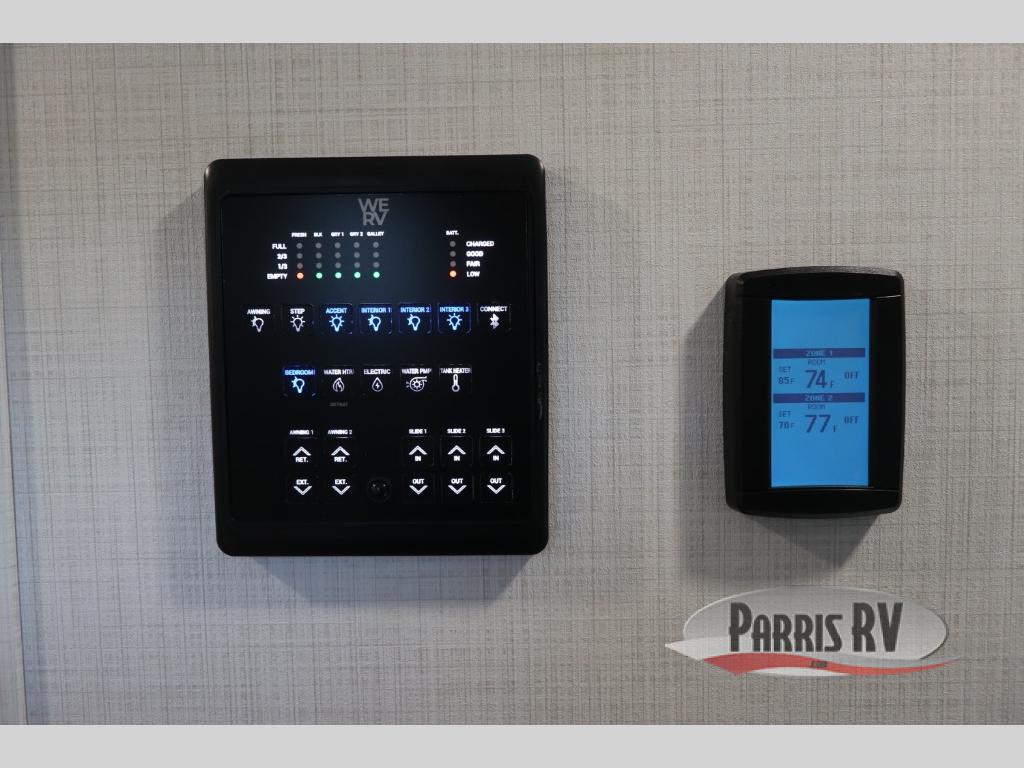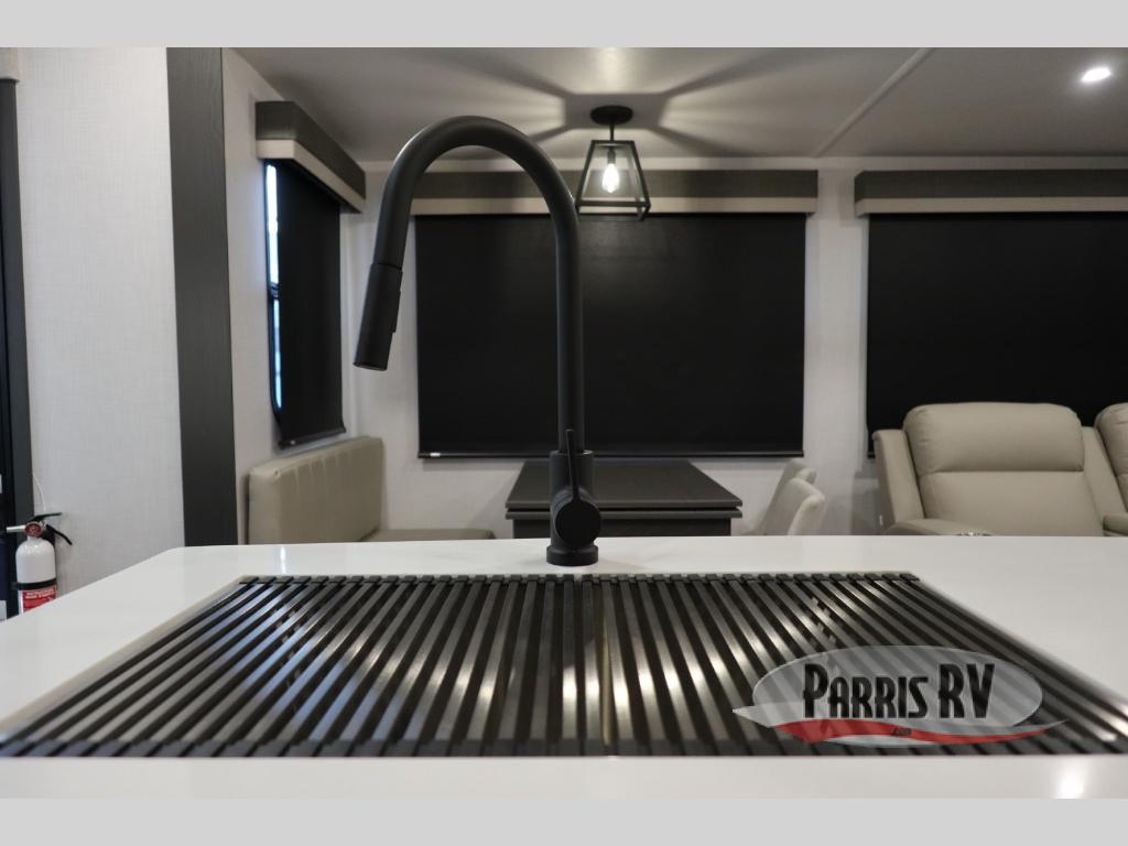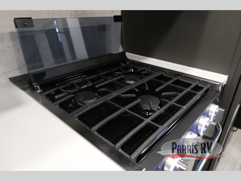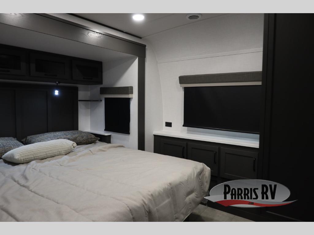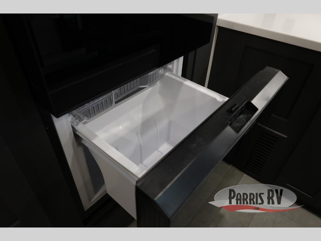 You're going to love the amount of natural light in this model with large windows in the back and the door side. The chef of the group will love the kitchen island, and there is tons of storage space for dishes, food, and knickknacks. The entertainment center with a Smart TV will allow you to watch movies at night, or you may just find yourselves outside under the two power awnings with LED lights. There is also an outside griddle here to cook pancakes in the morning. The king bed is sure to bring comfort, and you'll appreciate the large wardrobe to keep your clothes tidy. There is even washer and dryer prep if you choose to go full-time!