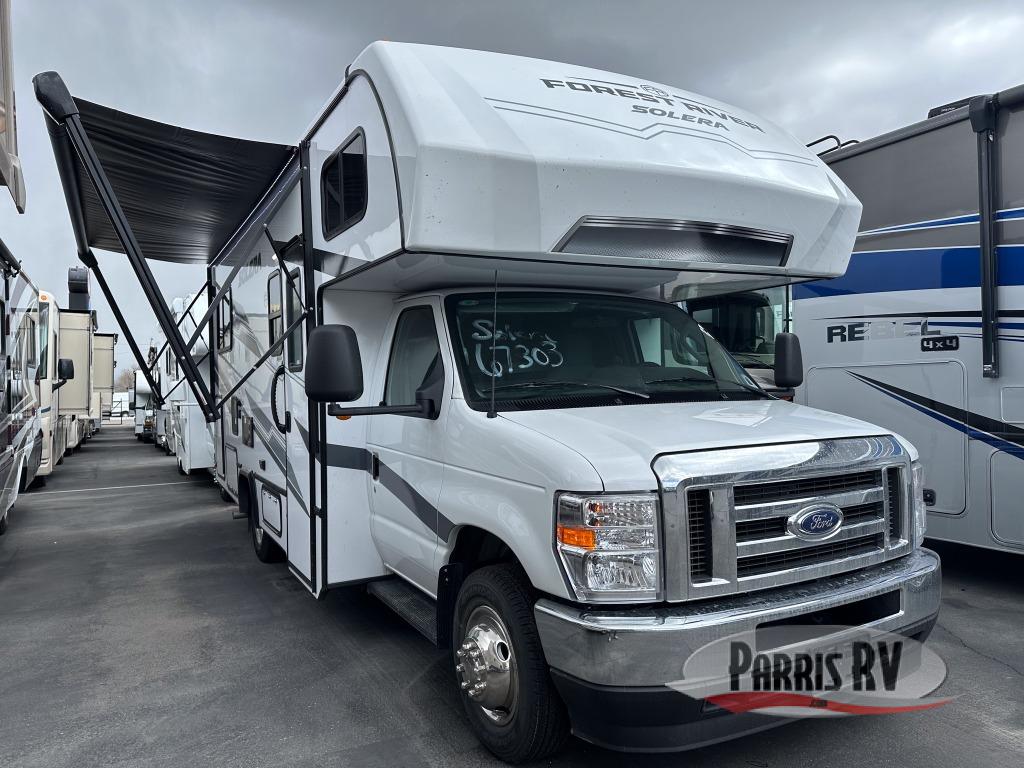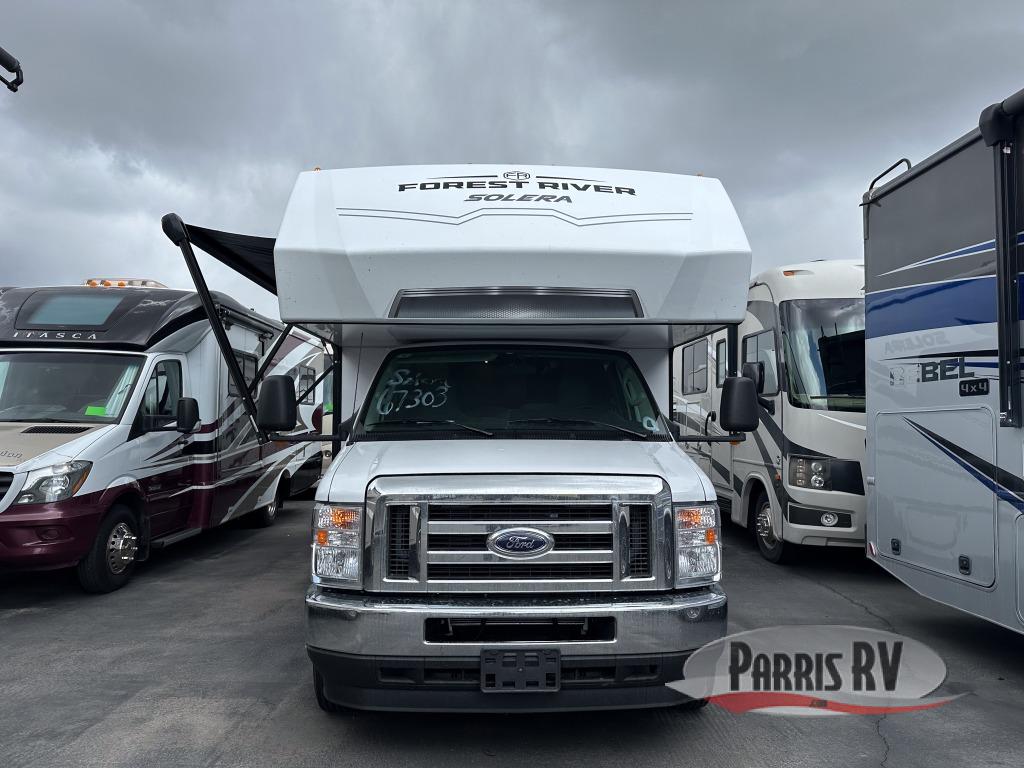 Each one of these Forest River Solera Class C gas and diesel motorhomes proclaim the style of a new generation! There is a convenient keyless entry, a backup and side view camera system, and a 10" in-dash touch screen Apple Carplay/Android Auto radio. The Ford E350/Chevy 3500, Ford E450 or Mercedes-Benz Sprinter 3500 chassis also help with the smooth ride. Each model includes aluminum framed laminated sidewalls, superlite composite substrate, and a gel coat exterior fiberglass for added durability. Inside, you will enjoy the MCD roller shades, residential style furniture with Fortress stain resistant fabrics, soft touch self-closing drawer guides, and many more comforts. And you can stay connected where ever you go with the Winegard Air 360+ antenna with Gateway 4G WiFi capability.