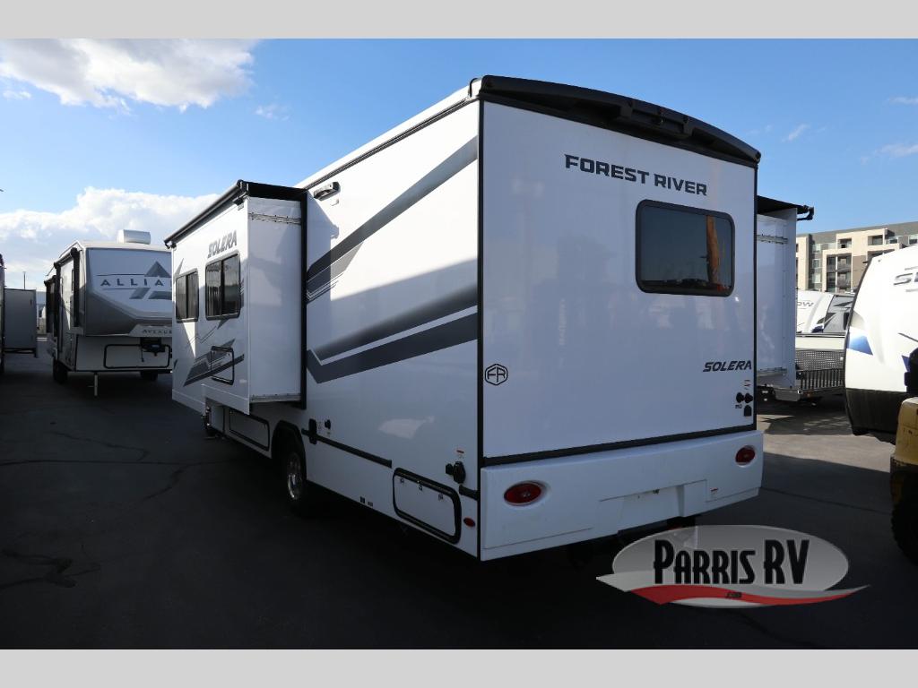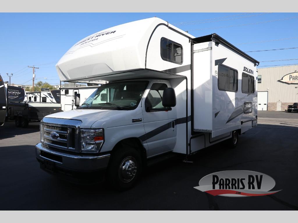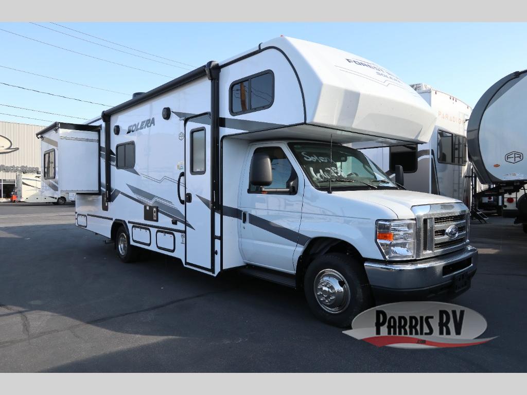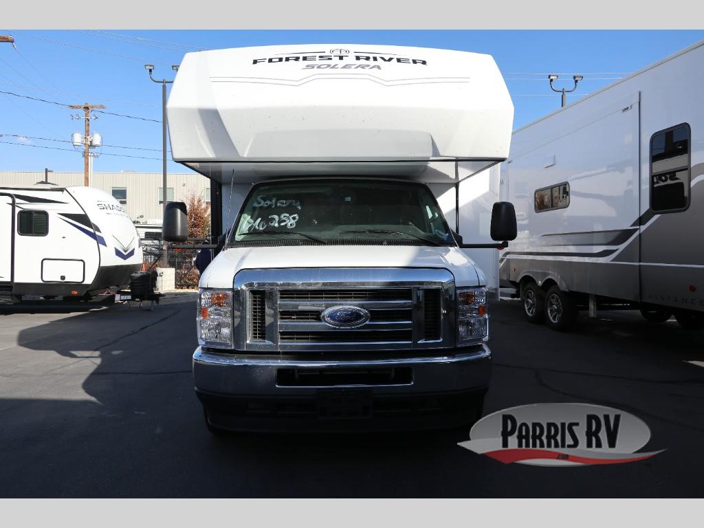 Each one of these Forest River Solera Class C gas and diesel motorhomes proclaim the style of a new generation! There is a convenient keyless entry, a backup and side view camera system, and a 10" in-dash touch screen Apple Carplay/Android Auto radio. The Ford E350/Chevy 3500, Ford E450 or Mercedes-Benz Sprinter 3500 chassis also help with the smooth ride. Each model includes aluminum framed laminated sidewalls, superlite composite substrate, and a gel coat exterior fiberglass for added durability. Inside, you will enjoy the MCD roller shades, residential style furniture with Fortress stain resistant fabrics, soft touch self-closing drawer guides, and many more comforts. And you can stay connected where ever you go with the Winegard Air 360+ antenna with Gateway 4G WiFi capability.