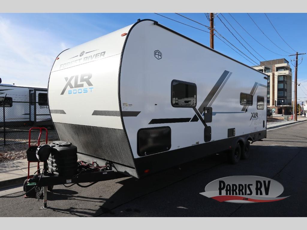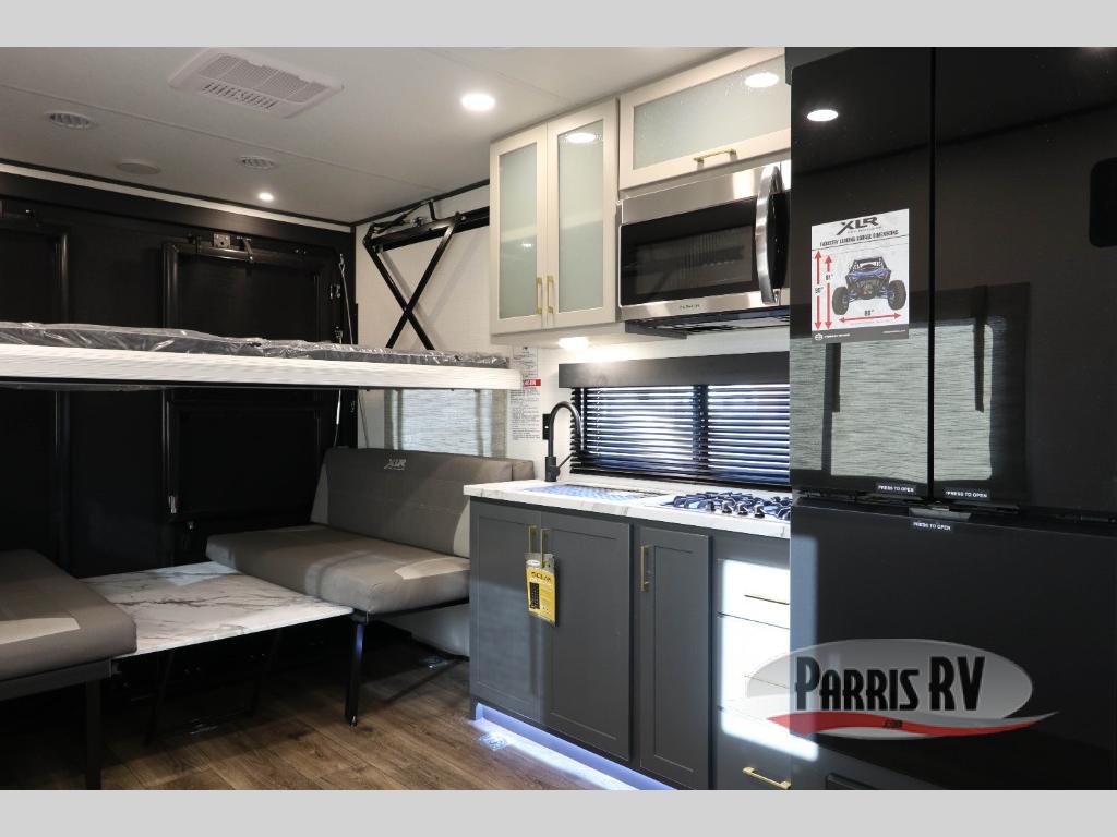Boost into action camping with one of these Forest River XLR Boost fifth wheel toy haulers or travel trailer toy haulers! The 8' 5" wide body design not only provides ample interior space, but also packs in all of the luxurious features to make your trips great. There is Freon rigid urethane spray foam roof insulation and sidewall construction, along with fiberglass flooring insulation, and roof attic vents within the mandatory Climate Comfort Package so you can camp all year around. The Convenience Package is also mandatory, and includes a tankless water heater, back up camera prep, a 15K BTU main roof A/C, and more features to make each trip accommodating. You will love the decorative kitchen backsplash included in the Xplore Package, as well as a residential style kitchen faucet, a bath vent fan, and industrial garage flooring that will withstand your many adventures. A Renewable Energy Package includes a 200W roof mounted solar panel for off-grid capabilities, and you can choose the optional 30 gallon fuel tank with a pumping station for even more convenience!