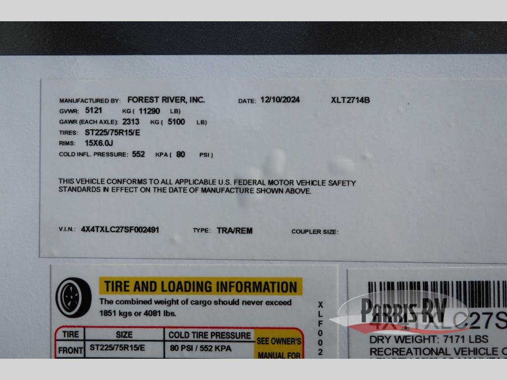 New 2025 Forest River RV XLR Boost 2714B