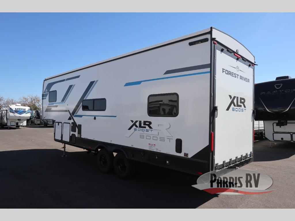 Boost into action camping with one of these Forest River XLR Boost fifth wheel toy haulers or travel trailer toy haulers! The 8' 5" wide body design not only provides ample interior space, but also packs in all of the luxurious features to make your trips great. There is Freon rigid urethane spray foam roof insulation and sidewall construction, along with fiberglass flooring insulation, and roof attic vents within the mandatory Climate Comfort Package so you can camp all year around. The Convenience Package is also mandatory, and includes a tankless water heater, back up camera prep, a 15K BTU main roof A/C, and more features to make each trip accommodating. You will love the decorative kitchen backsplash included in the Xplore Package, as well as a residential style kitchen faucet, a bath vent fan, and industrial garage flooring that will withstand your many adventures. A Renewable Energy Package includes a 200W roof mounted solar panel for off-grid capabilities, and you can choose the optional 30 gallon fuel tank with a pumping station for even more convenience!