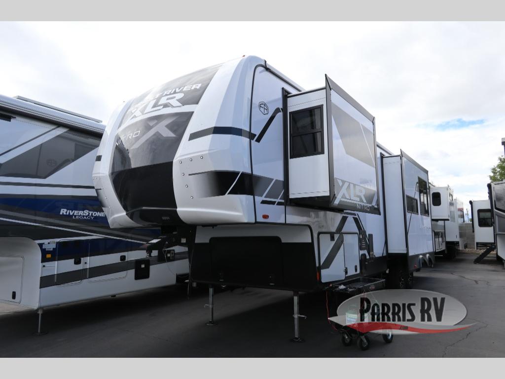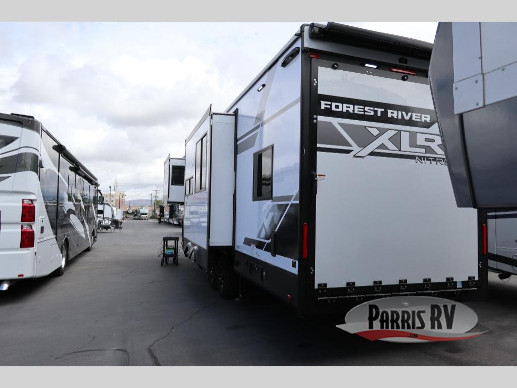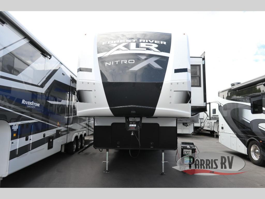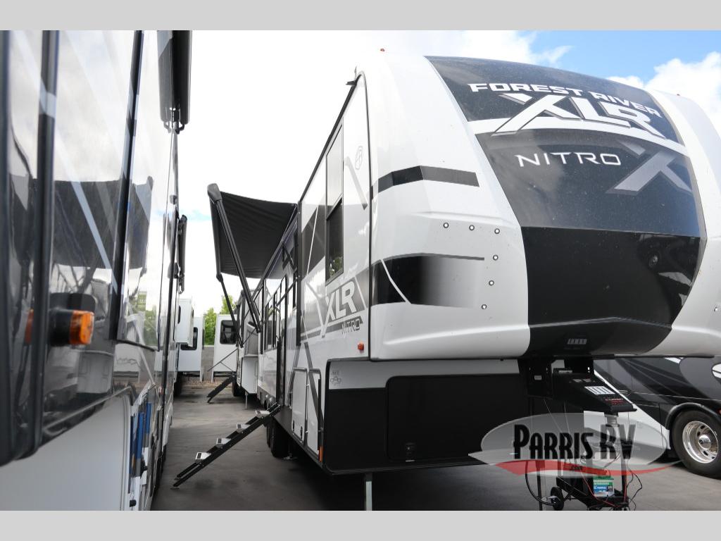 The outdoor enthusiasts has met their match with the XLR Nitro toy haulers by Forest River. The vacuum-bonded aluminum framed sidewalls, gel-coat fiberglass exterior, and singular roof membrane are just a few durable construction materials you will find on these models. There is a weatherproof insulated ramp door, 5,000 lb. cargo tie-downs, a 40 gallon fuel station, and more convenient garage features that will make camping with toys easier than ever. You'll appreciate smooth towing thanks to the MORryde CRE3000 suspension enhancement and 16" Goodyear Endurance tires. A 200 watt roof-mounted solar panel also comes standard, along with electric awning(s) with LED lights, undercarriage lighting, and friction hinge entry door(s). Some of the innovative technology features include a Winegard Air 360 antenna with WiFi prep and 4G LTE, convenient USB charging stations, and a Gear Guardian wireless camera for inside the garage to help keep your gear secure. You will also find diamonds solid surface kitchen countertops, Luna Quartz bathroom countertops, hardwood cabinet doors, stylish window trim package, and many more interior comforts.