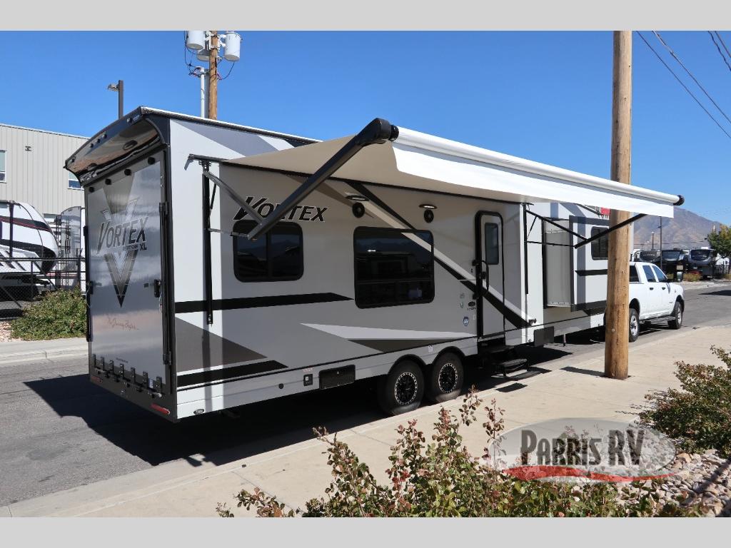 Get ready for adventure with the Vortex toy haulers by Genesis Supreme. The innovative floorplans provide you with everything you need for memorable trips. These models can withstand the extreme heat of the desert, while still keeping you comfortable inside. There are kitchen and bath amenities inside, along with ample storage space for your belongings. With a wide variety of floorplans to choose from, you're sure to find the Vortex that fits your needs best!