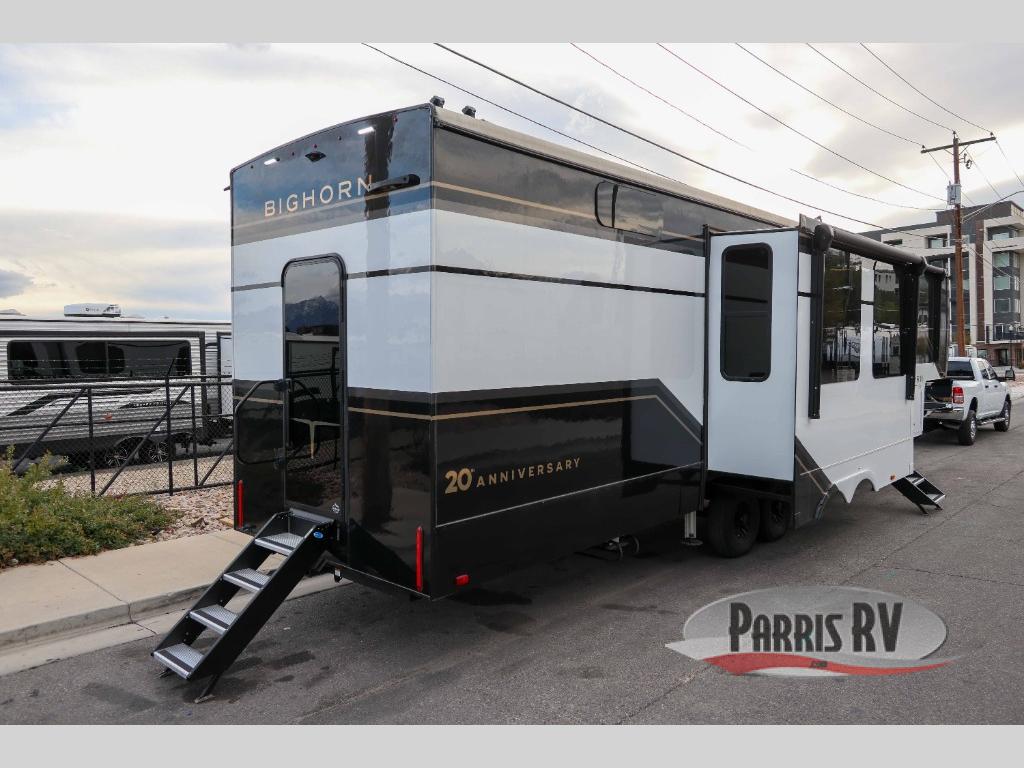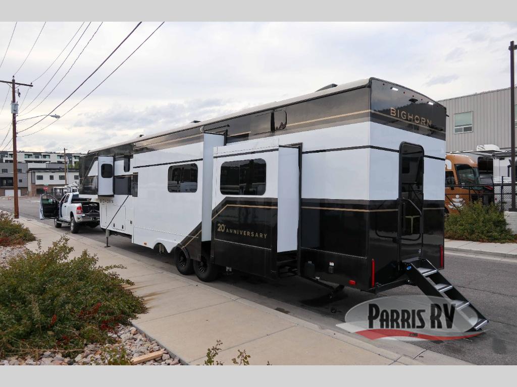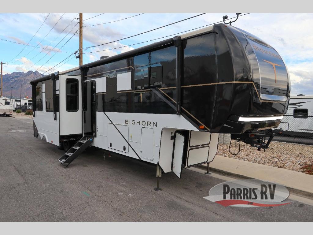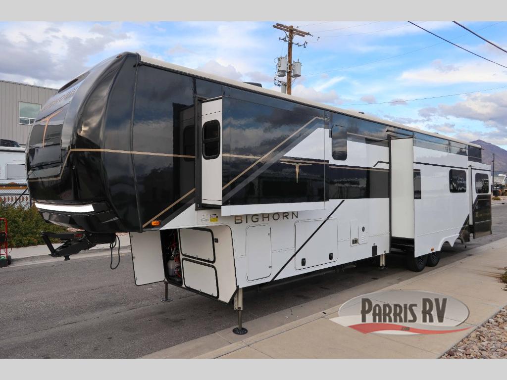 With any Bighorn fifth wheel by Heartland you will enjoy a luxurious interior and outdoor features to complement your adventurous lifestyle. Each one features tire pressure monitoring system and bighorn custom hardwood cabinetry and slide fascia for a durable fifth wheel made to last. All of your gear can fit in the super HRV exclusive exterior store mor storage system w/ slam latch baggage doors, and you can easily set up camp with the 6-point hydraulic leveling system. The high performance rubberized suspension will provide a smooth ride each time you head to the campground, and there are three full body paint options for an eye-catching exterior. Head inside to find solid surface countertops throughout, tinted frameless windows, a luxurious one piece fiberglass shower, oversized copper sink with roller cover, and the list goes on. Start a new adventure in a Bighorn fifth wheel today!