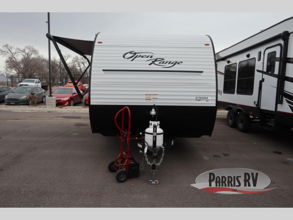 The affordable Open Range Conventional travel trailers by Highland Ridge are ready to meet your camping needs! You will appreciate the durable Magnum Roof system, plus each model is constructed with black front diamond plate protection, 5/8" main floor decking, and self-adjusting electric brakes with E-Z Lube axles for smooth towing. The 81" interior height means you won't feel cramped when relaxing with friends and family, and the residential vinyl flooring throughout is easy to clean, which will be perfect if you're camping with little ones or pets. These models also include a ceiling mount Bluetooth speaker plus a 13,500 BTU roof mounted A/C to keep you cool on those hot summer months.