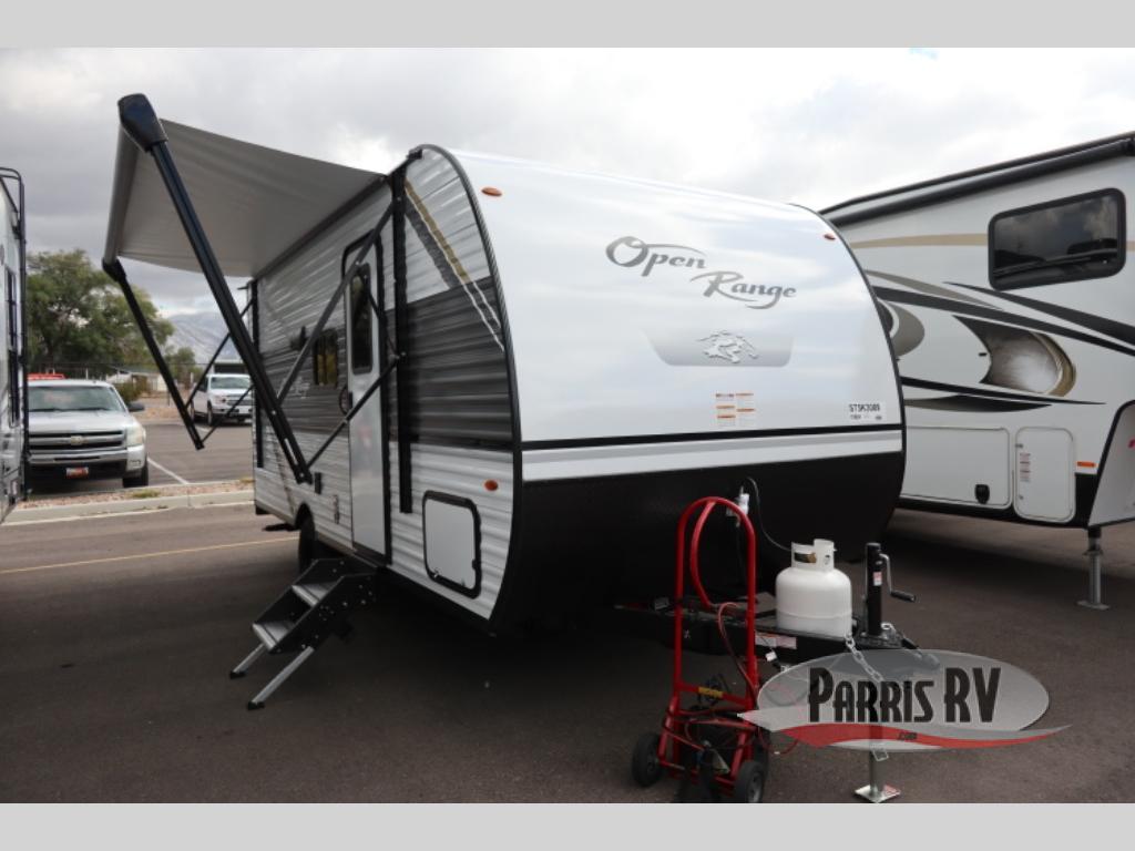 The affordable Open Range Conventional travel trailers by Highland Ridge are ready to meet your camping needs! You will appreciate the durable Magnum Roof system, plus each model is constructed with black front diamond plate protection, 5/8" main floor decking, and self-adjusting electric brakes with E-Z Lube axles for smooth towing. The 81" interior height means you won't feel cramped when relaxing with friends and family, and the residential vinyl flooring throughout is easy to clean, which will be perfect if you're camping with little ones or pets. These models also include a ceiling mount Bluetooth speaker, a digital TV antenna that will go perfectly with the optional Smart TV, plus a 13,500 BTU roof mounted A/C to keep you cool on those hot summer months.