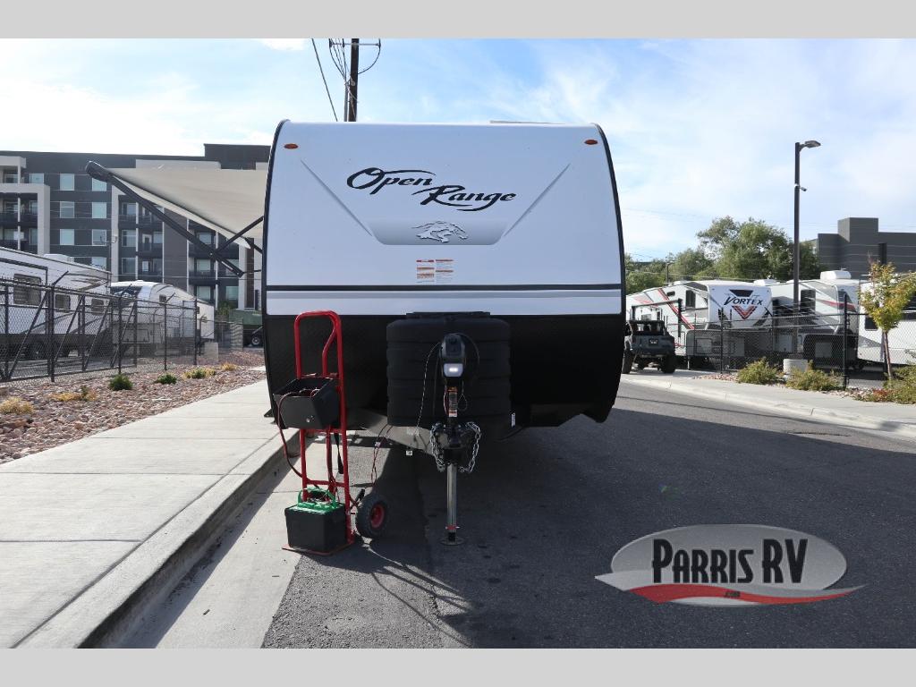 The affordable Open Range Conventional travel trailers by Highland Ridge are ready to meet your camping needs! You will appreciate the durable Magnum Roof system, plus each model is constructed with black front diamond plate protection, 5/8" main floor decking, and self-adjusting electric brakes with E-Z Lube axles for smooth towing. The 81" interior height means you won't feel cramped when relaxing with friends and family, and the residential vinyl flooring throughout is easy to clean, which will be perfect if you're camping with little ones or pets. These models also include a ceiling mount Bluetooth speaker, a digital TV antenna that will go perfectly with the optional Smart TV, plus a 13,500 BTU roof mounted A/C to keep you cool on those hot summer months.