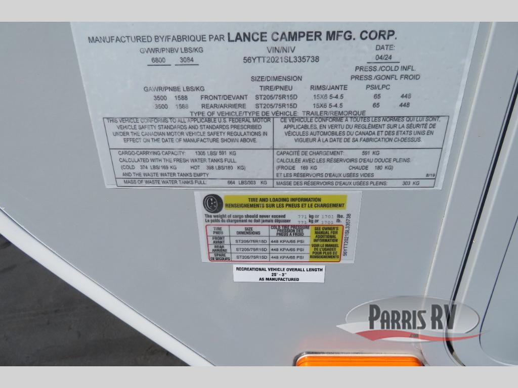 New 2025 Lance Lance Travel Trailers 2075
