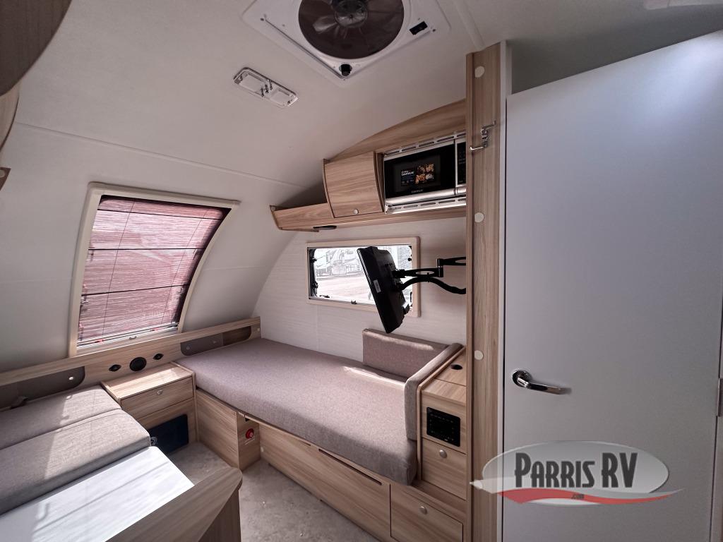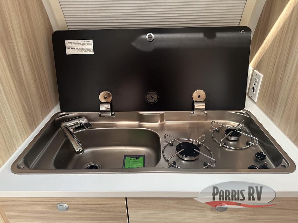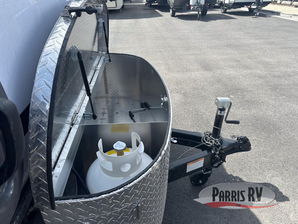 If you enjoy lightweight camping, this teardrop trailer is for you! Everything you need for trips to the lake will be right there with you, including a convenient wet bath with a cassette toilet. The twin bed set up gives you cozy sleeping space, and they can convert to a dinette on one side with extra seating on the other side! There are stargazer windows to give you great views of your surroundings, and the open floorplan will have you feeling right at home. A glass top sink and two burner cooktop combo will let you cook meals each day, and the 5.0 cu. ft. 12V compressor refrigerator will be perfect for perishables. If the optional Black Canyon upgrade is chosen, the tongue weight will be 386 lbs. and the gross dry weight will be 2,729 lbs. See dealer for more details!