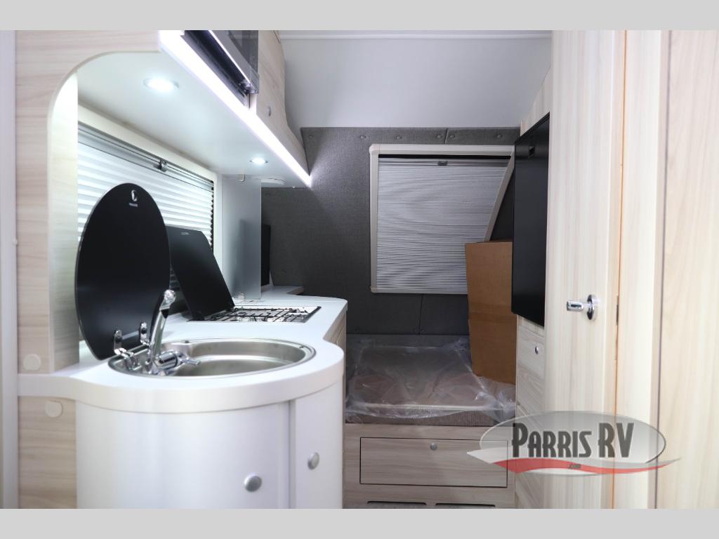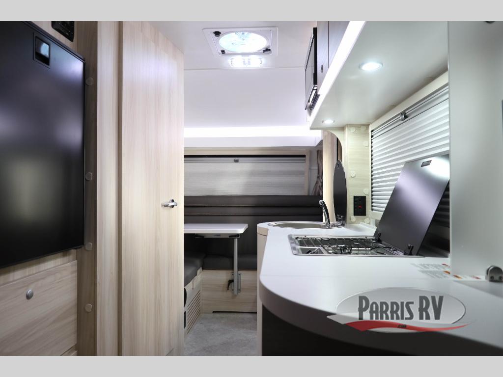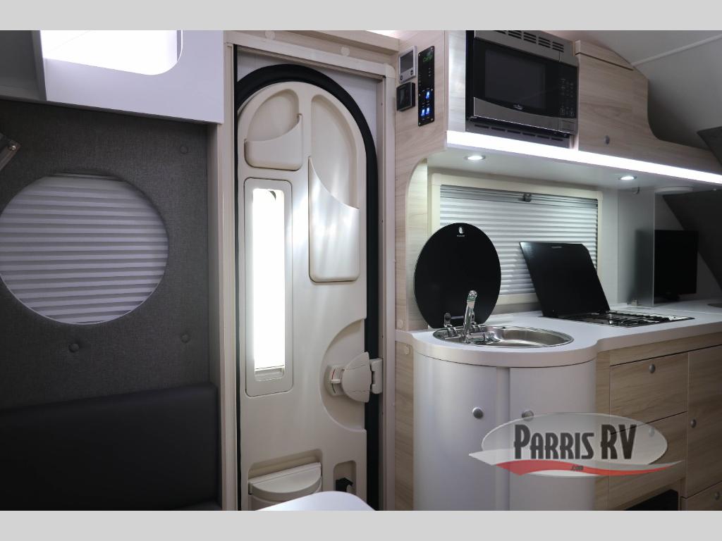 This teardrop trailer offers sleeping space for three with two sleeping areas; one up front and one in the rear. The dinette allows you to eat and relax during the day, and at night this space becomes sleeping space for one. The queen-size sleeping area is located on the opposite side with the wet bath in between for convenience for all. The galley kitchen will give the cook a place to make warm meals and store leftovers in the 4.6 cu. ft. 12V compressor refrigerator. Everyone can watch the 24" TV through the Bluetooth media center before bedtime, or in the morning as you all plan your next activity. And the Alde central heating/hot water system, as well as central air conditioning will keep you comfortable where ever you set up. If you enjoy more off-road type camping, consider the optional Boondock and Black Canyon package and Lithium battery upgrade which will allow you to go off-grid. The Lithium battery upgrade includes 400 Ah 12V lithium battery bank with internal heat and a 3,000 watt inverter/charger. Please note: The model specs. shown are for the classic TAB 400. With the Boondock optional package, the width will be 7' 8", height will be 8' 11", gross axle weight will be 3,900 lbs., dry tongue weight will be 399 lbs. and total gross dry weight will be 2,911 lbs. The Black Canyon optional package will have the same specs as the Boondock, but with a dry tongue weight of 385 lbs., and a total gross dry weight of 2,940 lbs.