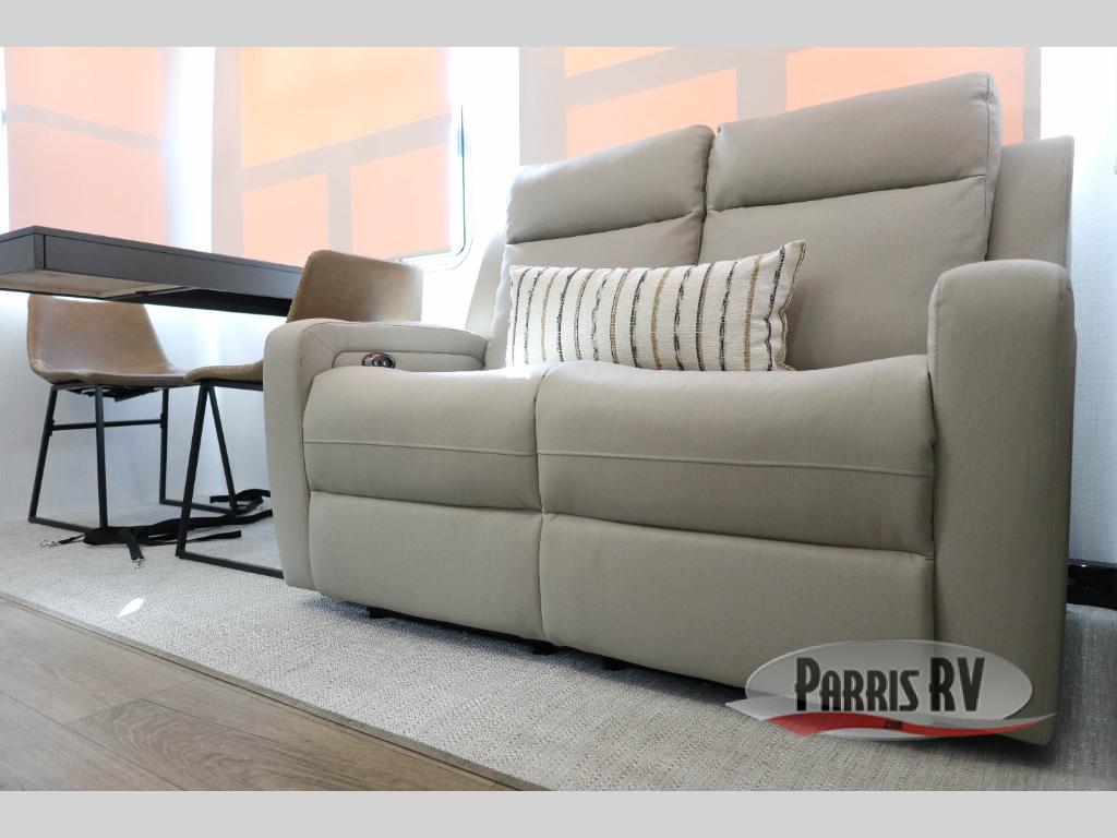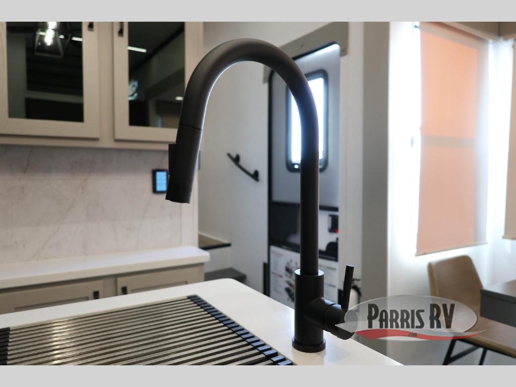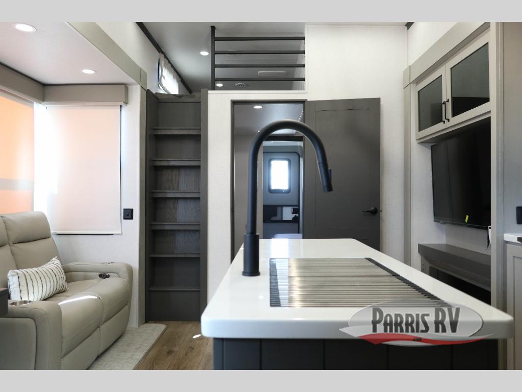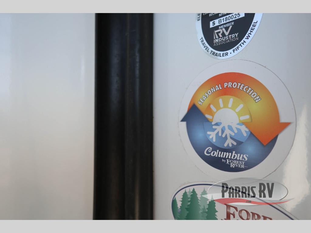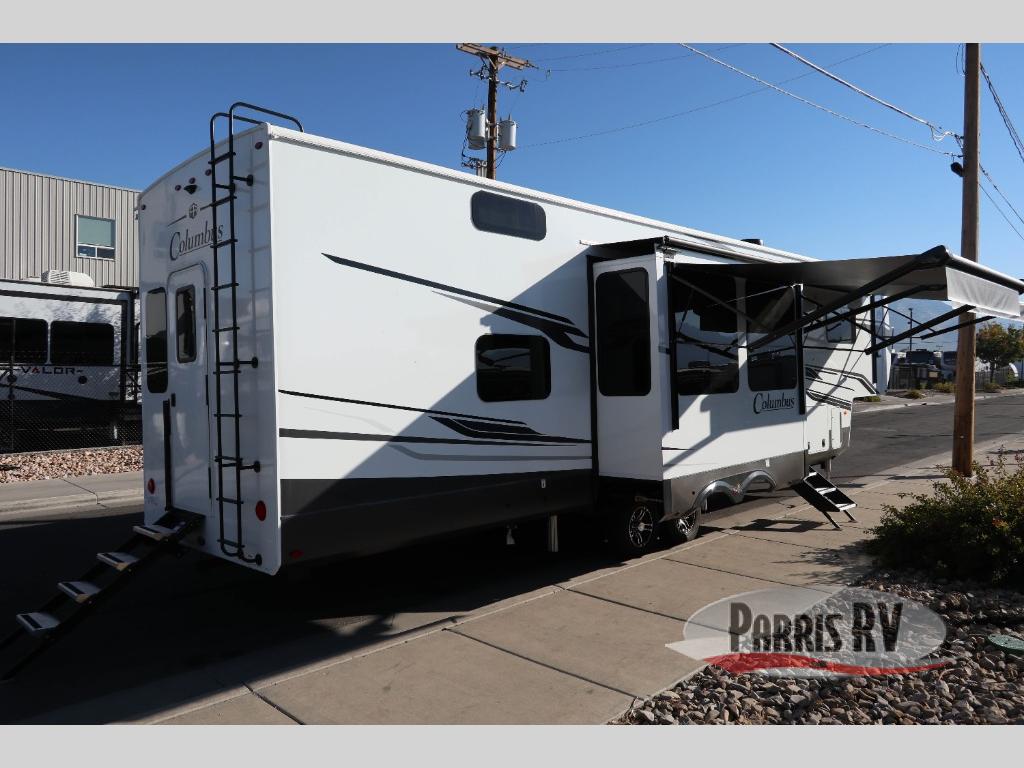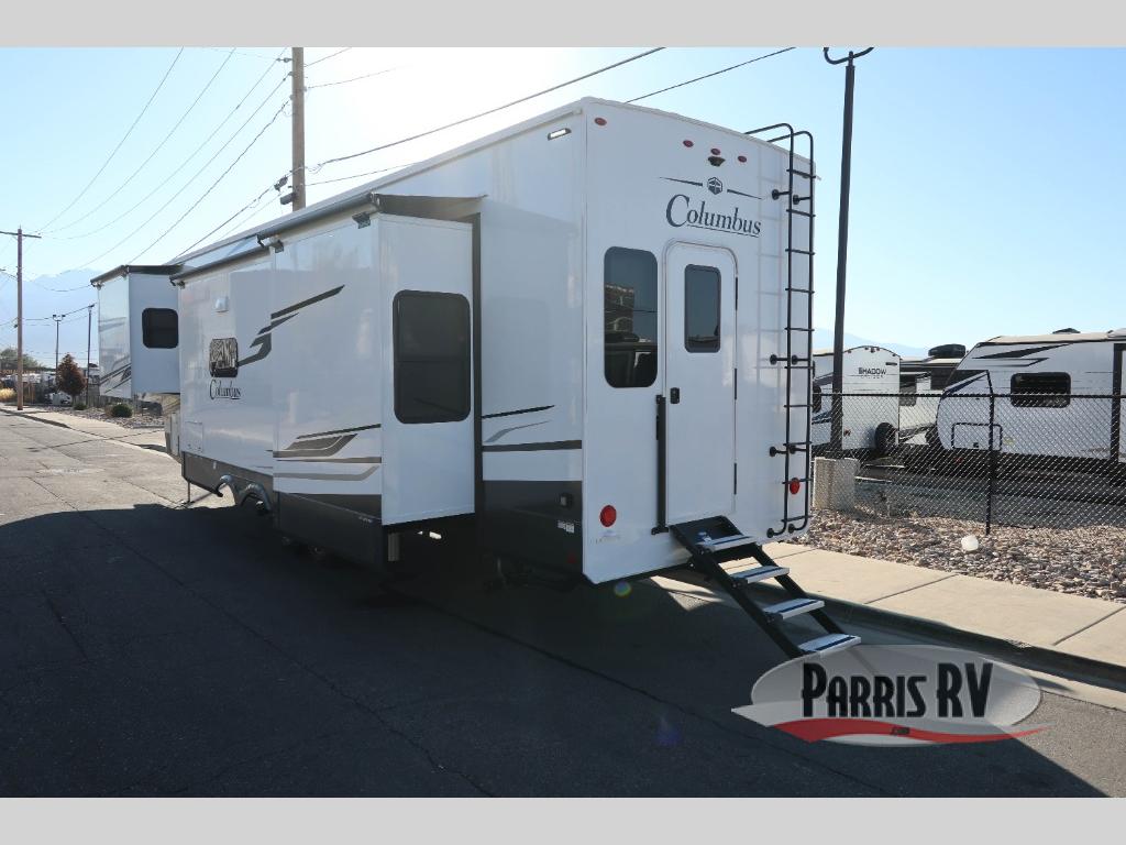 Experience a different camping life with residential furnishings and high end features in each one of these Palomino Columbus fifth wheels! The 101" wide body lets you walk around more throughout and the all-welded aluminum-frame superstructure has a snap-in ceiling molding to hold up through every adventure. Don't leave any of your gear behind either when you can easily store it in the climate controlled drop frame storage area. On the exterior, you'll find a heated utility convenience center, an outside sprayer to keep the dirt outside where it belongs, and magnetic compartment door holds to keep them from falling on you as you grab your items. Plus, there are some modern features that will really seal the deal like the Wi-Fi Booster with 4G LTE capability prep, upgraded true solid-surface countertops, power theater seating with USB charging, and a 260W solar panel for off-grid camping!