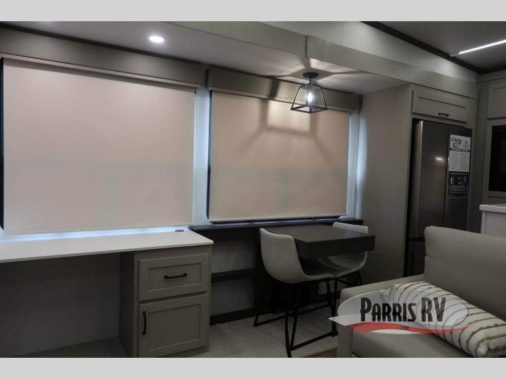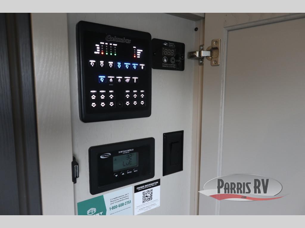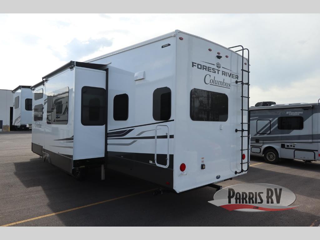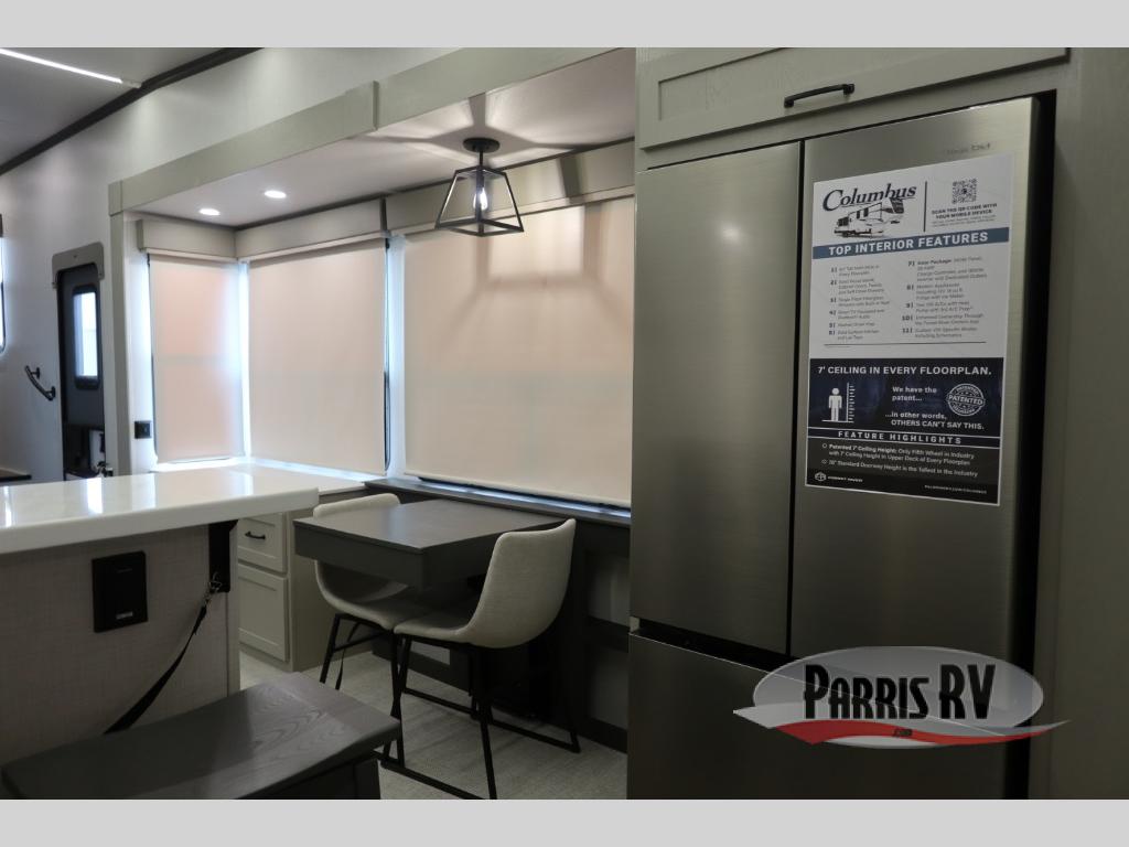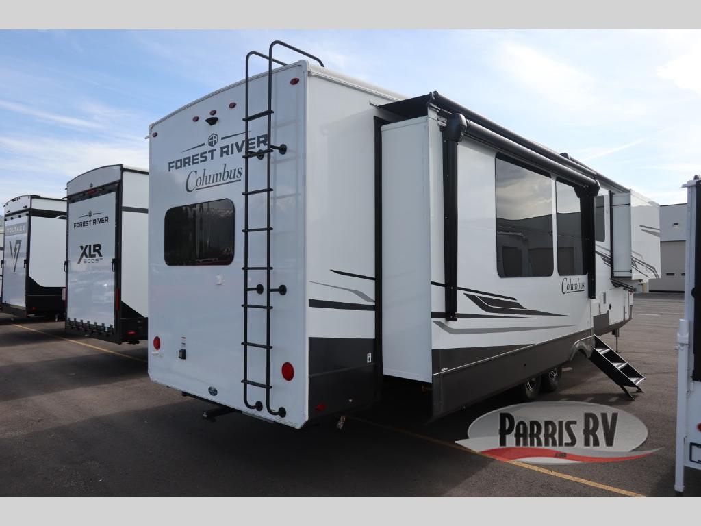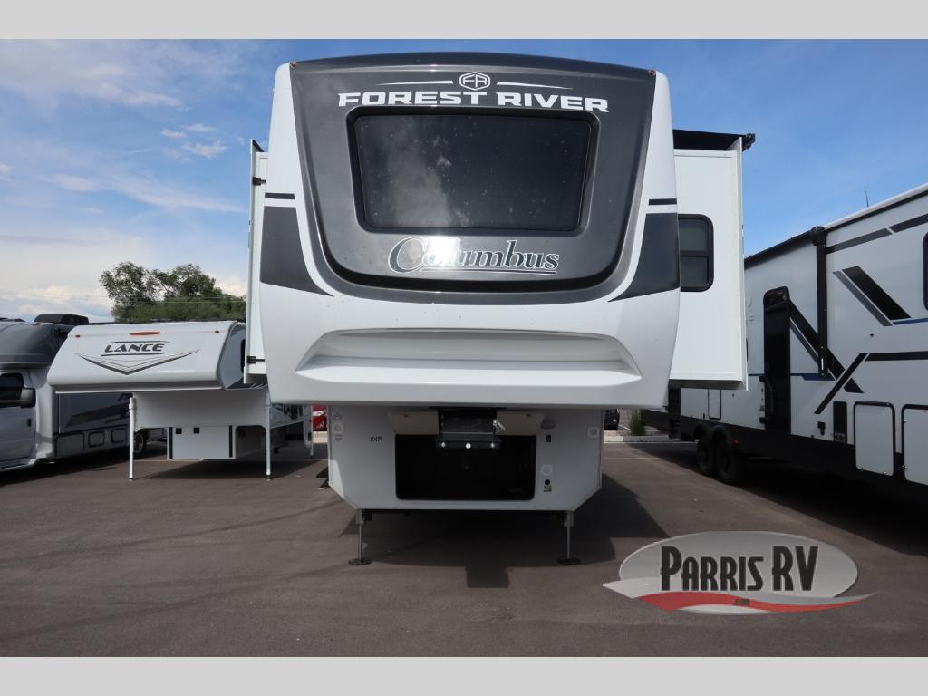 Experience a different camping life with residential furnishings and high end features in each one of these Palomino Columbus fifth wheels! The 101" wide body lets you walk around more throughout and the all-welded aluminum-frame superstructure has a snap-in ceiling molding to hold up through every adventure. Don't leave any of your gear behind either when you can easily store it in the climate controlled drop frame storage area. On the exterior, you'll find a heated utility convenience center, an outside sprayer to keep the dirt outside where it belongs, and magnetic compartment door holds to keep them from falling on you as you grab your items. Plus, there are some modern features that will really seal the deal like the Wi-Fi Booster with 4G LTE capability prep, upgraded true solid-surface countertops, power theater seating with USB charging, and a 260W solar panel for off-grid camping!