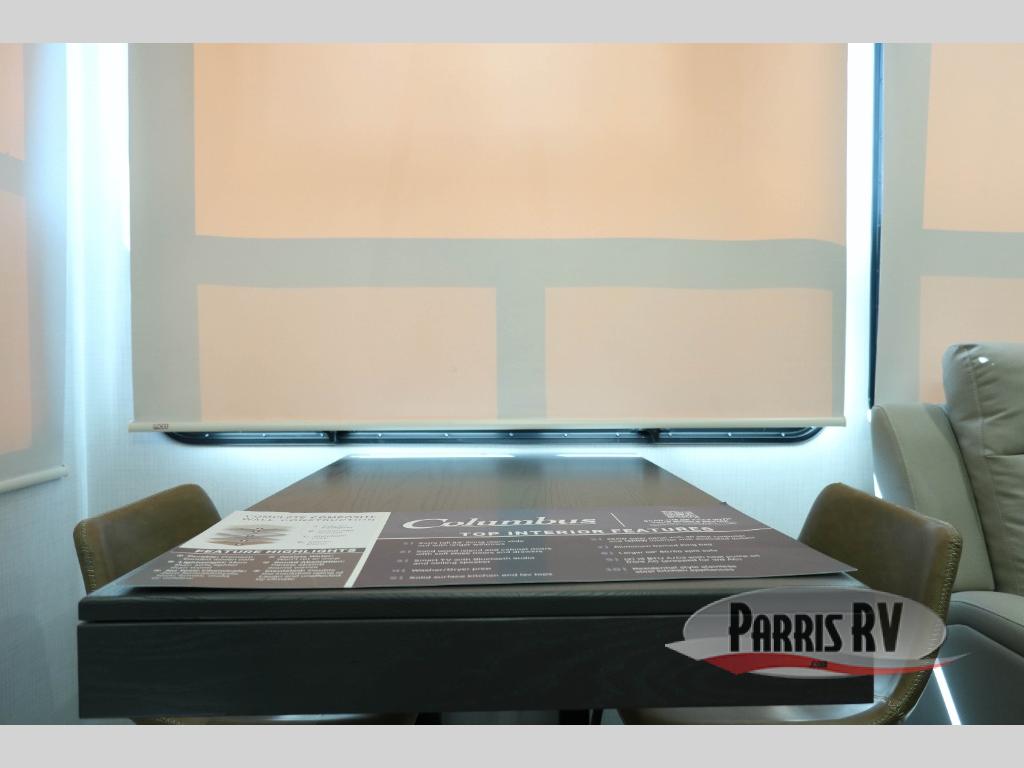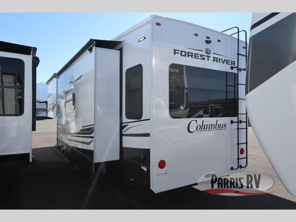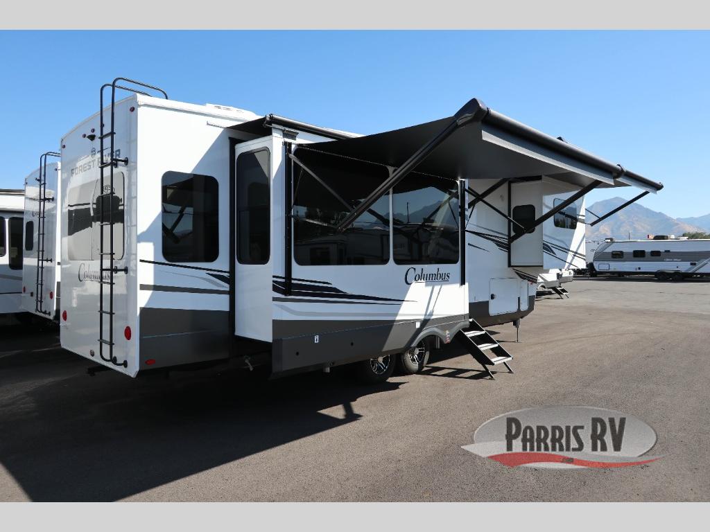 Experience a different camping life with residential furnishings and high end features in each one of these Palomino Columbus fifth wheels! The 101" wide body lets you walk around more throughout and the all-welded aluminum-frame superstructure has a snap-in ceiling molding to hold up through every adventure. Don't leave any of your gear behind either when you can easily store it in the climate controlled drop frame storage area. On the exterior, you'll find a heated utility convenience center, an outside sprayer to keep the dirt outside where it belongs, and magnetic compartment door holds to keep them from falling on you as you grab your items. Plus, there are some modern features that will really seal the deal like the Wi-Fi Booster with 4G LTE capability prep, upgraded true solid-surface countertops, power theater seating with USB charging, and a 260W solar panel for off-grid camping!