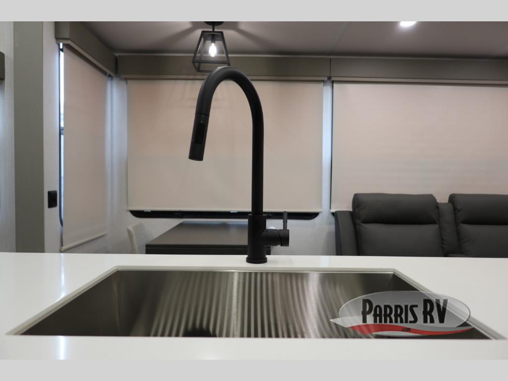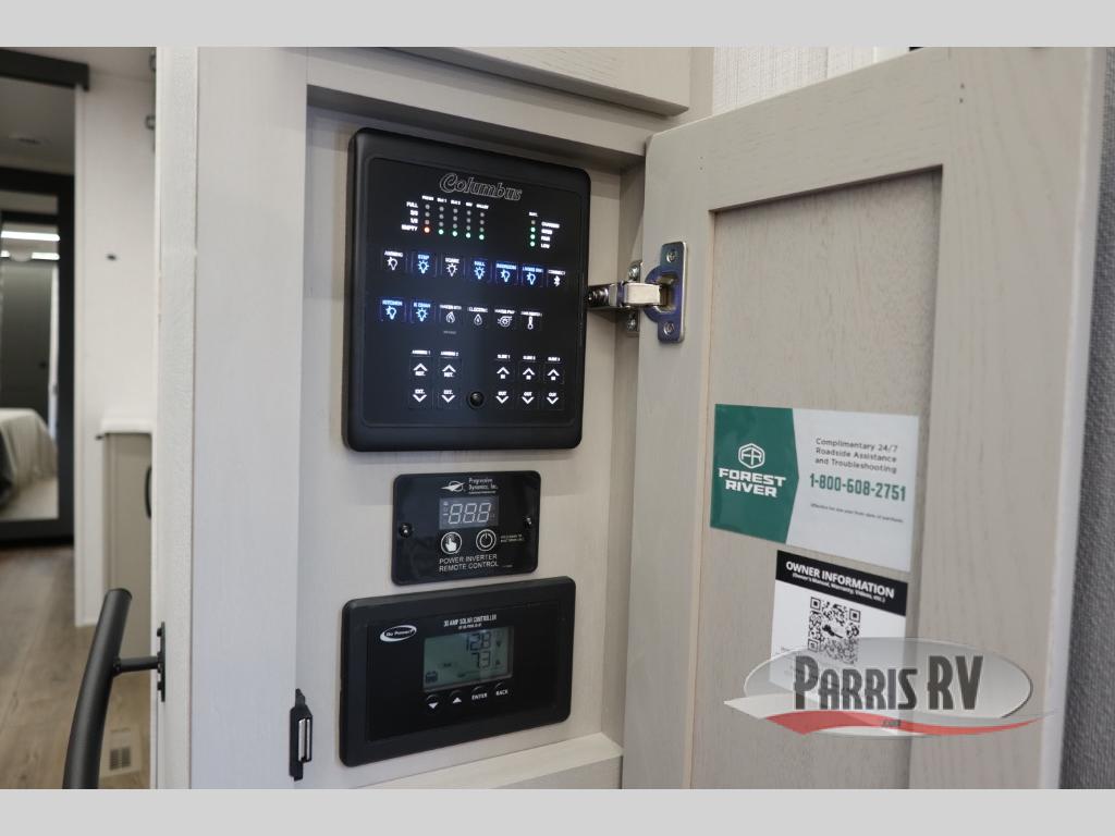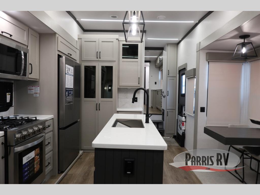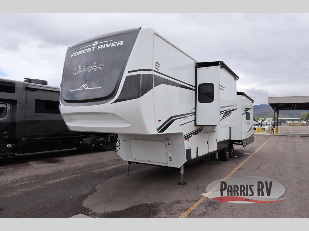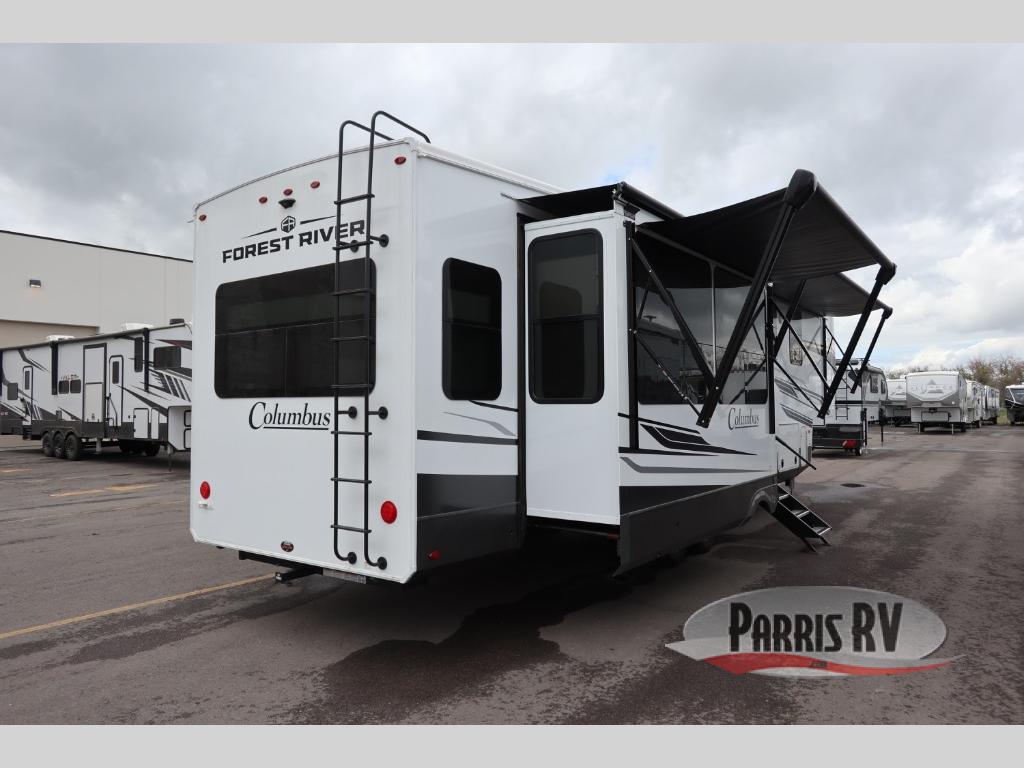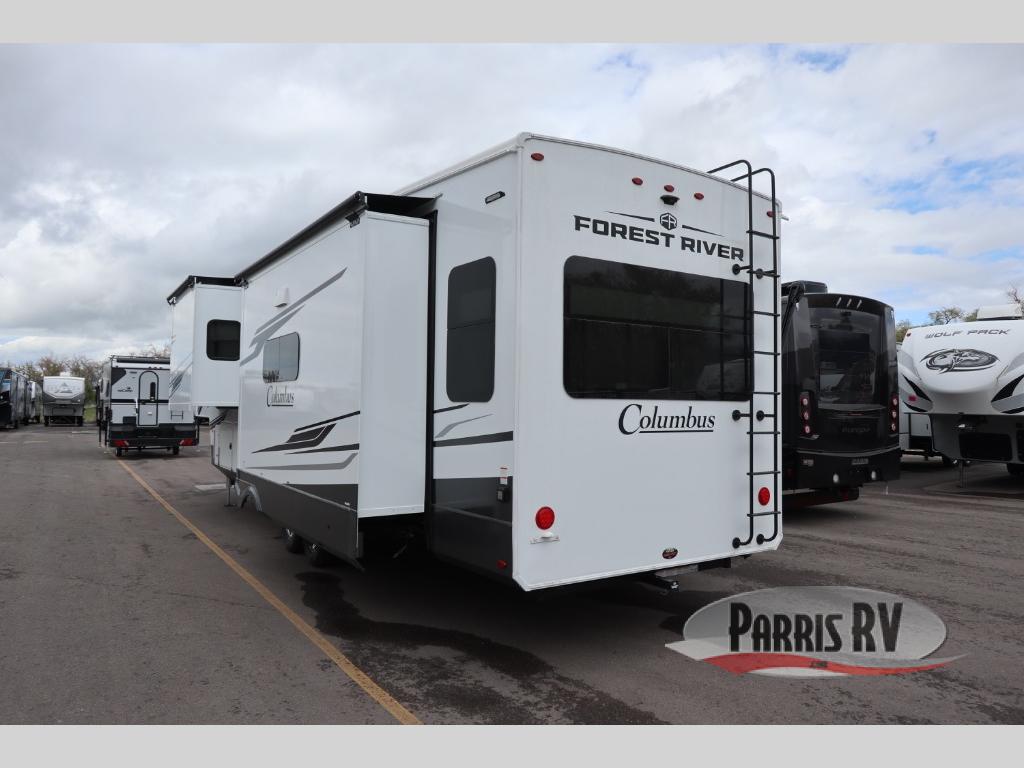 Experience a different camping life with residential furnishings and high end features in each one of these Palomino Columbus fifth wheels! The 101" wide body lets you walk around more throughout and the all-welded aluminum-frame superstructure has a snap-in ceiling molding to hold up through every adventure. Don't leave any of your gear behind either when you can easily store it in the climate controlled drop frame storage area. On the exterior, you'll find a heated utility convenience center, an outside sprayer to keep the dirt outside where it belongs, and magnetic compartment door holds to keep them from falling on you as you grab your items. Plus, there are some modern features that will really seal the deal like the Wi-Fi Booster with 4G LTE capability prep, upgraded true solid-surface countertops, power theater seating with USB charging, and a 260W solar panel for off-grid camping!