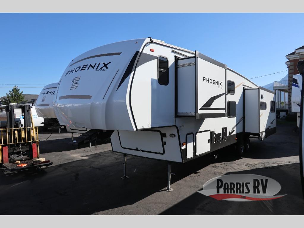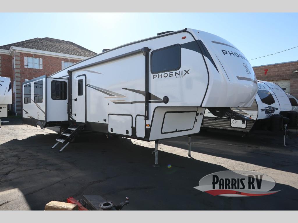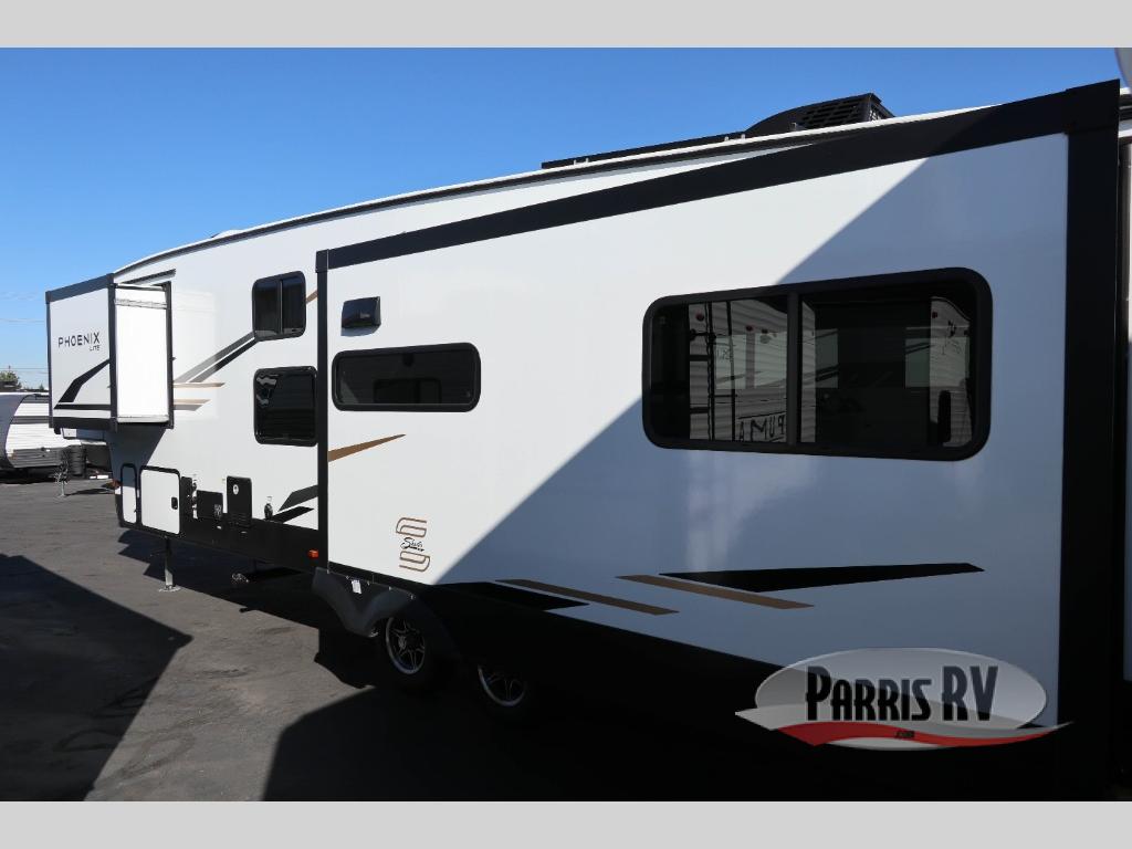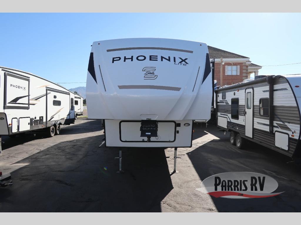 Stand out from all the others with one of these Shasta RVs Phoenix Lite fifth wheels! They are constructed with Weather Shield+ technology, dual-sided Azdel composite sidewall panels, and Tri-Tex powder coated frame technology that is ultra weather resistant. There are also electric front jacks and electric rear stabilizer jacks, an electric awning with LED light strip and one hand pitch adjustment, and a roof mounted solar panel within the Solar Source+ Package. The interior includes USB charging ports, slow rise blackout roller night shades, and a large transom window in the kitchen. You will also enjoy the upgraded GE 13,500 BTU dual ducted main A/C to keep you comfortable throughout your fifth wheel, plus an upgraded 60K BTU on-demand water heater for endless hot showers!