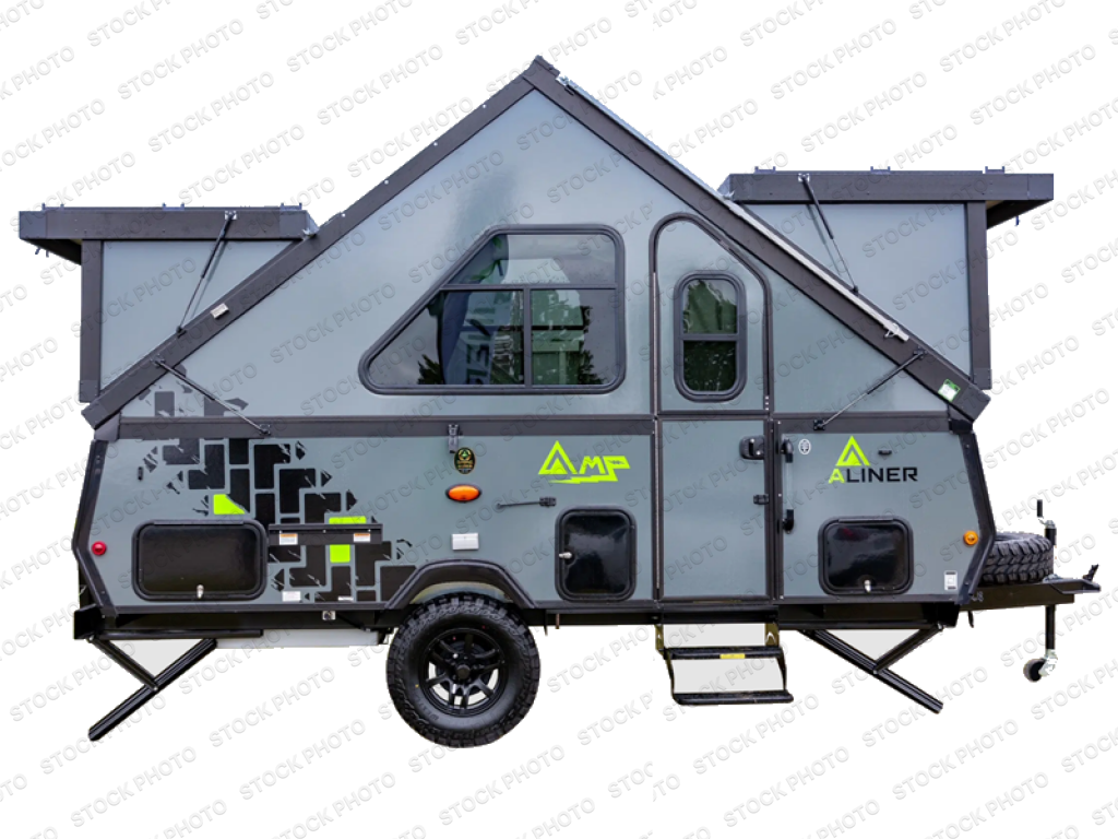The Aliner Amp A-frame camper allows you to camp effortlessly and environmentally friendly! You'll find a 5kWh LFP lithium battery, an EcoFlow complete P&P 48-volt power system, plus two EF 400-watt Rigid solar panels to keep you powered up, even while off-grid! Not only is this camper easy to maneuver and tow, but it can be set up in 30 second and can fit in your garage with ease! The high-density cushions are comfortable and durable, and you'll love the look of the aluminum framed cabinetry. Additional features include LED running lights, four stabilizer jacks, an outside shower, and a lift kit and 15" off-road tires that adds 3" to the height!
