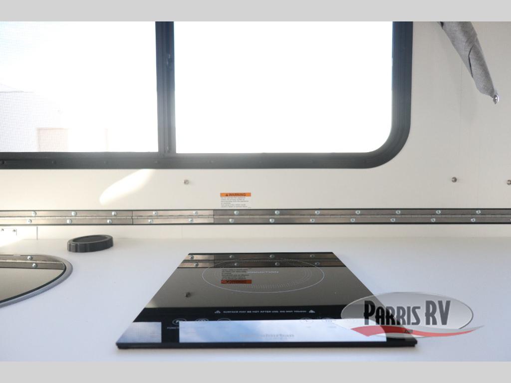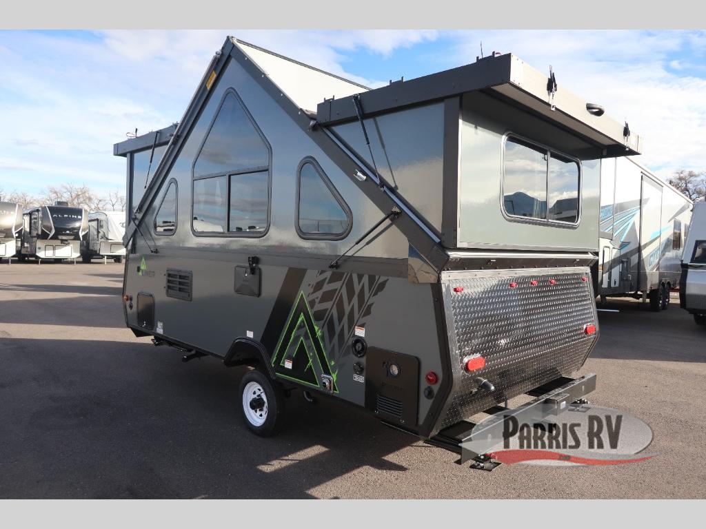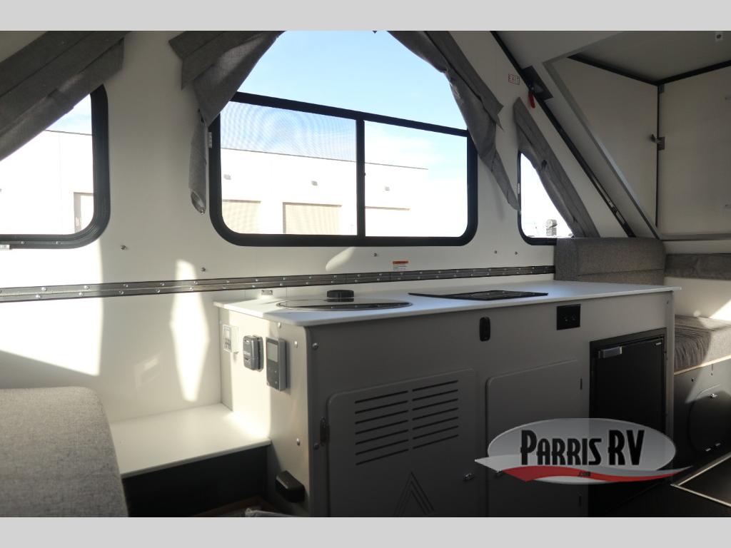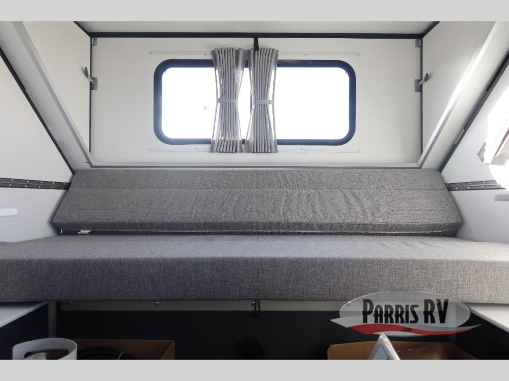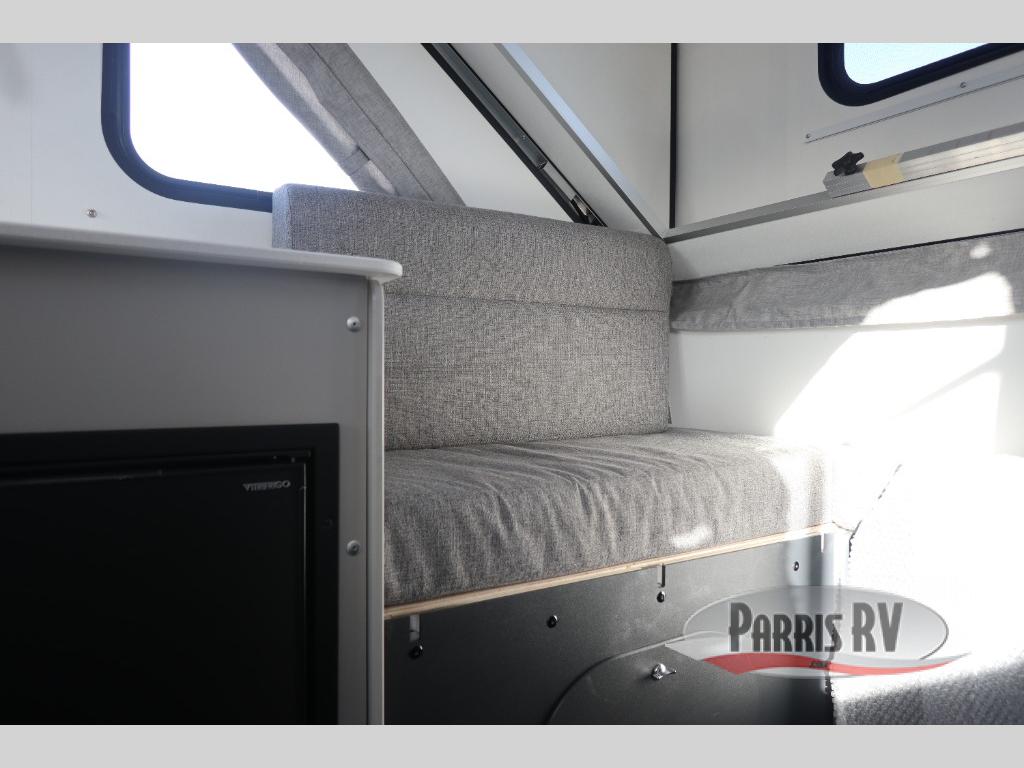 This A-frame camper is ready for off-grid fun when you are! There is a front and rear hard dormer, a high wind lift assist, plus exterior baggage doors. The front dinette converts to a 40" x 80" bed, and the rear sofa bed converts to a 60" x 80" queen-size bed so you can sleep four each night. You'll appreciate storage under the dinette seats for board games and extra knickknacks. An induction cooktop will let you make meals each day and a 3.2 cu. ft. 12V refrigerator will keep your food fresh. Another convenience is the swivel cassette toilet and interior hidden shower under the dinette so you can freshen up each day!