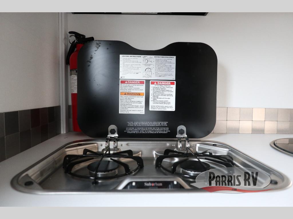 Your time at the campground will be complete with this lightweight travel trailer. There are two dinette seats with a table to dine, relax, and convert to a 77" x 72" bed size when you're ready for bed. You won't have to use the camp's facilities thanks to the wet bath with an enclosed shower and toilet combination plus a shower door for privacy. This model includes a two burner cooktop, a sink, plus a 3.0 cu. ft. two-way refrigerator under the range to store your perishables.