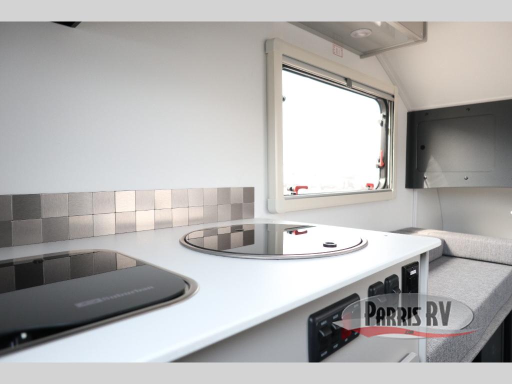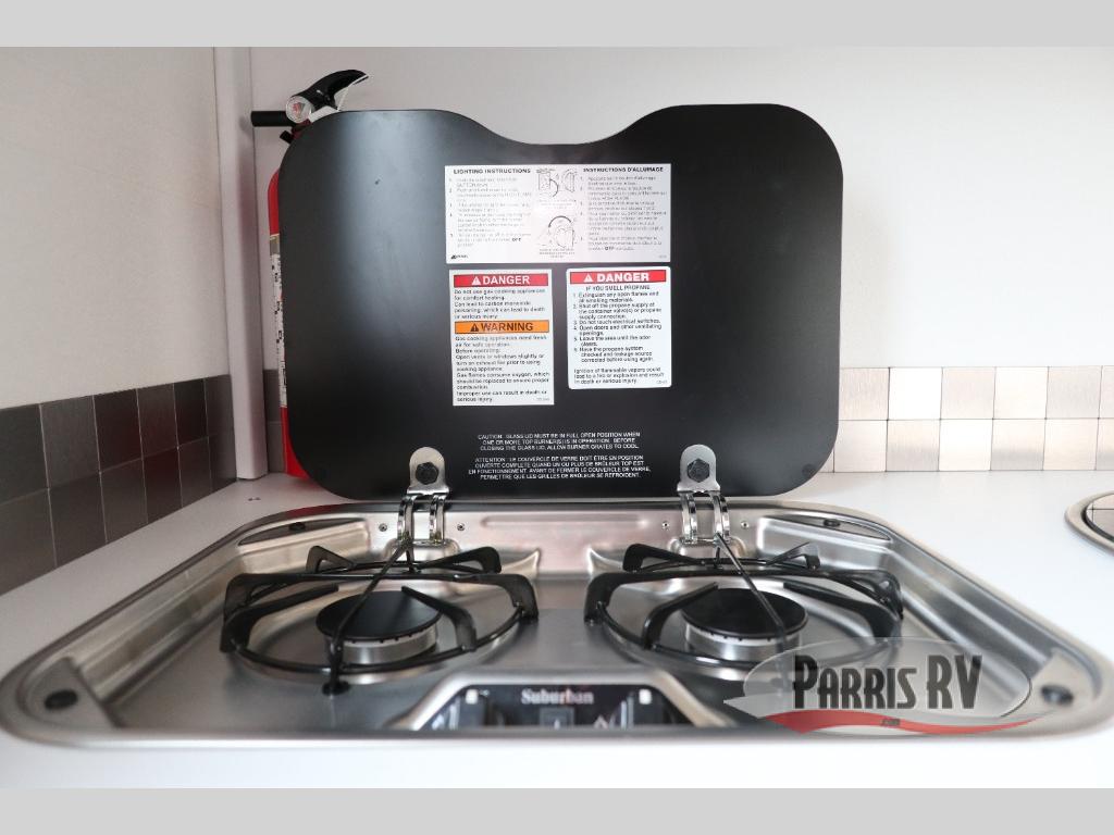 Your time at the campground will be complete with this lightweight travel trailer. There are two dinette seats with a table to dine, relax, and convert to a 77" x 72" bed size when you're ready for bed. You won't have to use the camp's facilities thanks to the wet bath with an enclosed shower and toilet combination plus a shower door for privacy. This model includes a two burner cooktop, a sink, plus a 3.0 cu. ft. two-way refrigerator under the range to store your perishables.