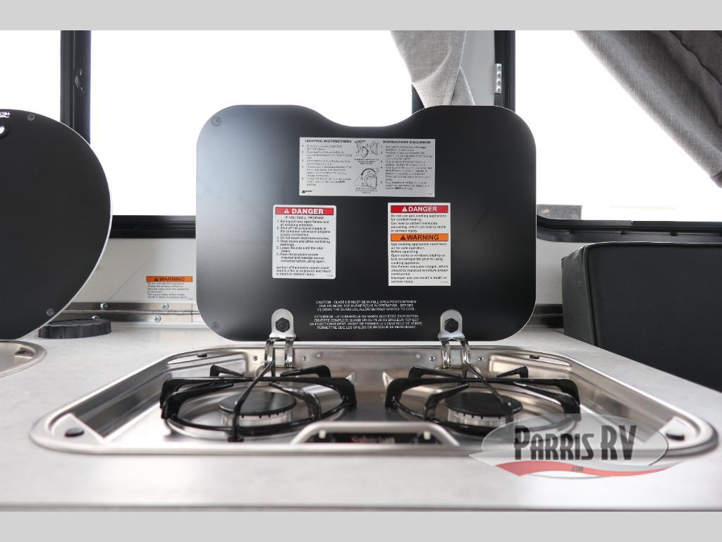 Camping has never been easier than in this A-frame camper. Once you arrive at your destination, grab your gear from the two exterior baggage doors, then head inside to make lunch on the two-burner stove top. The sofa bed can convert to a 60" x 76" bed, and the dinette converts to a 46" x 76" bed for comfortable sleeping space at night. You will also enjoy LED interior lights and electrical outlets to keep you charged up, and there is plenty of storage for your camp gear. And an optional front and/or rear hard dormer can be added if you want additional standing space!