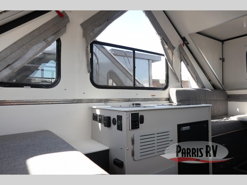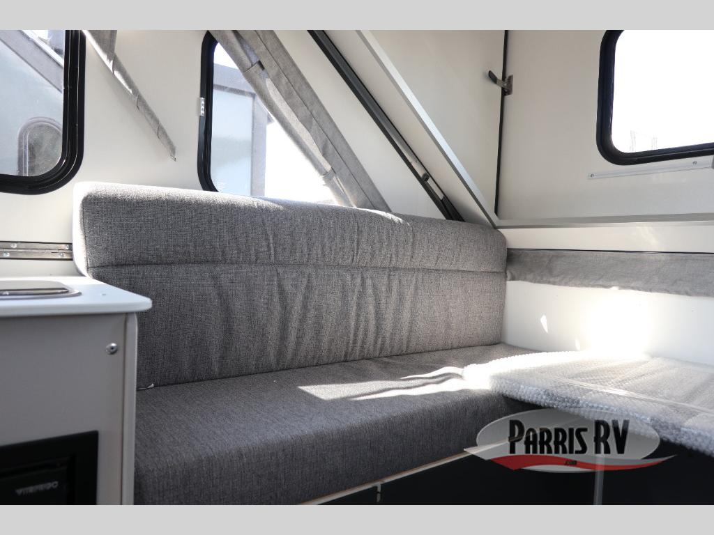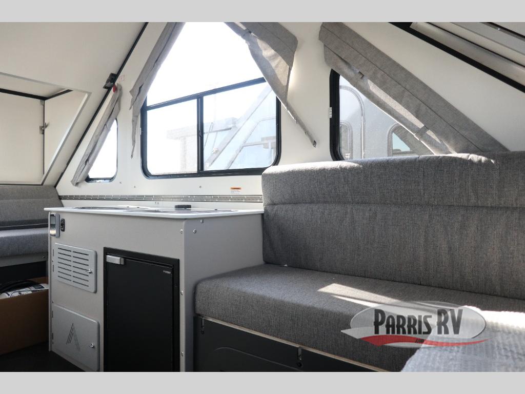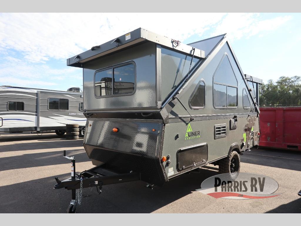The Evolution A-frame camper by Aliner is coming to you with residential features and solid construction materials. You'll love the slate gray exterior, and the Azdel composite panels included help prolong the life of your camper. There are 15" off-road tires with graphics package, LED running lights, exterior baggage doors, plus many more exterior conveniences. The Evolution A-Frame camper comes with commercial grade, raised coin polyvinyl flooring, SIMONA BOATBOARD interior cabinets and furniture, and three indoor electrical outlets to name a few interior comforts.