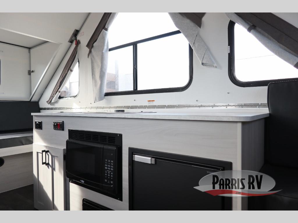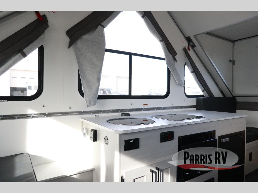 Each Expedition A-frame camper by Aliner is constructed with Azdel composite roof/sidewalls, a Dexter rubber torsion axle, aluminum wheels, and a high wind lift assist. Additional exterior features include LED lighting, four stabilizer jacks, three baggage doors, and an outside LP connection if you want to bring along your grill. Inside, the LED lights will keep your space well lit, and there are three electrical outlets to charge your phone or laptop. The optional dormers (front or rear) will give you the ability to add more head room when camping, and you can add an optional 200-watt solar panel to either dormer for off-grid capabilities!