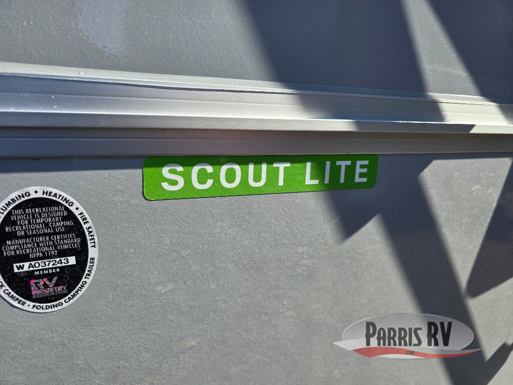 When all you need is the basics to camp, this Scout Lite will be perfect for you! There is sleeping space on either the front 30" x 76" bed or the rear dinette which converts into a 40" x 76" bed. There is plenty of storage throughout between the storage under the front bed, under the sink, and the exterior baggage door. And you can keep everything charged with the two electrical outlets inside and the one exterior electrical outlet!