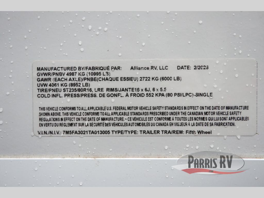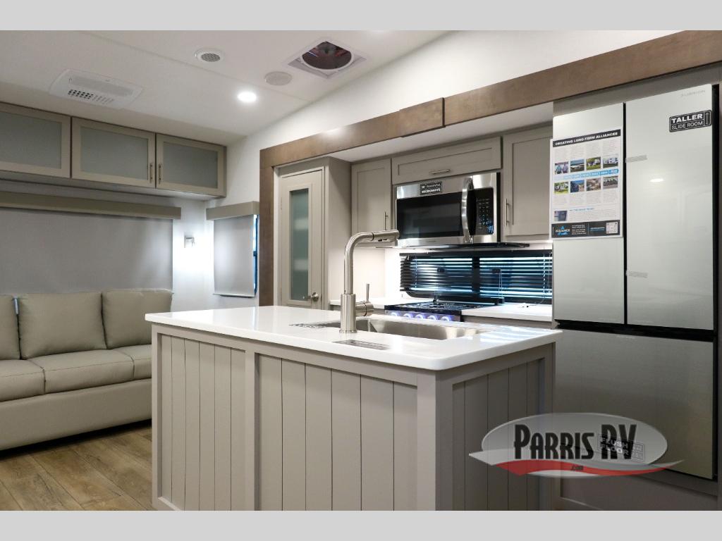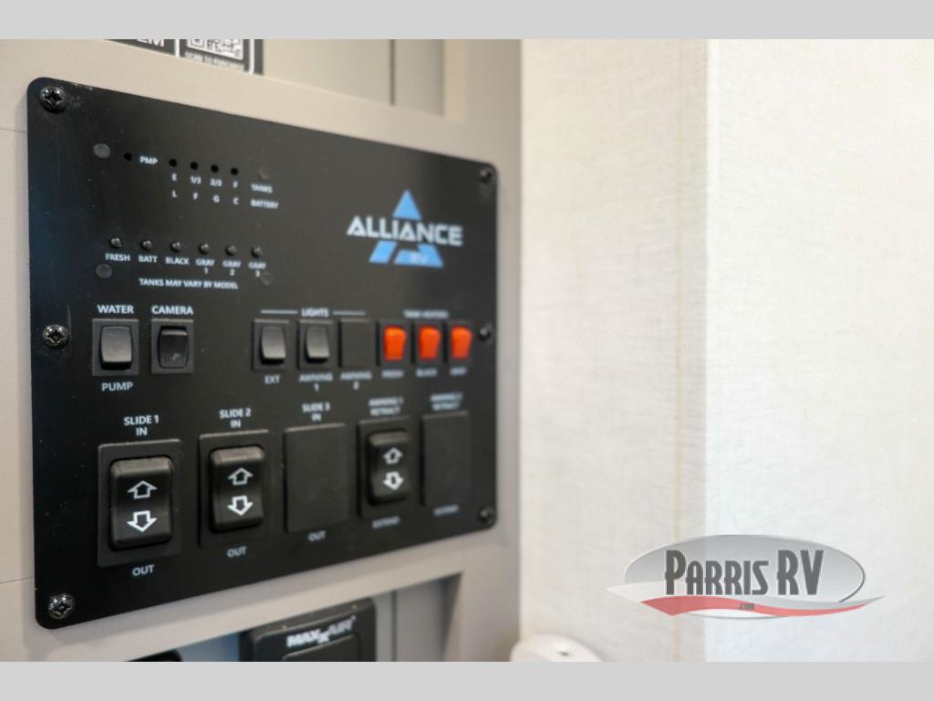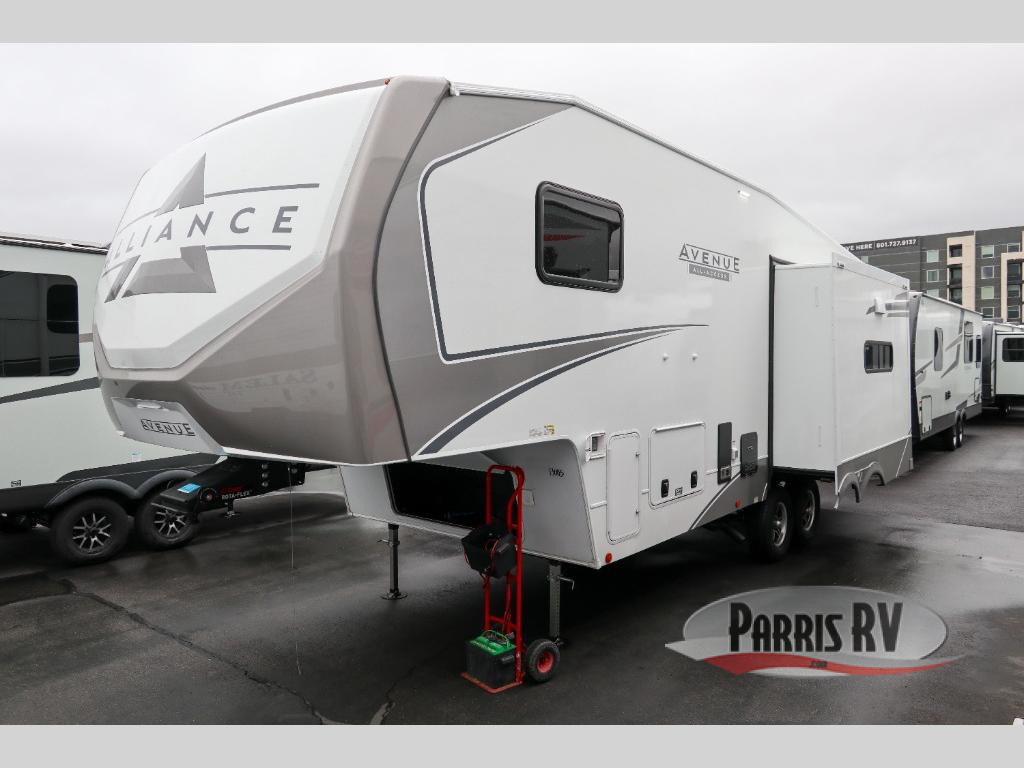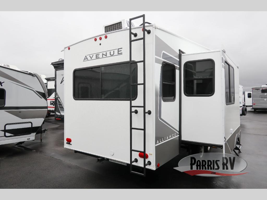 A benchmark chassis creates a space saver upper deck with each one of these Avenue All-Access fifth wheels by Alliance RV! The 101 in. wide-body construction gives you more room to walk around and the flush slide out floors throughout prevent any tripping. There are composite sidewalls inside and out, and PVC roof for extreme durability. You are sure to love no carpet throughout making each Avenue All-Access easy to clean and allergen free, not to mention pet friendly. You can maximize your space throughout with innovative storage solutions like the hidden storage behind the TV, inside the end tables, ottoman, and dinette chairs. These units also include the OTG Solar Package with a 200 watt solar panel, 15 amp MPPT charger, multiple outlets, and more to keep you powered up!