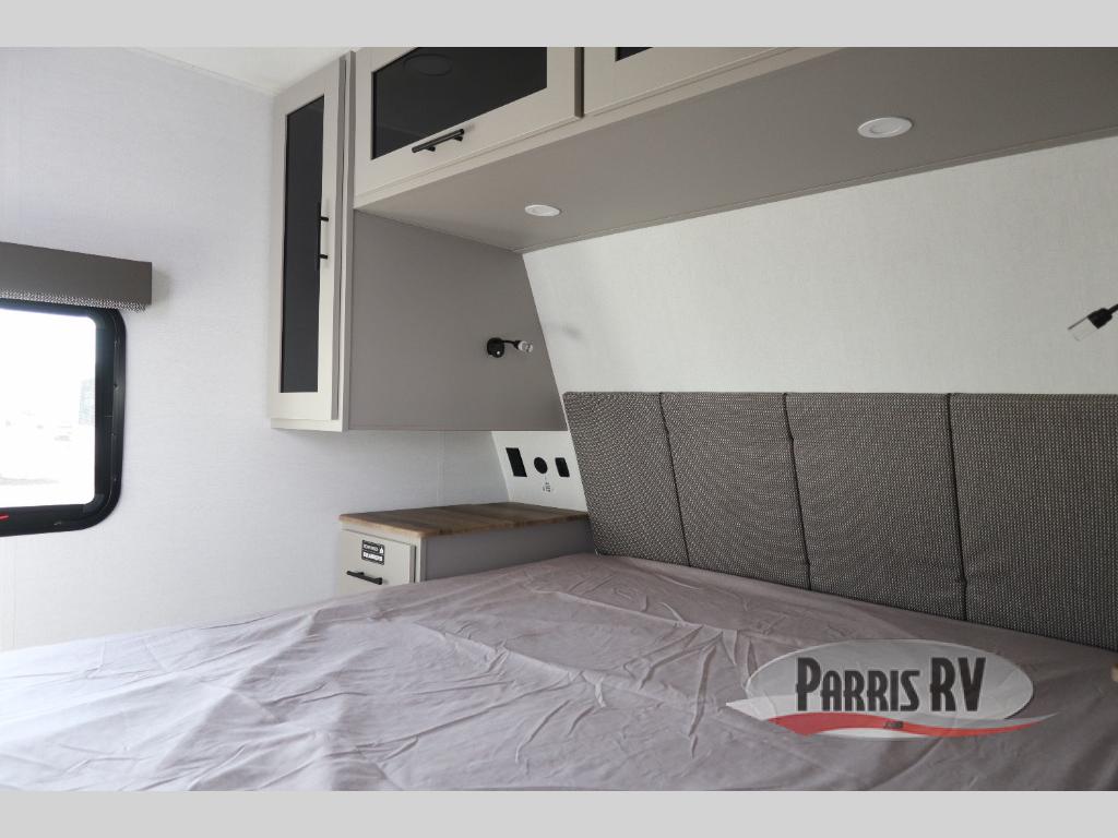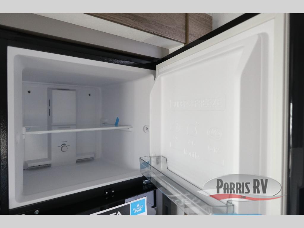 Grab your hiking boots and your sense of adventure for fun camping trips in this single slide out travel trailer. The rear booth dinette includes overhead storage for your things and the sofa slide out is in great view of the 40" HDTV. There is also a fireplace here that will make your space feel more like home plus more storage space, including a pantry with pull out trays and storage above the 10 cu. ft. 12V refrigerator. A walk-through bath will take you to the front master bedroom with a queen bed, wardrobe nightstands, plus its own exterior entry door!