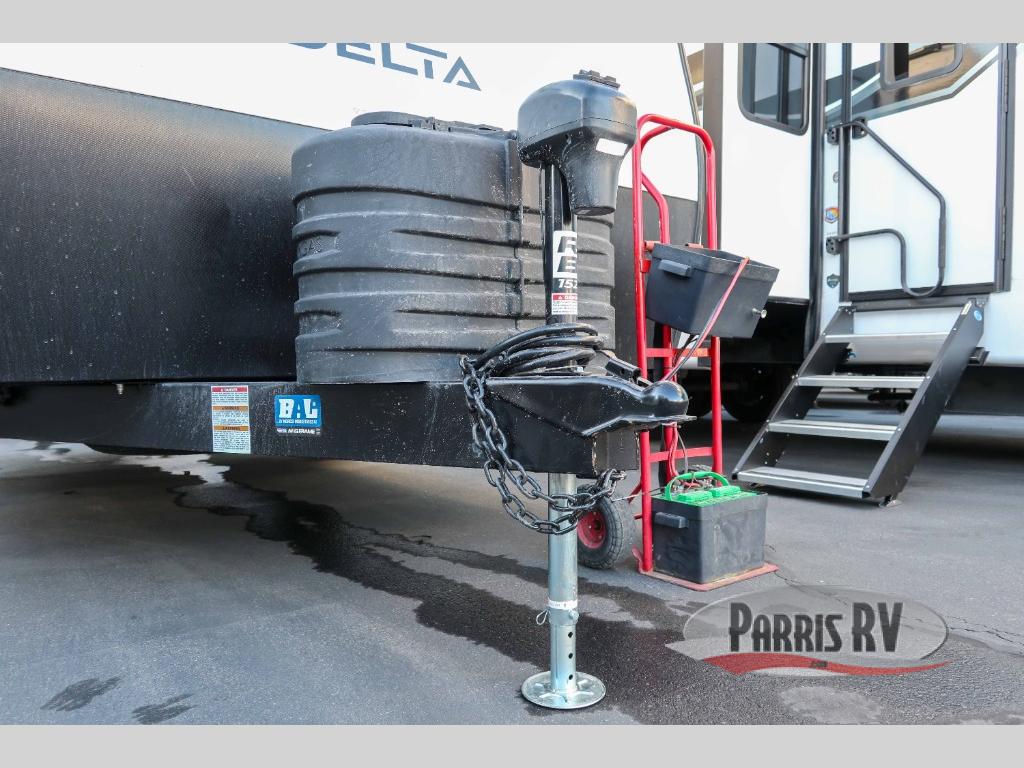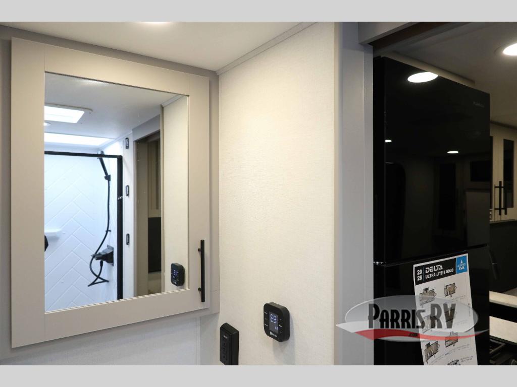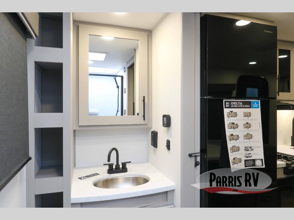 Each Delta Solo Model Each is designed to provide both comfort and convenience in a compact footprint. Inside, you'll find residential-style touches like can-style LED ceiling lights, cabinet doors with magnetic catches, and commercial-grade vinyl flooring built to last. On the exterior, practical travel features include exterior switches for the slide-out and awning, sturdy Step Above fold-out entry steps, and color-coded, numbered wiring for simplified maintenance and troubleshooting.