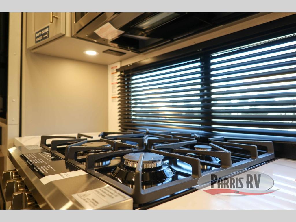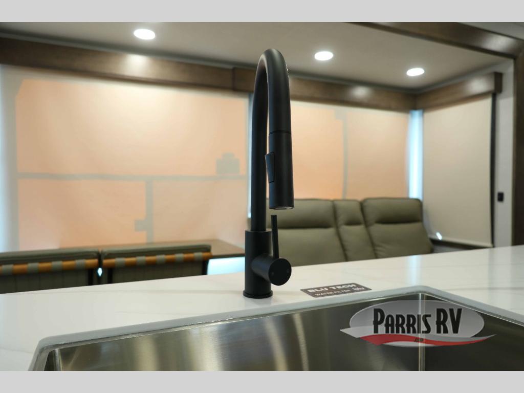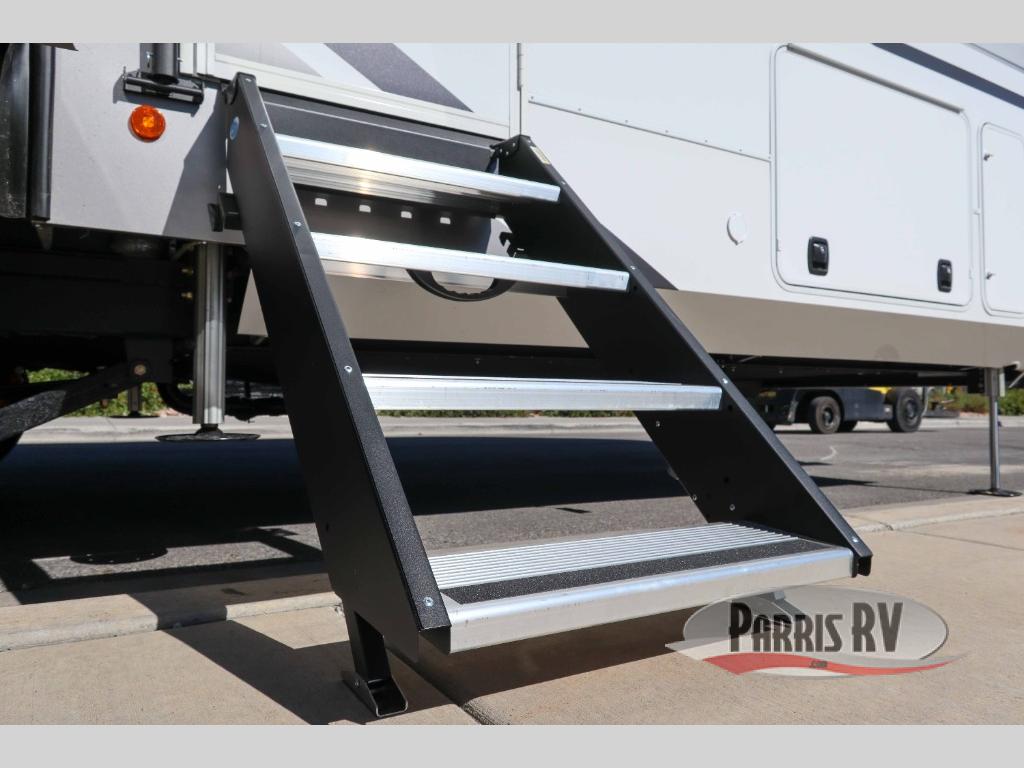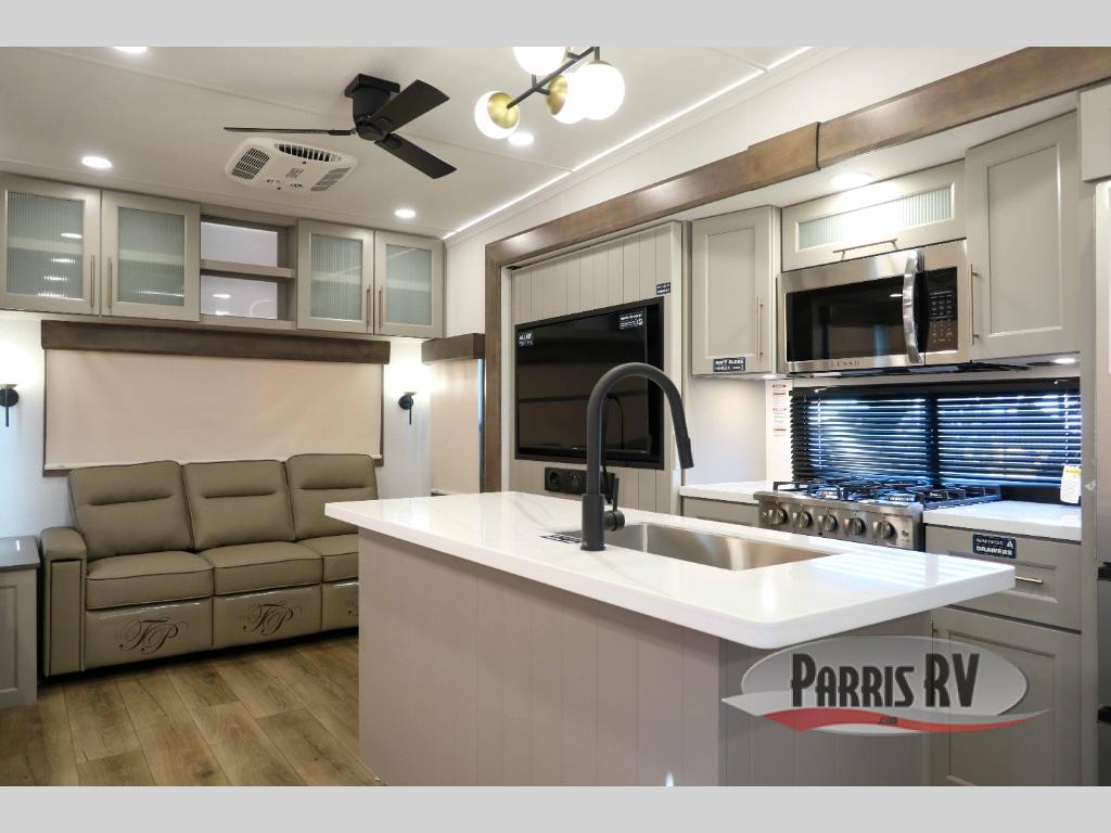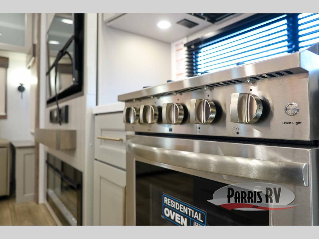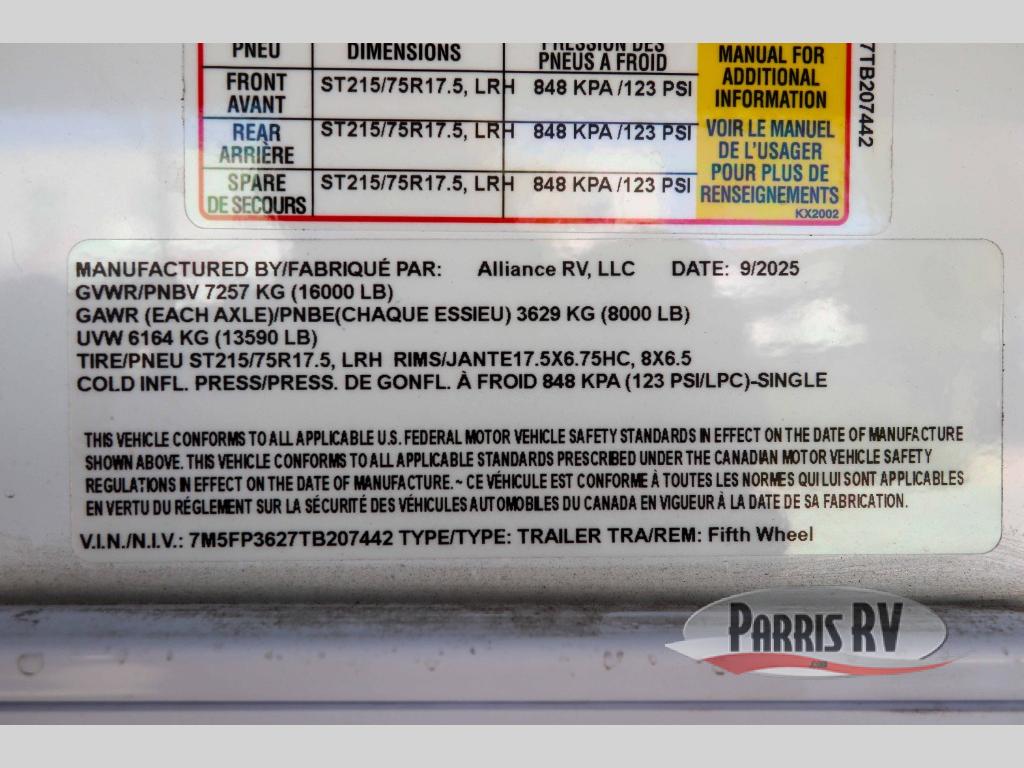 The Paradigm fifth wheels by Alliance RV are functional, high-quality, and luxurious for an unforgettable camping experience. There are three A/C units and a 40K BTU furnace to keep you comfortable year around, and you'll appreciate additional convenient amenities, like the all-in-one enclosed/heated utility center and the color coded and numbered wiring. A Helux Series coil spring pin box comes standard for hassle-free towing, along with Super-G 4,400 lb. rated tires and Dexter 7,000 lb. axles. You'll love the kitchen with its LG solid surface countertops and Lusso range, plus there is LED motion lighting in the pantry and a Maxx fan with a rain sensor to keep everything fresh when making dinner. Each model also includes an HD Smart TV in the living room and bedroom, plus a Winegard Air 360 antenna to keep you connected to the outside world. And of course there are a variety of options you can choose from to further customize your fifth wheel; dual pane windows, Super Solar Plus, slide out awning toppers, and generator prep or a generator to name a few!