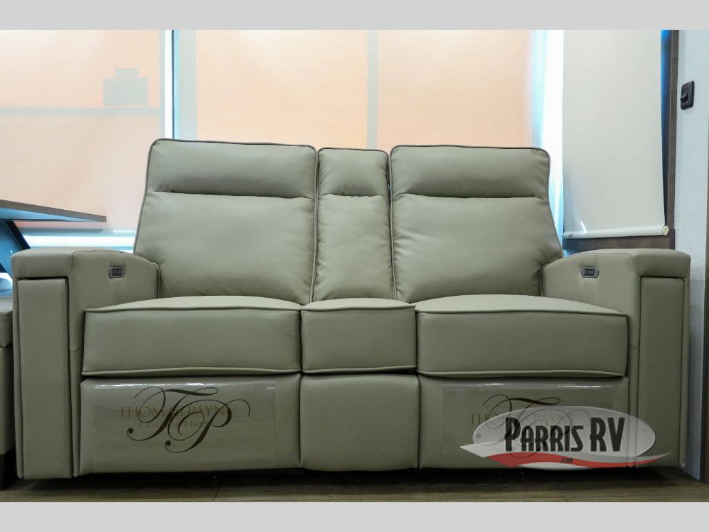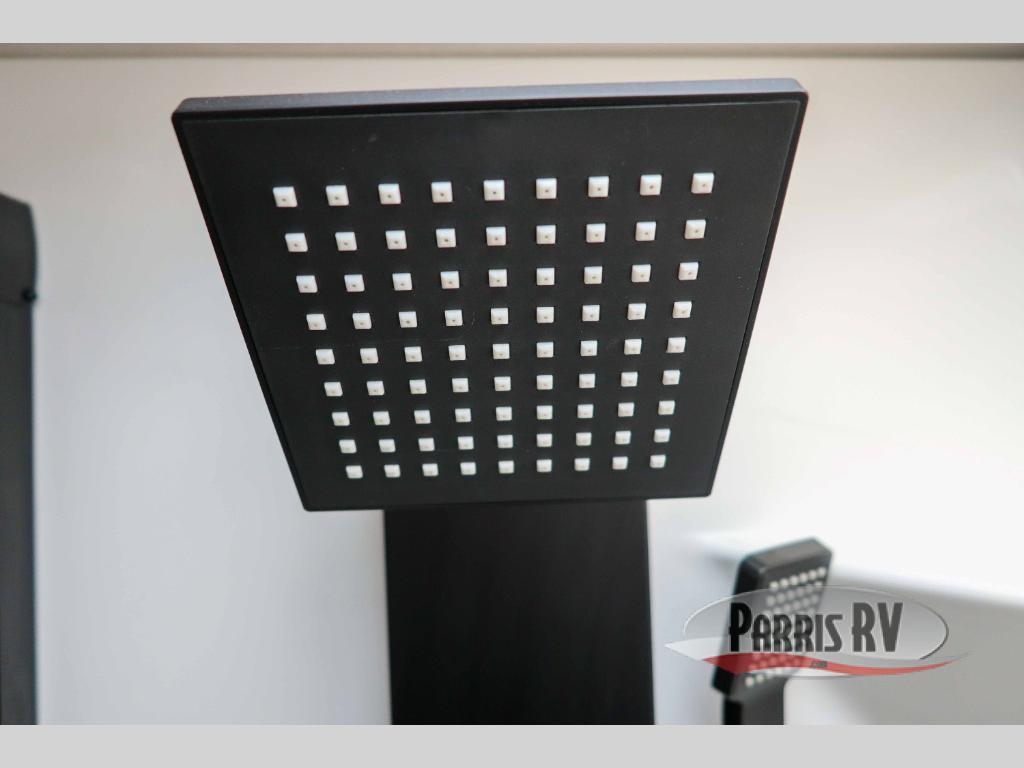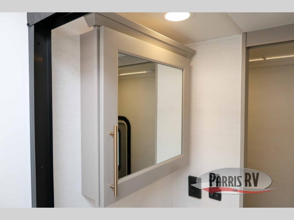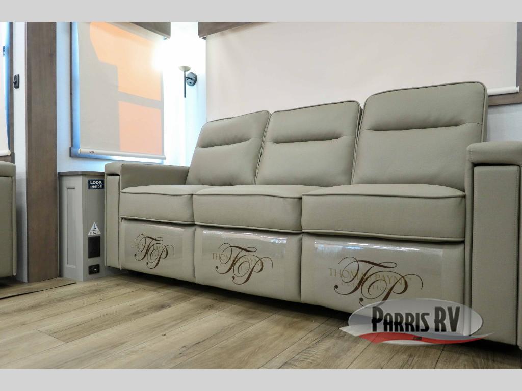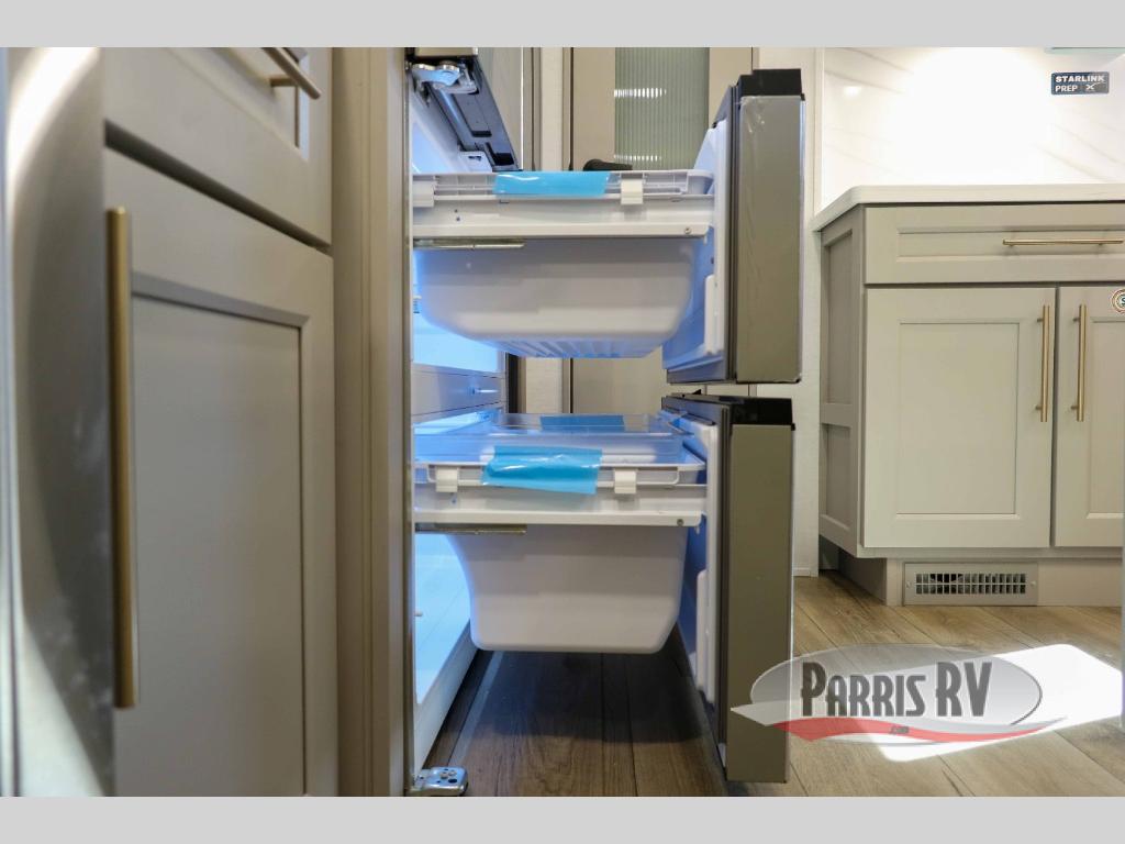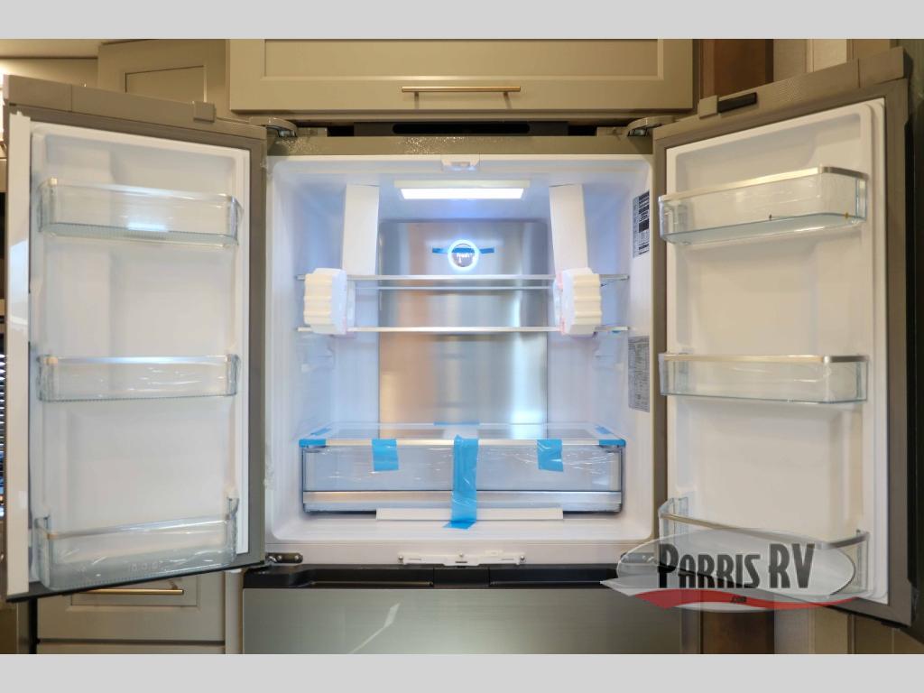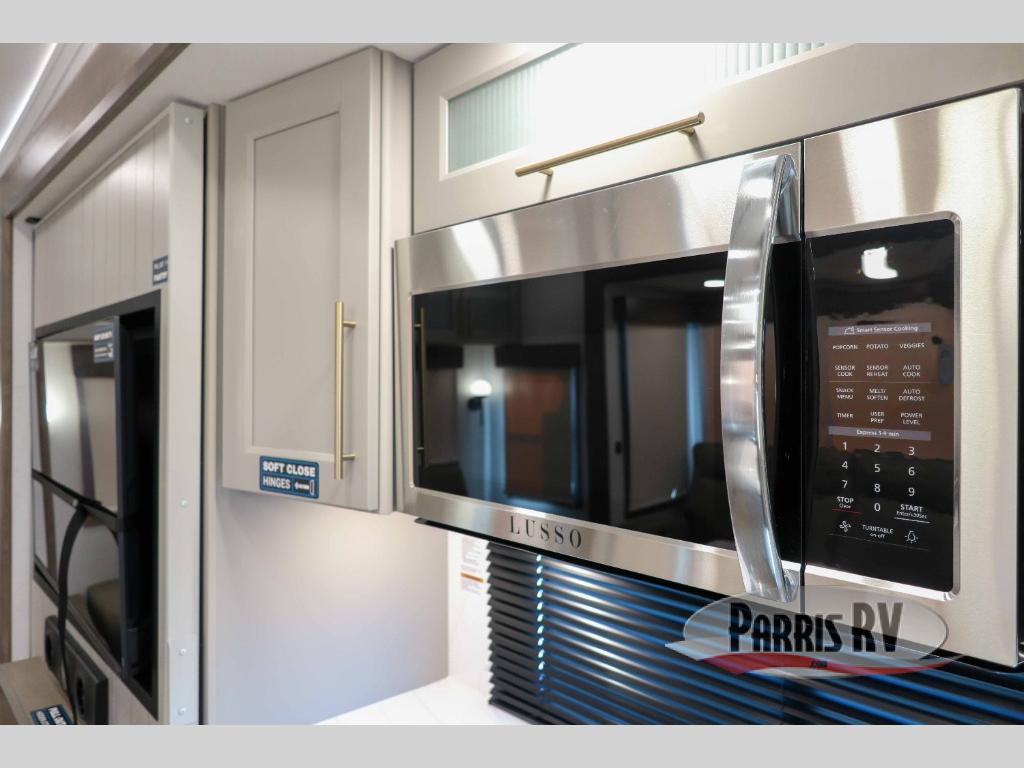 Search for the best views, the nicest RV park, or a place you haven't seen for years with this Paradigm in tow! There is a king bed slide in the master bedroom, a Smart TV, and a dresser with flip-up hidden storage for your belongings. The full bathroom offers a large residential shower, a porcelain toilet with a soft close seat, and storage for your linens, while the kitchen gives you two pantries, an island with a large undermount single basin sink and dishwasher prep if you want the option for easy clean up. You will also have a residential microwave and range, plus a 3.73 cu. ft. oven to make meals. When you're ready to relax for the evening, head to the rear living area to enjoy the dual recliner love seat across from the 50" Smart TV and fireplace!
