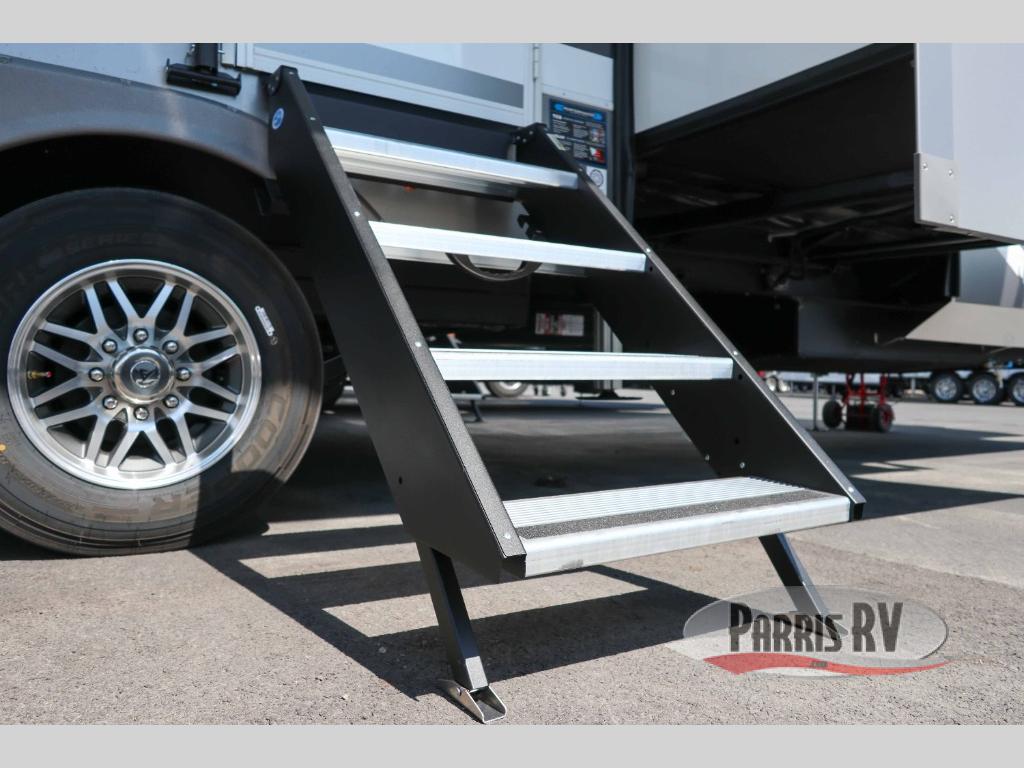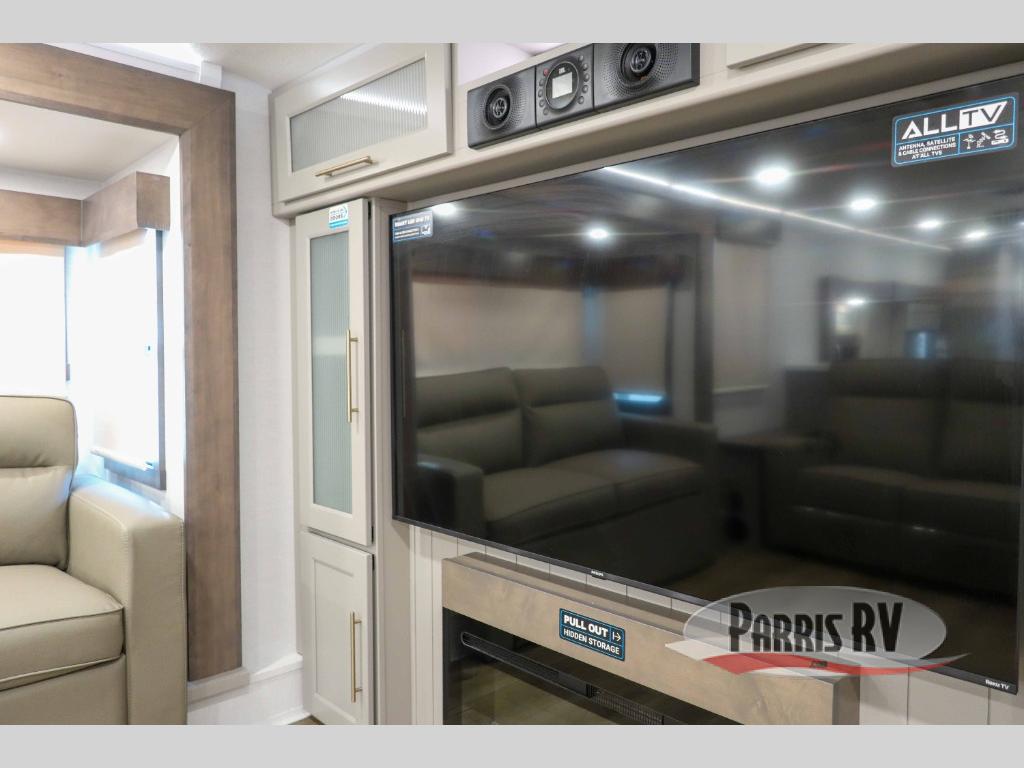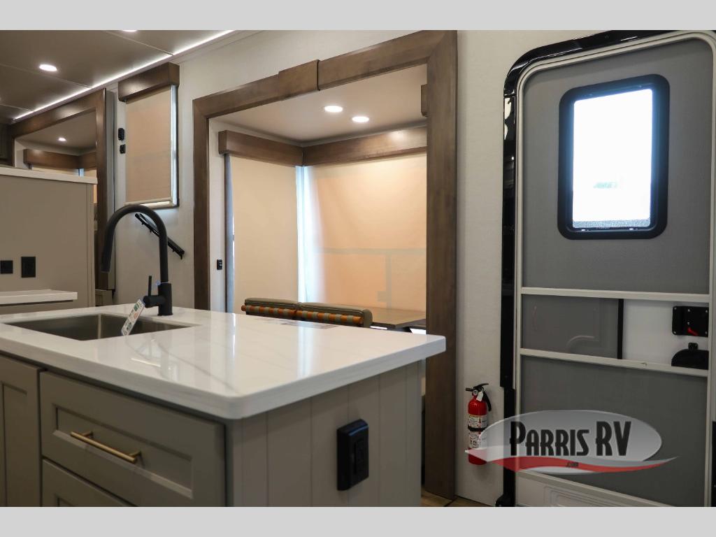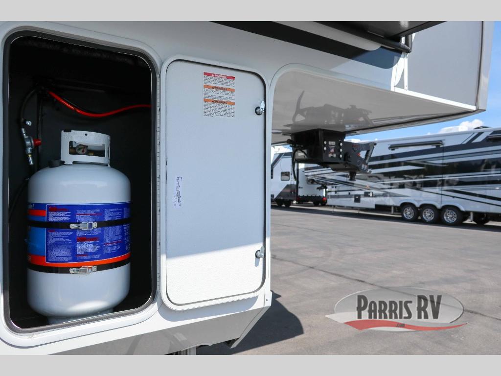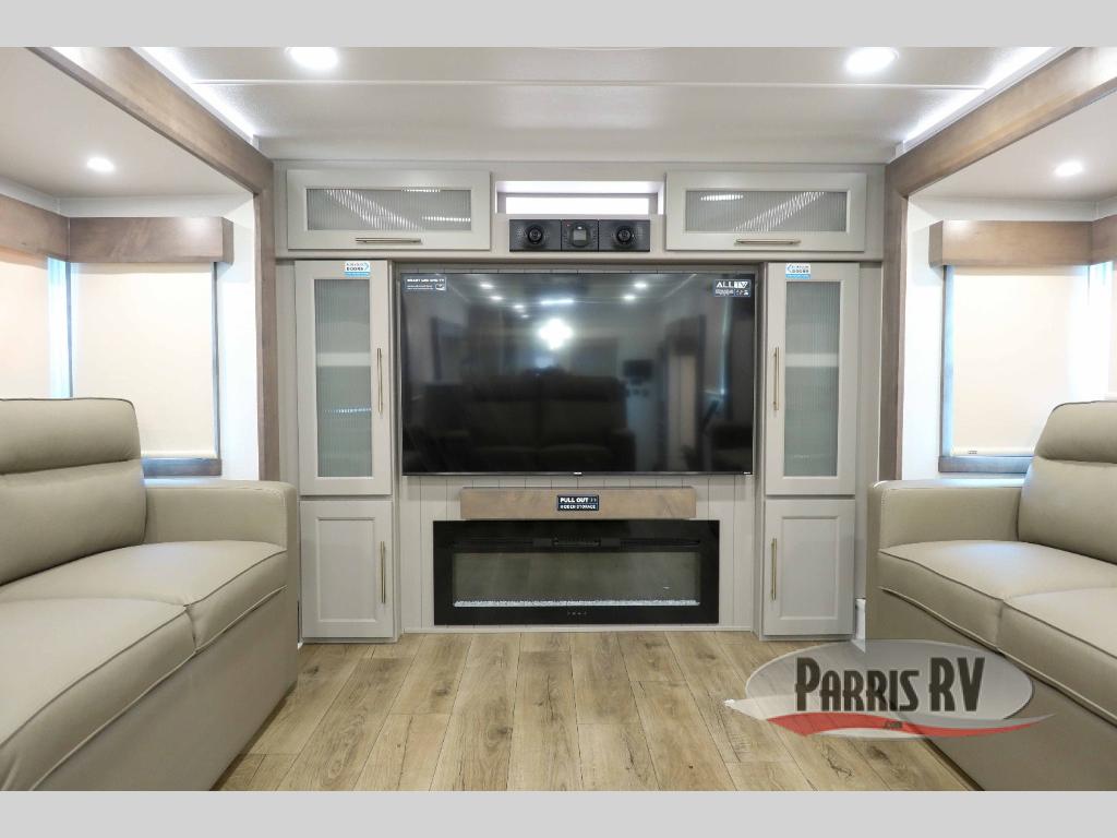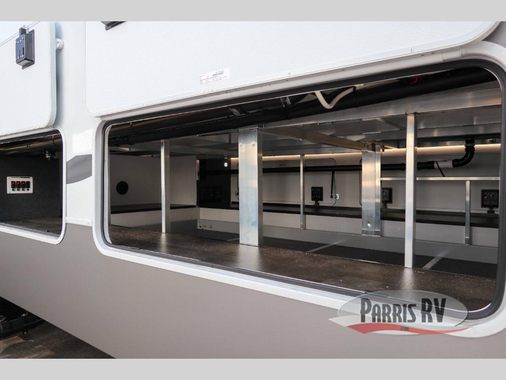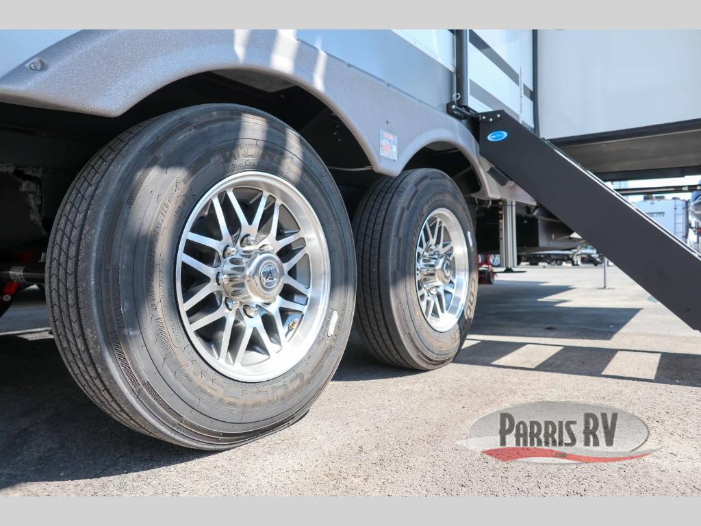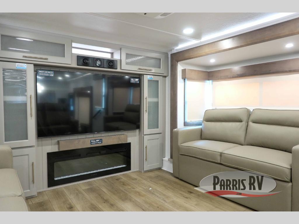 The Paradigm fifth wheels by Alliance RV are functional, high-quality, and luxurious for an unforgettable camping experience. There are three A/C units and a 40K BTU furnace to keep you comfortable year around, and you'll appreciate additional convenient amenities, like the all-in-one enclosed/heated utility center and the color coded and numbered wiring. A Helux Series coil spring pin box comes standard for hassle-free towing, along with Super-G 4,400 lb. rated tires and Dexter 7,000 lb. axles. You'll love the kitchen with its LG solid surface countertops and Lusso range, plus there is LED motion lighting in the pantry and a Maxx fan with a rain sensor to keep everything fresh when making dinner. Each model also includes an HD Smart TV in the living room and bedroom, plus a Winegard Air 360 antenna to keep you connected to the outside world. And of course there are a variety of options you can choose from to further customize your fifth wheel; dual pane windows, Super Solar Plus, slide out awning toppers, and generator prep or a generator to name a few!