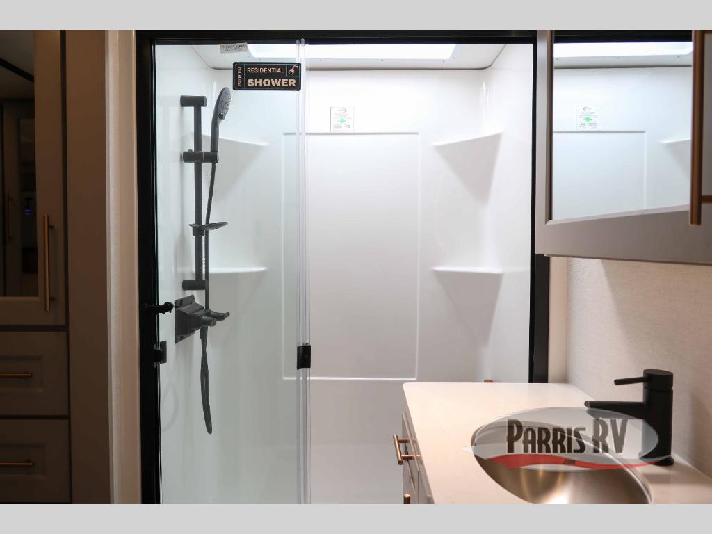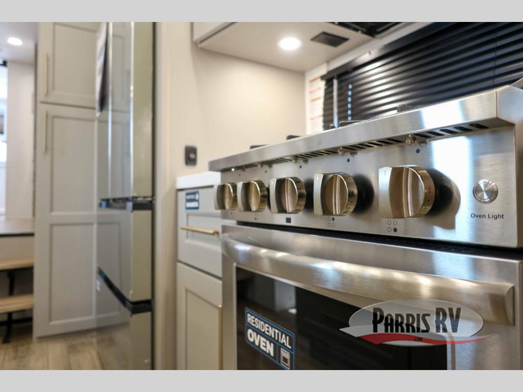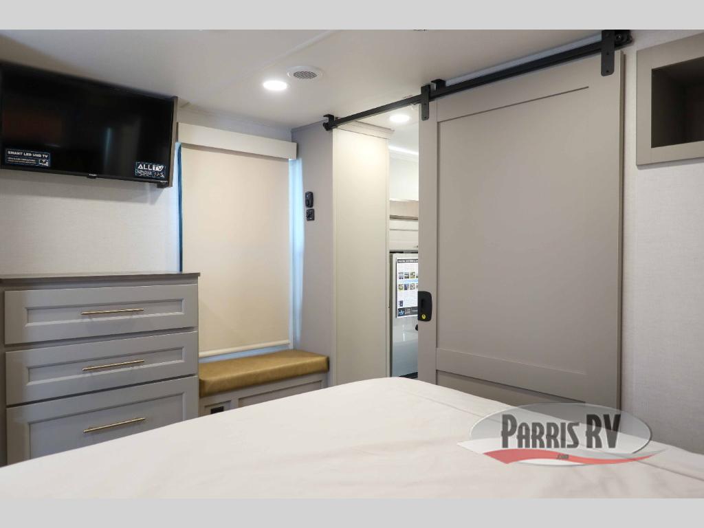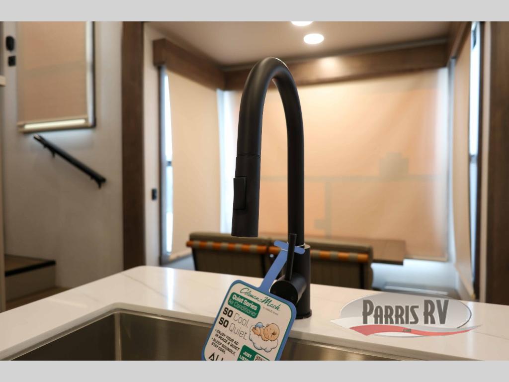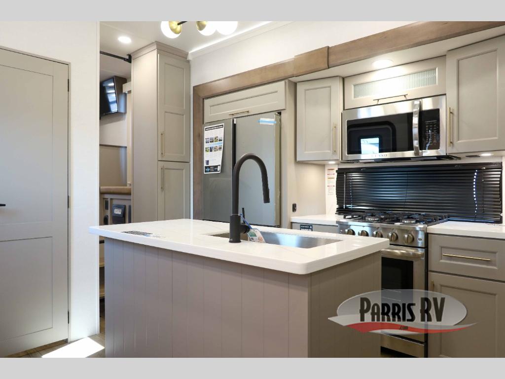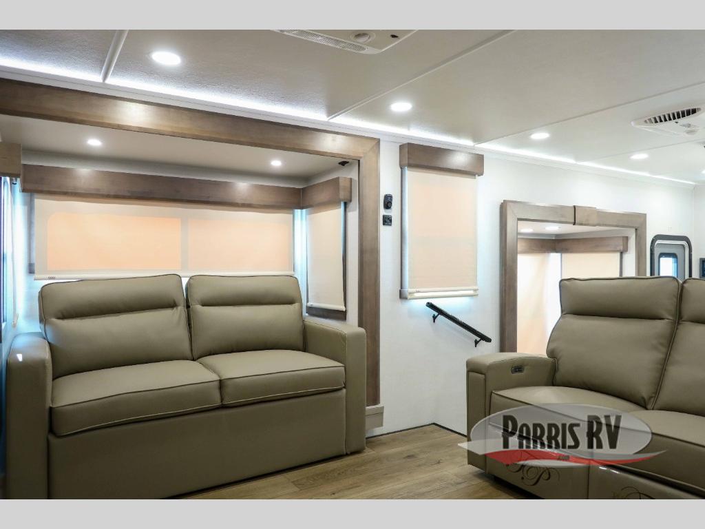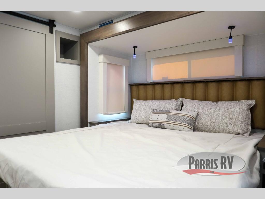 The Paradigm fifth wheels by Alliance RV are functional, high-quality, and luxurious for an unforgettable camping experience. There are three A/C units and a 40K BTU furnace to keep you comfortable year around, and you'll appreciate additional convenient amenities, like the all-in-one enclosed/heated utility center and the color coded and numbered wiring. A Helux Series coil spring pin box comes standard for hassle-free towing, along with Super-G 4,400 lb. rated tires and Dexter 7,000 lb. axles. You'll love the kitchen with its LG solid surface countertops and Lusso range, plus there is LED motion lighting in the pantry and a Maxx fan with a rain sensor to keep everything fresh when making dinner. Each model also includes an HD Smart TV in the living room and bedroom, plus a Winegard Air 360 antenna to keep you connected to the outside world. And of course there are a variety of options you can choose from to further customize your fifth wheel; dual pane windows, Super Solar Plus, slide out awning toppers, and generator prep or a generator to name a few!