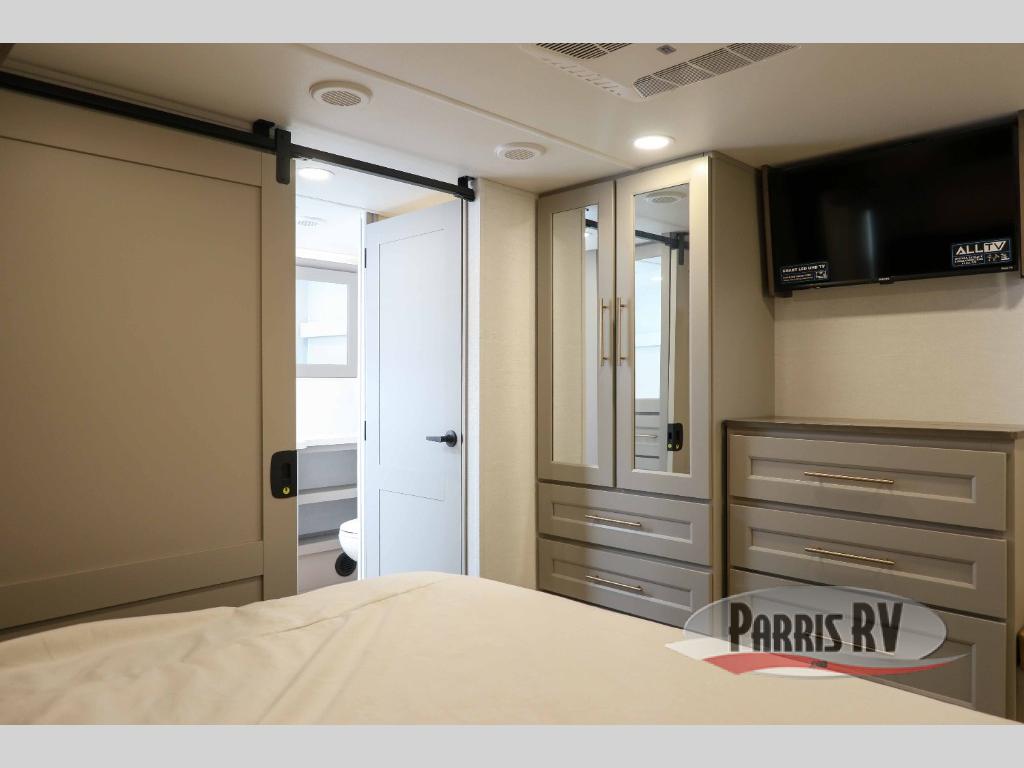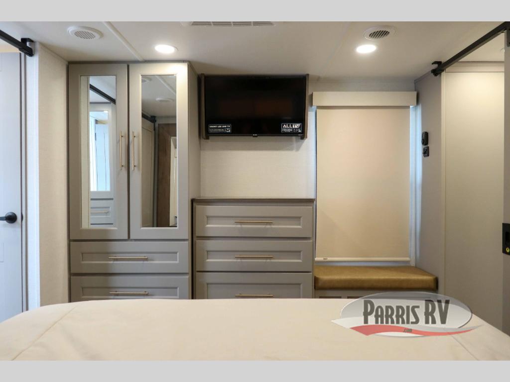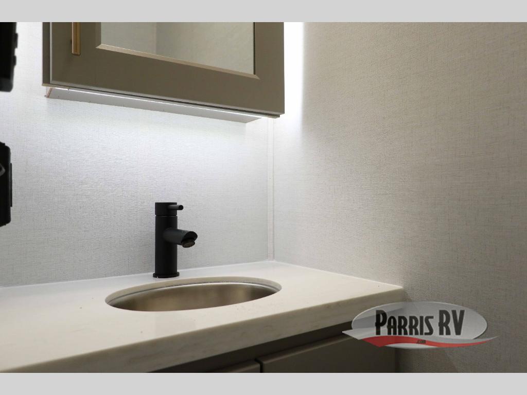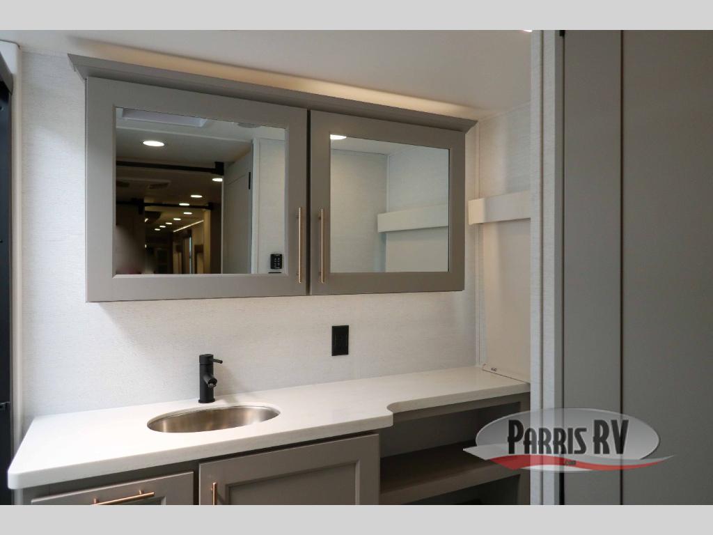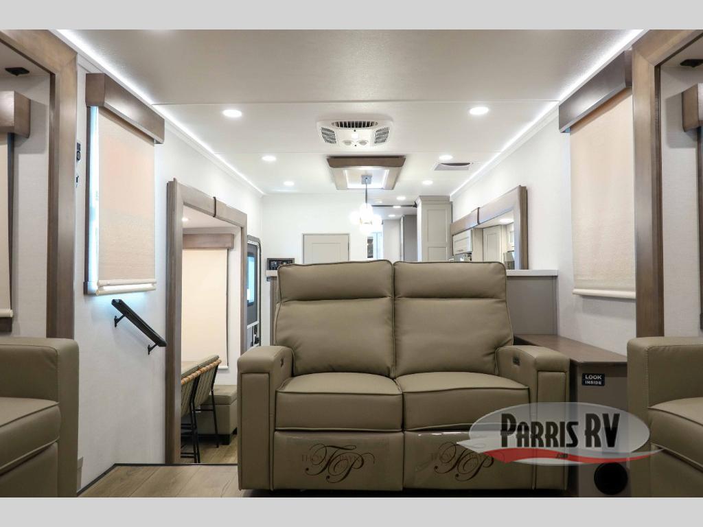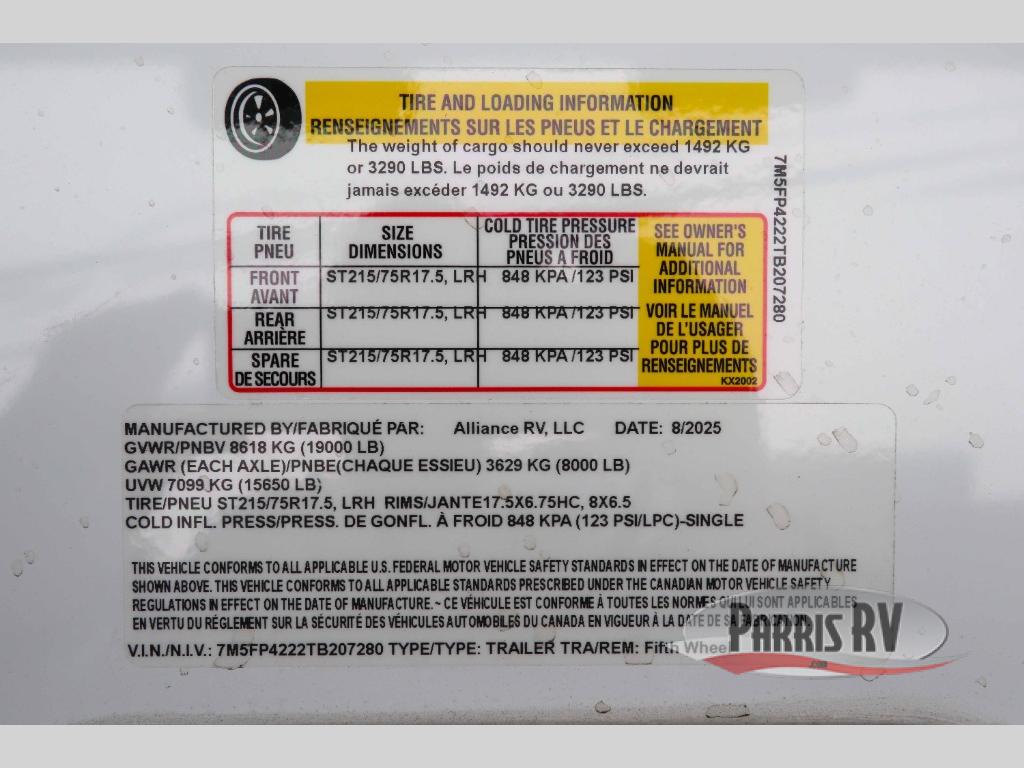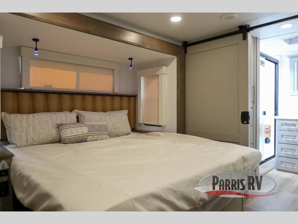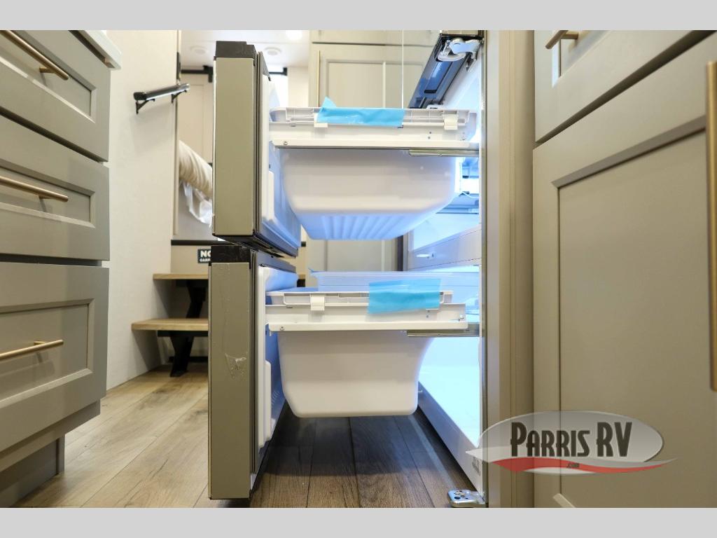 The Paradigm fifth wheels by Alliance RV are functional, high-quality, and luxurious for an unforgettable camping experience. There are three A/C units and a 40K BTU furnace to keep you comfortable year around, and you'll appreciate additional convenient amenities, like the all-in-one enclosed/heated utility center and the color coded and numbered wiring. A Helux Series coil spring pin box comes standard for hassle-free towing, along with Super-G 4,400 lb. rated tires and Dexter 7,000 lb. axles. You'll love the kitchen with its LG solid surface countertops and Lusso range, plus there is LED motion lighting in the pantry and a Maxx fan with a rain sensor to keep everything fresh when making dinner. Each model also includes an HD Smart TV in the living room and bedroom, plus a Winegard Air 360 antenna to keep you connected to the outside world. And of course there are a variety of options you can choose from to further customize your fifth wheel; dual pane windows, Super Solar Plus, slide out awning toppers, and generator prep or a generator to name a few!
