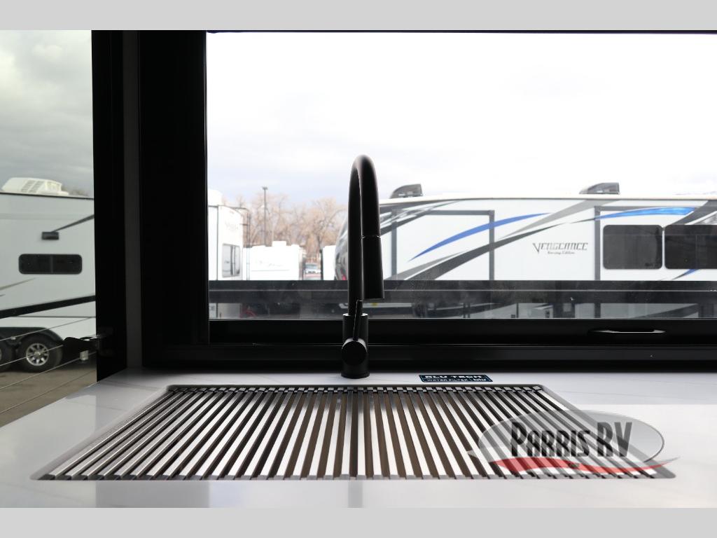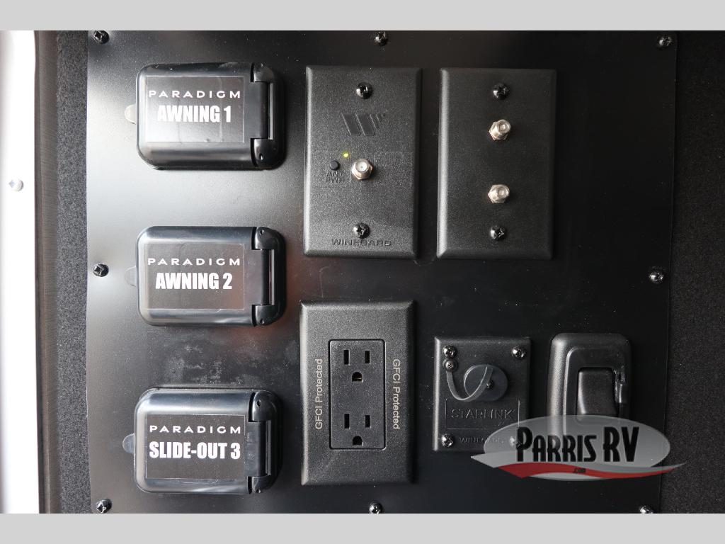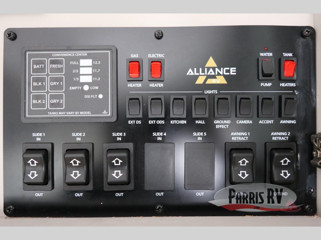 The Paradigm fifth wheels by Alliance RV are functional, high-quality, and luxurious for an unforgettable camping experience. There are three A/C units and a 40K BTU furnace to keep you comfortable year around, and you'll appreciate additional convenient amenities, like the all-in-one enclosed/heated utility center and the color coded and numbered wiring. A Helux Series coil spring pin box comes standard for hassle-free towing, along with Curt 8,000 lb. axles. You'll love the kitchen with its LG solid surface countertops and Lusso range, plus there is LED motion lighting in the pantry and a Maxx fan with a rain sensor to keep everything fresh when making dinner. Each model also includes an HD Smart TV in the living room and bedroom. And of course there are a variety of options you can choose from to further customize your fifth wheel; dual pane windows, Super Solar Plus, slide out awning toppers, and generator prep or a generator to name a few!