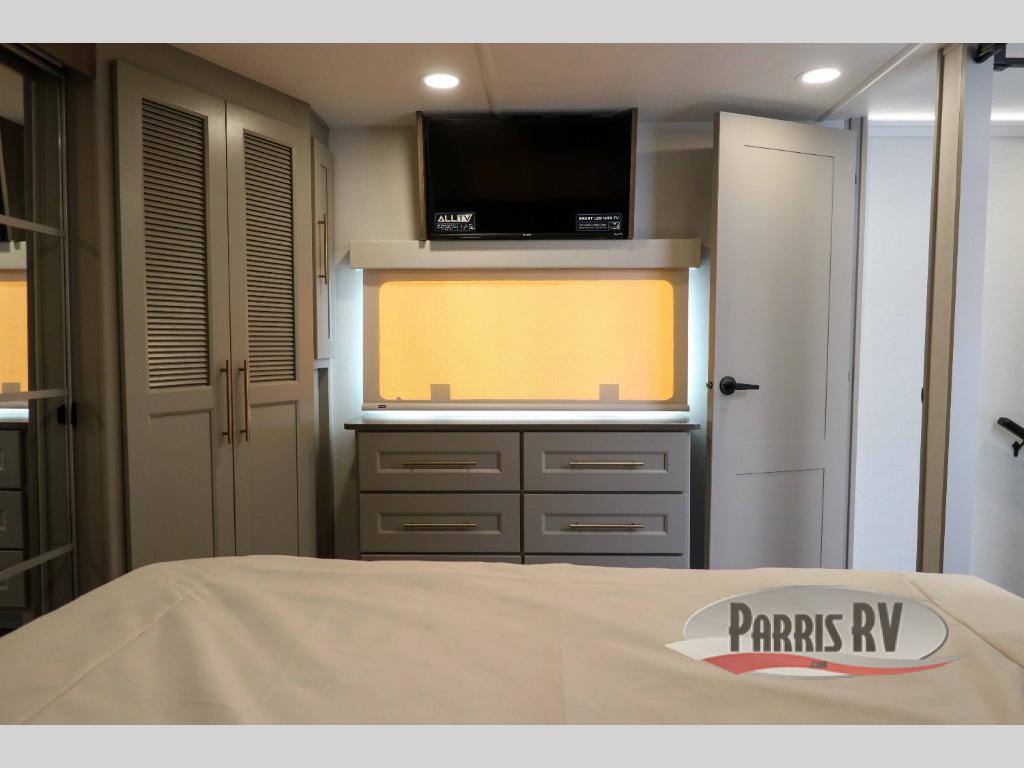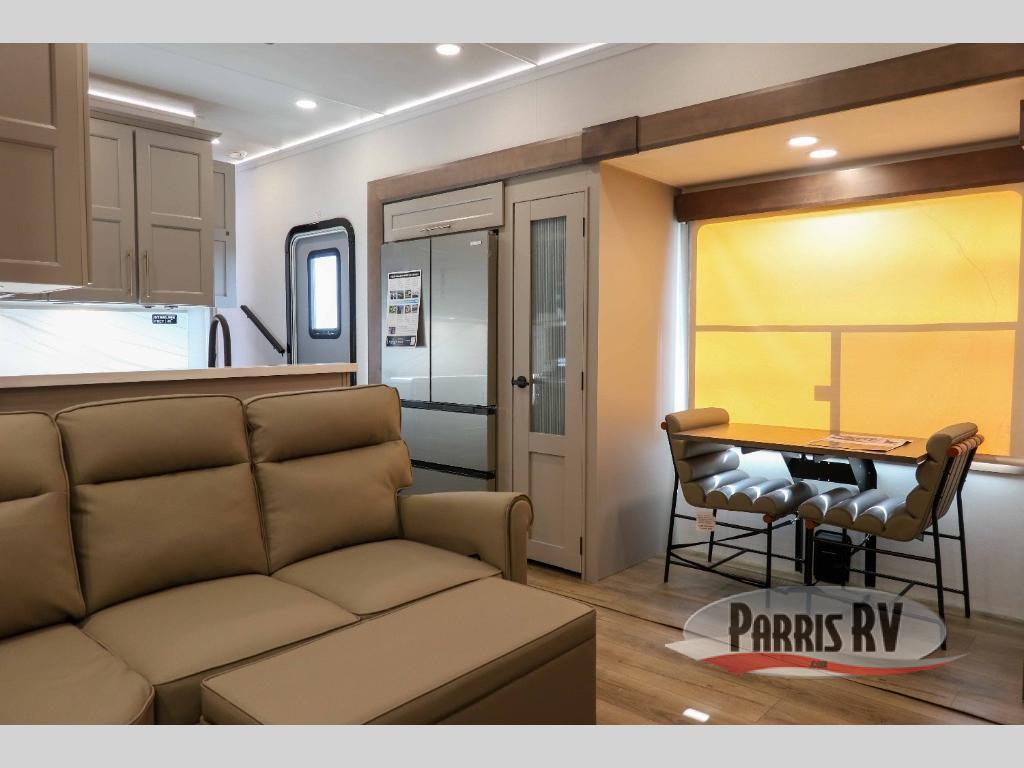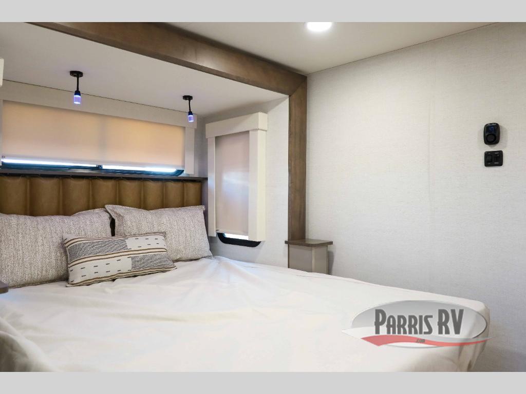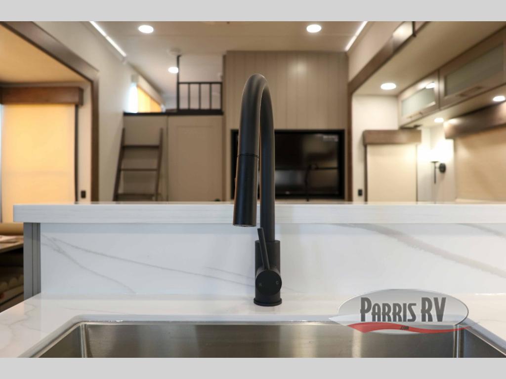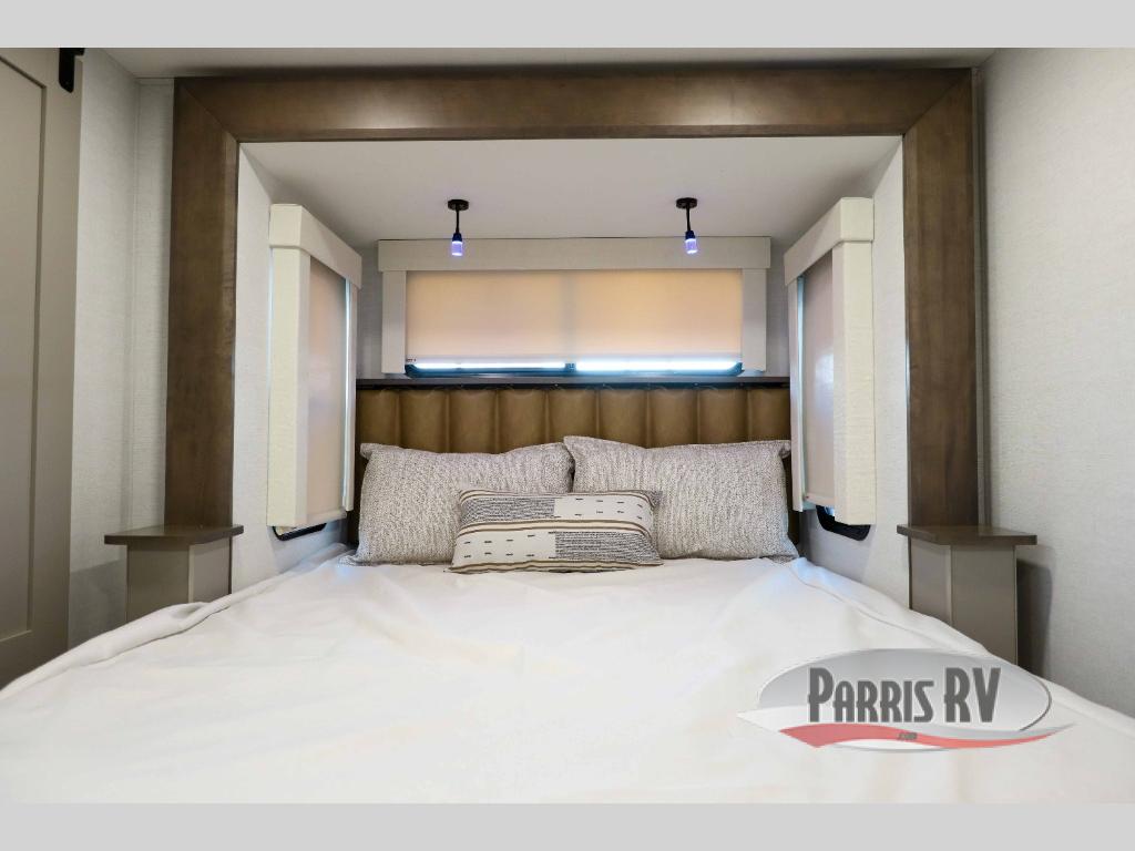 The Paradigm fifth wheels by Alliance RV are functional, high-quality, and luxurious for an unforgettable camping experience. There are three A/C units and a 40K BTU furnace to keep you comfortable year around, and you'll appreciate additional convenient amenities, like the all-in-one enclosed/heated utility center and the color coded and numbered wiring. A Helux Series coil spring pin box comes standard for hassle-free towing, along with Curt 8,000 lb. axles. You'll love the kitchen with its LG solid surface countertops and Lusso range, plus there is LED motion lighting in the pantry and a Maxx fan with a rain sensor to keep everything fresh when making dinner. Each model also includes an HD Smart TV in the living room and bedroom. And of course there are a variety of options you can choose from to further customize your fifth wheel; dual pane windows, Super Solar Plus, slide out awning toppers, and generator prep or a generator to name a few!