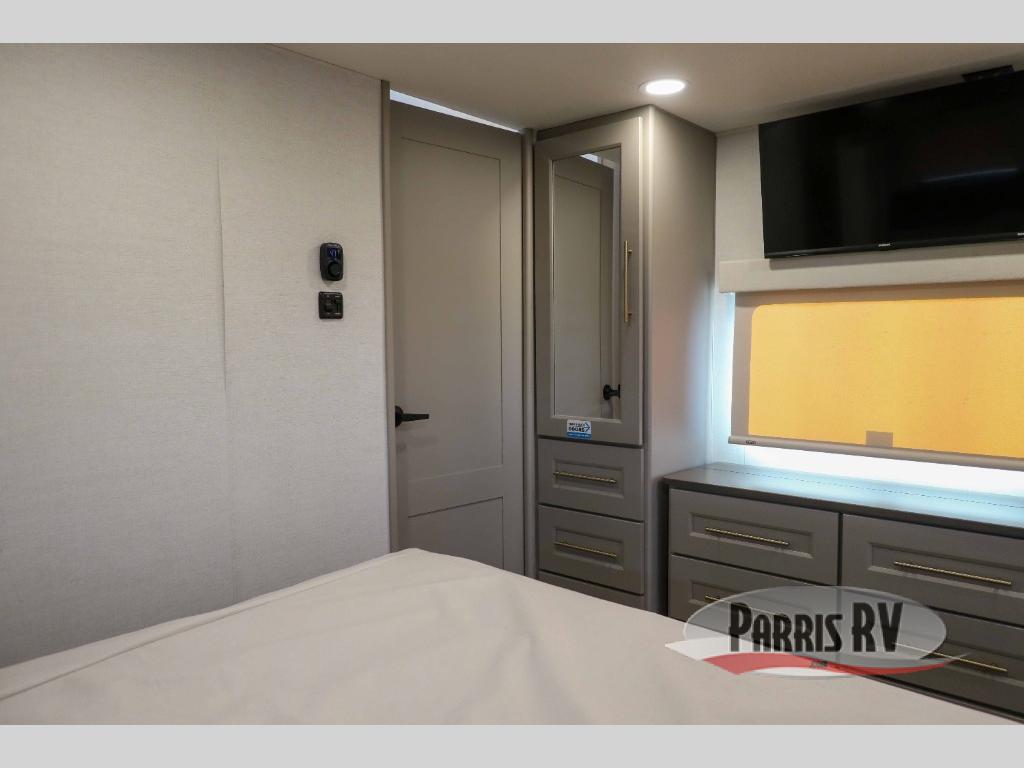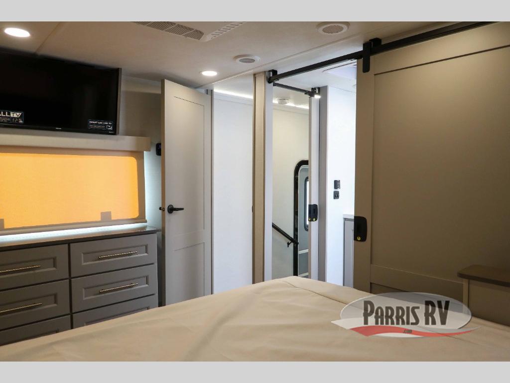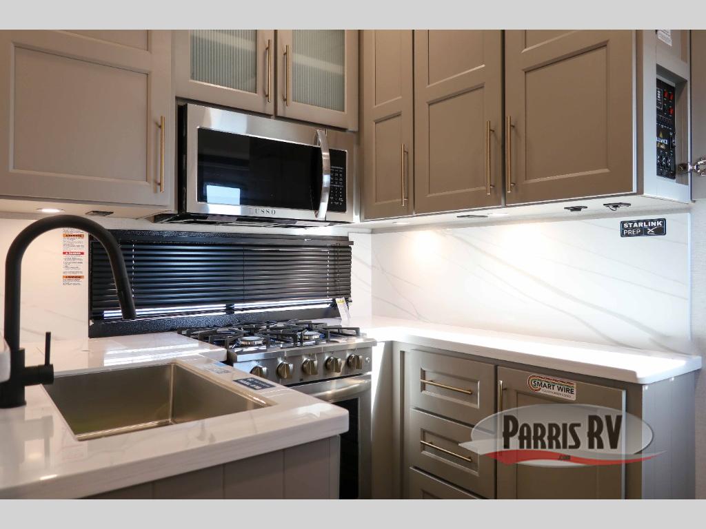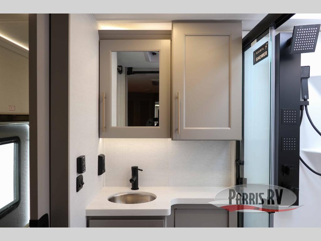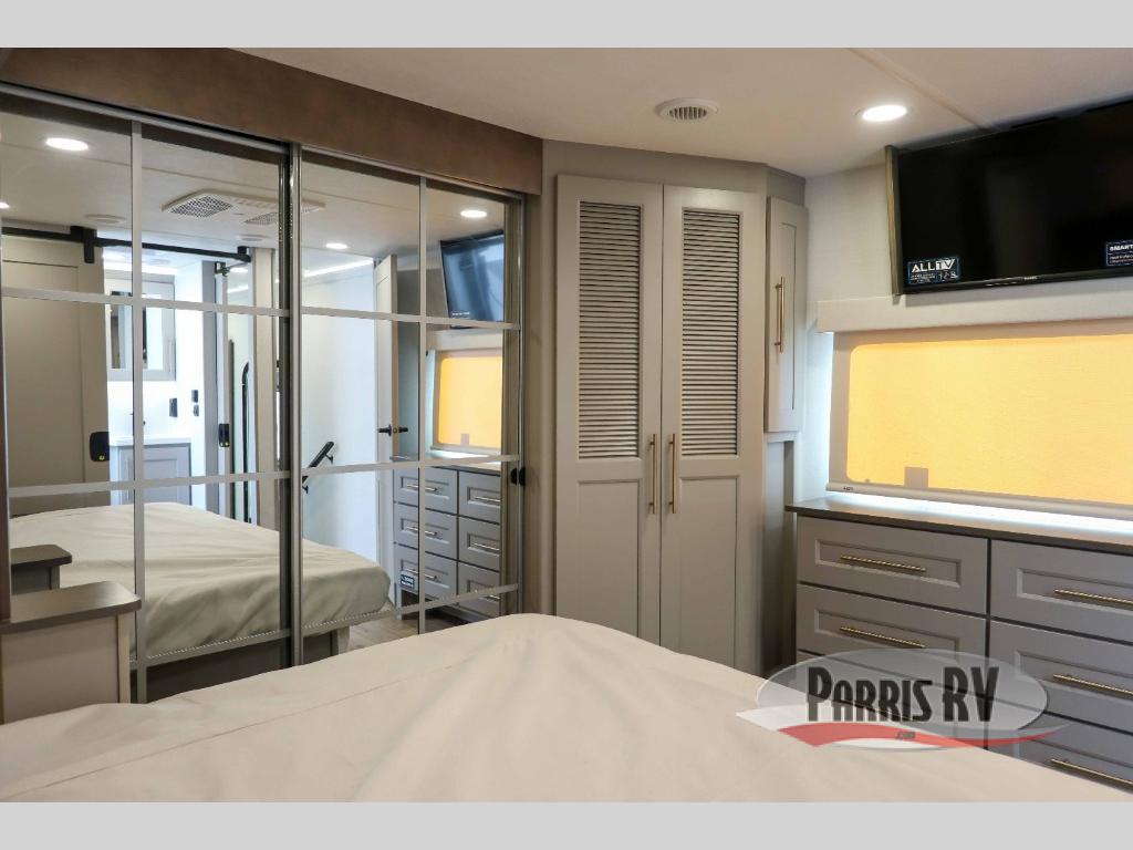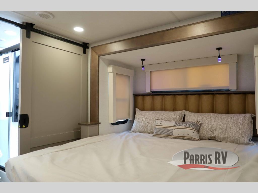 The Paradigm fifth wheels by Alliance RV are functional, high-quality, and luxurious for an unforgettable camping experience. There are three A/C units and a 40K BTU furnace to keep you comfortable year around, and you'll appreciate additional convenient amenities, like the all-in-one enclosed/heated utility center and the color coded and numbered wiring. A Helux Series coil spring pin box comes standard for hassle-free towing, along with Curt 8,000 lb. axles. You'll love the kitchen with its LG solid surface countertops and Lusso range, plus there is LED motion lighting in the pantry and a Maxx fan with a rain sensor to keep everything fresh when making dinner. Each model also includes an HD Smart TV in the living room and bedroom. And of course there are a variety of options you can choose from to further customize your fifth wheel; dual pane windows, Super Solar Plus, slide out awning toppers, and generator prep or a generator to name a few!