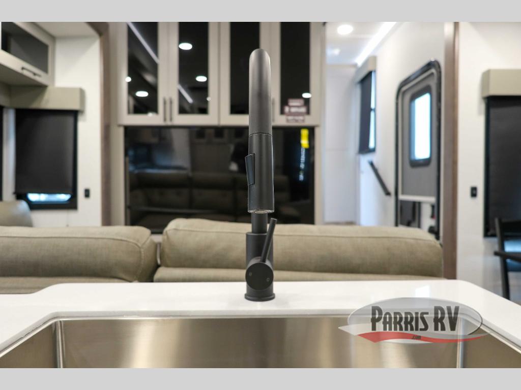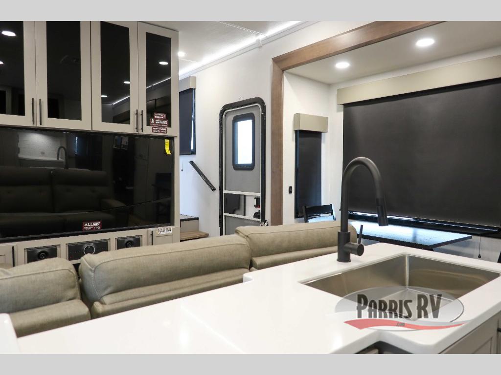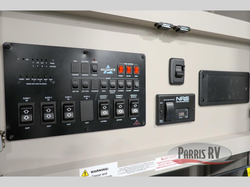 You can bring your toys with you wherever you go with any one of these Alliance RV Valor toy hauler fifth wheels! They are adventure-ready with a quality build from the walk on roof with seamless PVC roof covering to the commercial grade vinyl flooring and MorRyde CRE3000 suspension system. The Performance Running Gear package comes with a 101" wide-body benchmark chassis platform, Dexter axles, and a space enhancing drop frame storage compartment to pack in all your riding gear. You can even go off-gridding thanks to the Off the Grid Pack that has two 400-watt solar panels, generator prep, a 60-amp charge controller, and a 100-amp hour lithium iron phosphate battery. Some of the interior comforts you will enjoy are the hardwood cabinet doors and drawers, solid surface kitchen countertops, and commercial grade vinyl flooring with no carpet to make clean up a breeze. The Valor toy haulers are also the Masters of 12 Volt with USB charging station throughout, a 12V refrigerator, and more 12-volt features to make camping hassle-free!