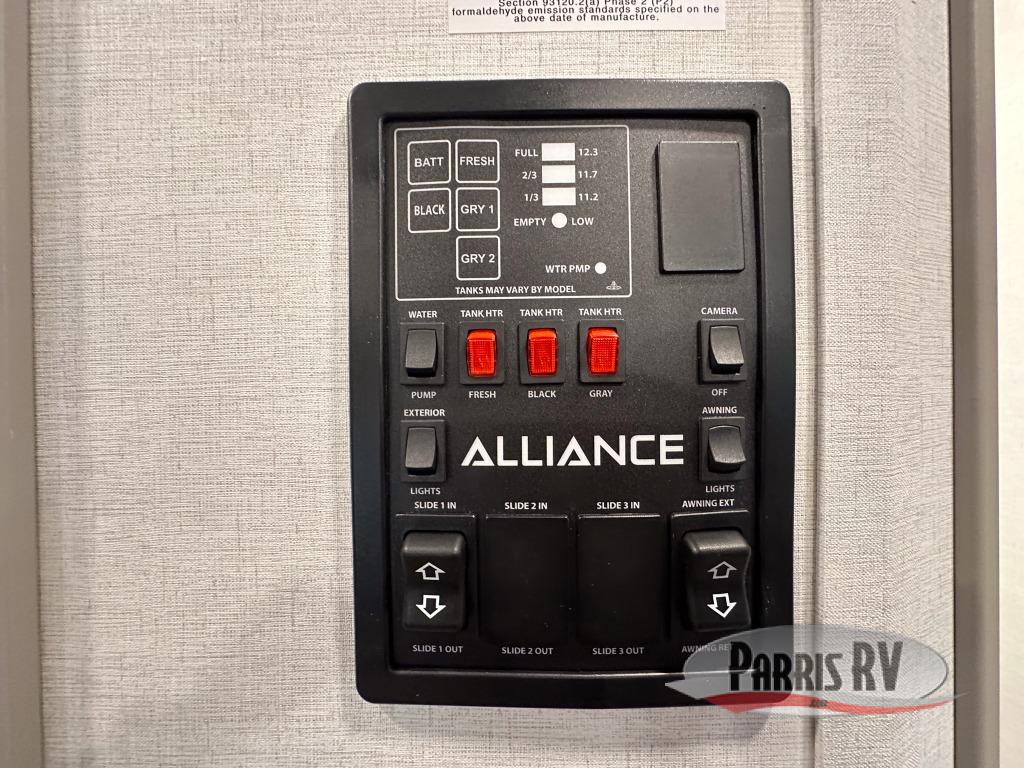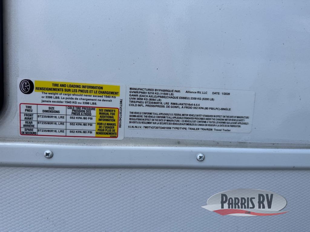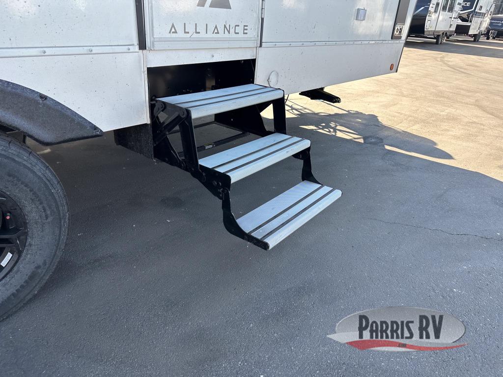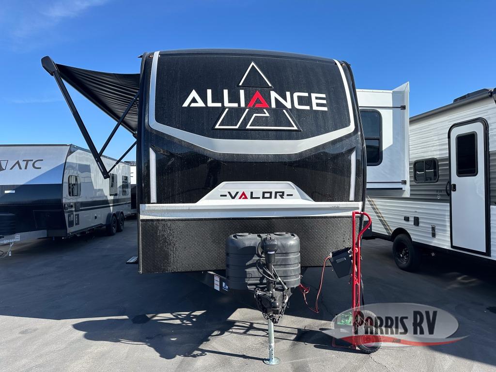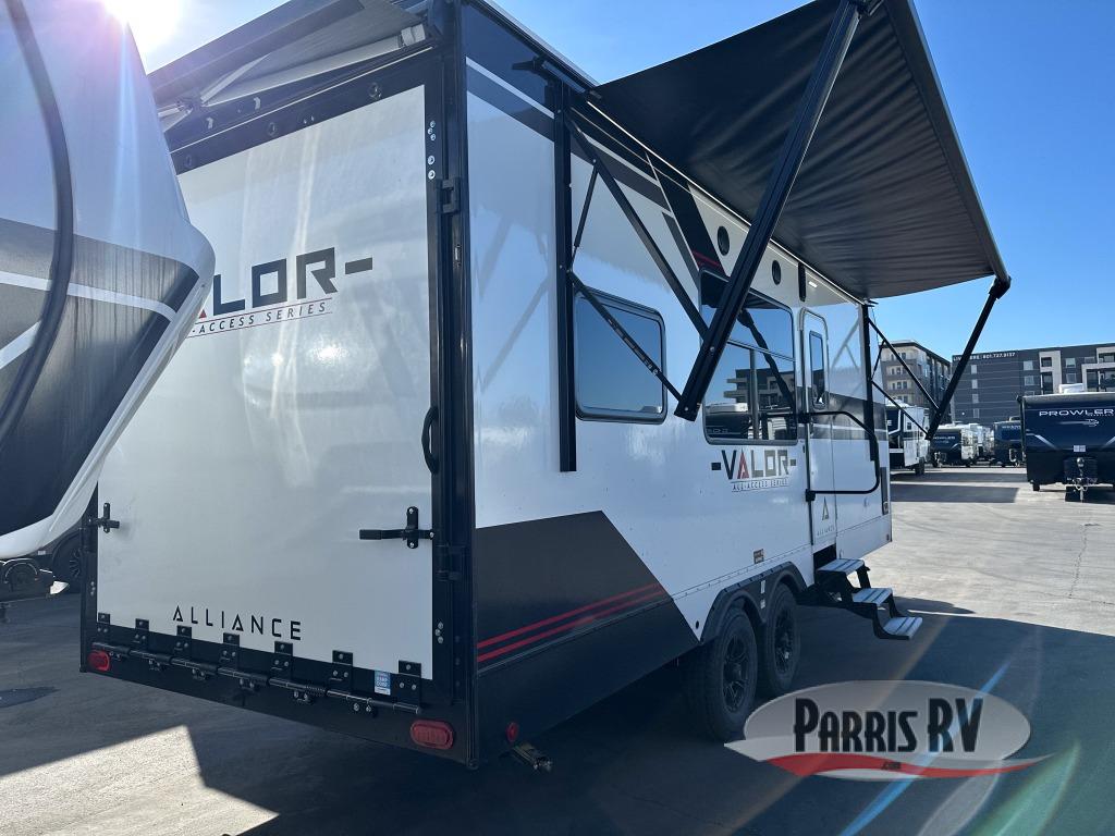 With any Valor All-Access toy hauler by Alliance RV, you will be getting a travel trailer or fifth wheel with exceptional features at a great value! There is a painted fiberglass front cap, Mylar reinforced exterior seals, Azdel-backed fiberglass sidewalls, and a walk-on roof with a seamless PVC roof covering for added strength and durability. The 101" wide-body Benchmark chassis means you can bring along your larger toys, and the multipoint tie-down system will keep your toys safe and secure on the way to the campground. All of your power needs will be met with the Masters of 12 Volt Package that includes a 12V JBL sound system and USB charging stations throughout, plus the Off the Grid Pack comes with a 400-watt solar panel, 30-amp charge controller, and generator prep to keep you going all week long. Some of the interior comforts you'll enjoy are commercial grade vinyl flooring with no carpet so you can easily clean up, black cabinetry hardware, residential LED recessed ceiling lights, and so much more!