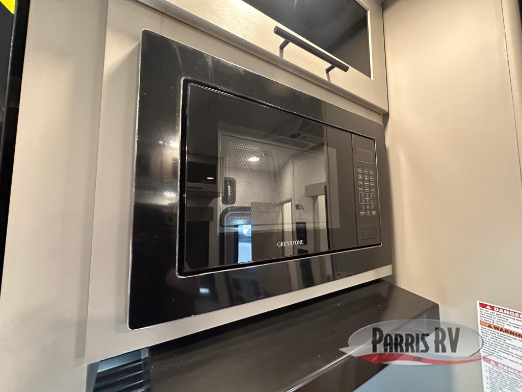 This toy hauler with 15' total garage space is sure to meet all of your needs! Once you unload the toys using the 8' weather resistant ramp door, you can relax on the dual opposing 60" sofas or on the dual lounge chairs. There is also a HappiJac queen bed above the sofas where your guests can sleep, while you take the queen bed slide out in the master bedroom. Speaking of the bedroom, you'll also find a wardrobe with a mirror and your own private entrance into the dual entry bath. In the morning, you can whip up breakfast on the three-burner cooktop or in the microwave oven before heading out on the trails!