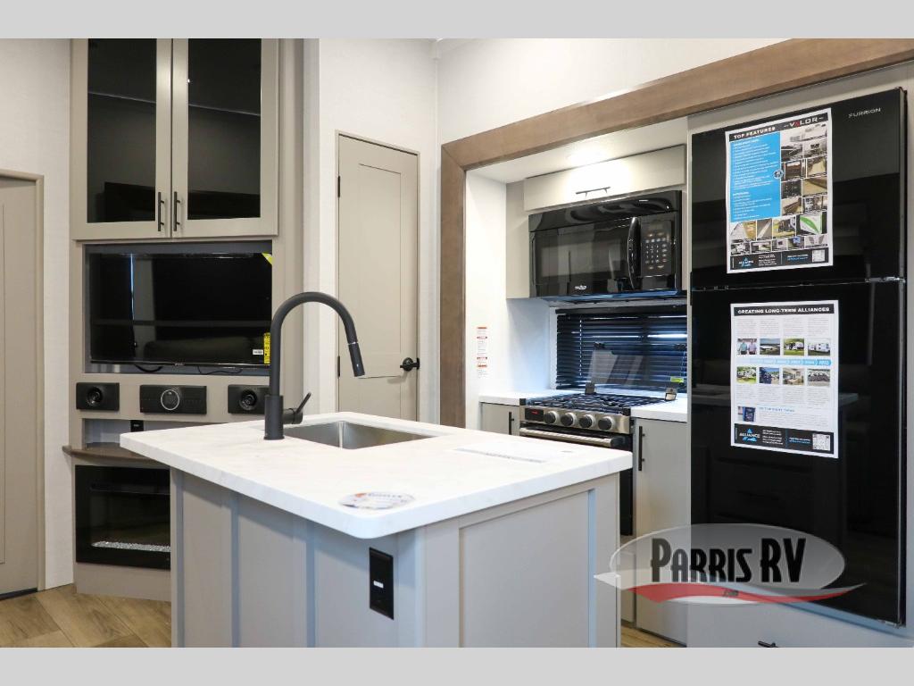 With any Valor All-Access toy hauler by Alliance RV you will be getting a travel trailer or fifth wheel with exceptional features at a great value! There is a painted fiberglass front cap, Mylar reinforced exterior seals, Azdel-backed fiberglass sidewalls, and a walk-on roof with a seamless PVC roof covering for added strength and durability. The 101" wide-body Benchmark chassis means you can bring along your larger toys, and the multipoint tie-down system will keep your toys safe and secure on the way to the campground. All of your power needs will be met with the Masters of 12 Volt Package that includes a 12V JBL sound system and USB charging stations throughout, plus the Off The Grid Pack comes with a 400 watt solar panel, 40 amp charge controller, and generator prep to keep you going all week long. Some of the interior comforts you'll enjoy are commercial grade vinyl flooring with no carpet so you can easily clean up, black cabinetry hardware, residential LED recessed ceiling lights, and so much more!