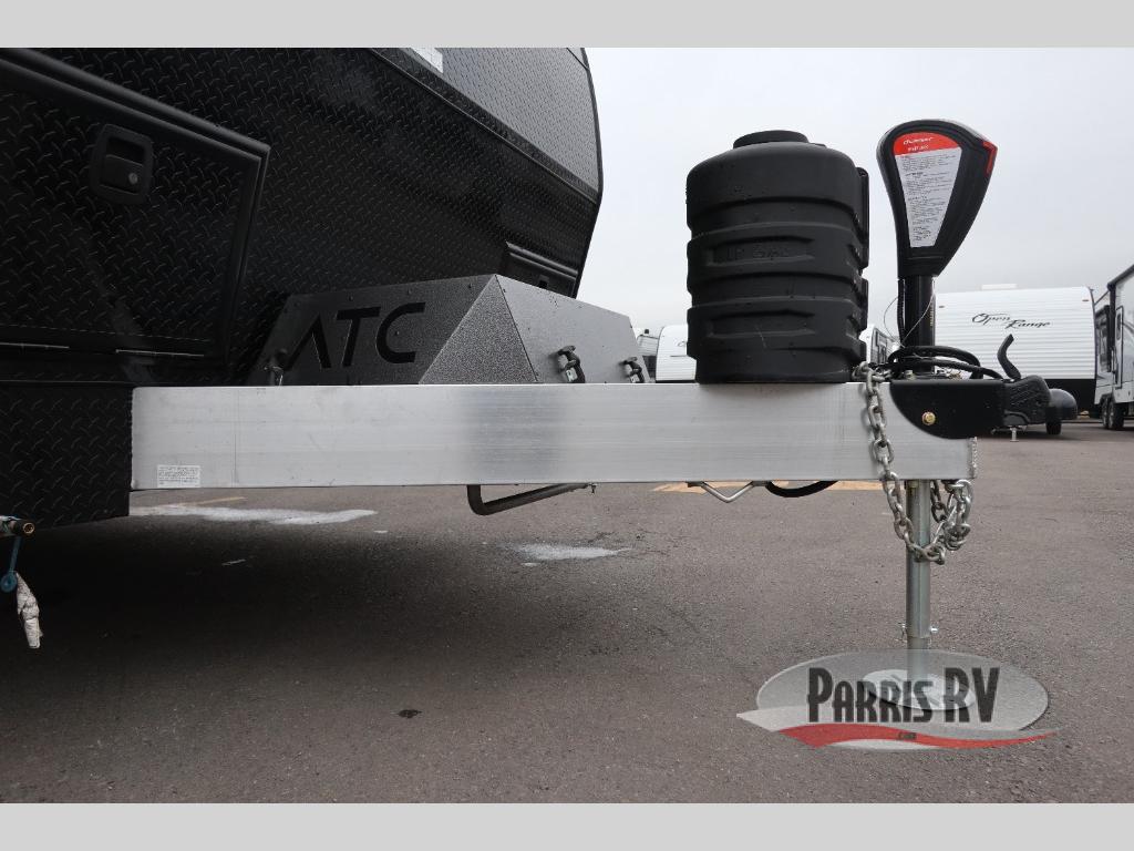 The PLA 550 toy hauler travel trailers by ATC Trailers are built for the long haul with a fully integrated aluminum frame, a one-piece aluminum roof, composite ramp door, and an enclosed underbelly. There is an electric tongue jack outside, along with a pass-through storage, power awning with a light strip, and electric scissor jacks for easy set up. The LifeTrac modular component system will let you configure your garage space how you need it, and there are three rows of Airline tracks with covers to secure your gear. You will also love the interior with its aluminum cabinets with solid surface countertops, dimmable can ceiling lights, and composite with commercial-grade vinyl flooring to name a few comforts!