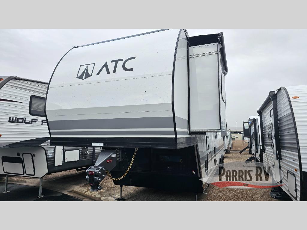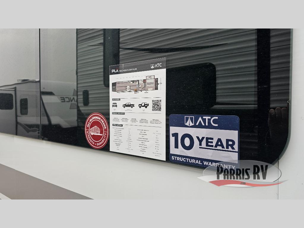 With any PLA 750 toy hauler fifth wheel by ATC Trailers, you will find a durable unit made to last thanks to the 6-sided welded aluminum frame, enclosed underbelly, composite ramp door, and more! The LifeTrac modular component system lets you configure your garage how you need it, and there are also tie-downs with three rows of Airline tracks with covers and an exterior pass-through storage for all the riding gear! Inside, you'll enjoy aluminum cabinets with solid surface countertops in the kitchen and bath, dimmable can ceiling lights, composite with commercial-grade vinyl flooring, and a porcelain toilet to name a few stand-out features. You can further customize your toy hauler by adding one or more of the available options, such as a deck package, 36 gallon fuel station, happijac sofa sleepers, an exterior shower, and more!