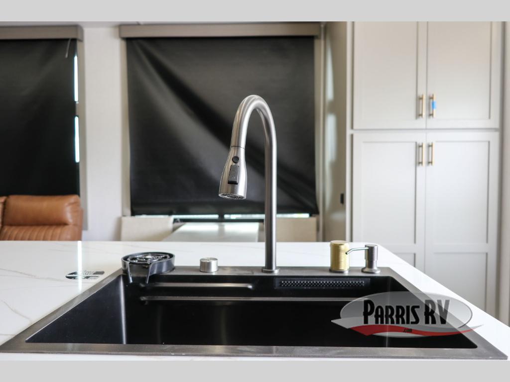 With any Imperium fifth wheel by Axiom RV, you will find comfort at every turn! The Curt touring coil suspension system with a Curt coil pin box provides smooth towing from home to campground, and the Lippert 6-point hydraulic leveling system will make set up a breeze. There are also Lippert solid step triple entry steps, a Pathfinder lighting system integrated within the turn signals, an extended latch entry door lock system, and a 200-watt solar panel for off-grid capabilities. These features are found within the Lux Package and Essential Package, while the AX Comfort Package includes hardwood cabinet doors and solid surface kitchen countertops. There is also a Fogotti on-demand water heater, a Freedom pass-through storage, and sleek tinted frameless windows. Available options that can be chosen include a second solar panel, a Splendide washer/dryer, a 6K LP generator, and more!