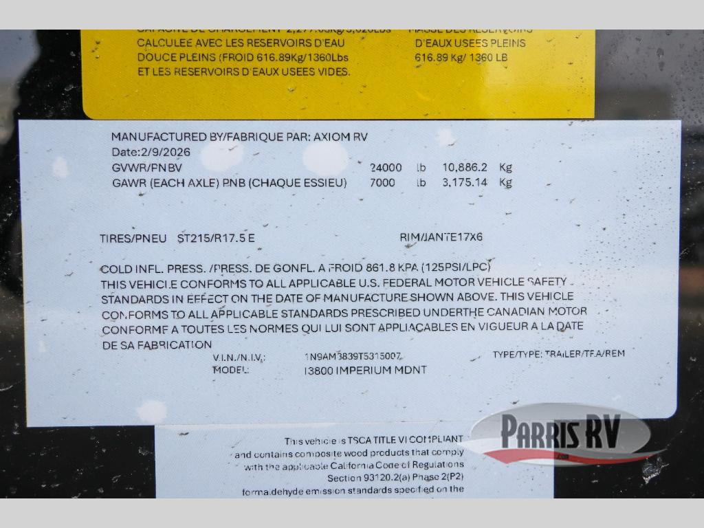 Axiom RV Imperium fifth wheel I3800 highlights: