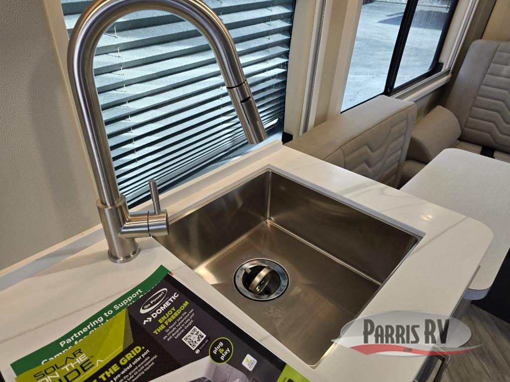 The Beyond Class B gas motorhomes by Coachmen are packed full of stylish and convenient features to meet your adventurous lifestyle. You will love how easy it will be to drive with the Supersprings International suspension kit, the ten speed transmission, and the added safety features, like the blind spot assist and forward collision warning. The ABS insulated rear doors will provide more protection during the colder months, plus each model includes a Truma Combi Eco Plus furnace/water heater for maximum efficiency. A King Olympus digital antenna, WiFi router and cell booster prep means you can stay connected to the outside world as you travel, and the Firefly multiplex system includes dual screens to control your coach's functions with ease. Inside, you'll find hardwood cabinetry, a one-piece fiberglass shower, a rear pull-down screen and rear window covers, and two contemporary decor choices to fit your style. The optional Li Lithium Battery System can be added which features a 640 amp-hour lithium battery, a Xantrex XC Pro 3,000W inverter/charger, A Bluetooth battery management system, and more power features!