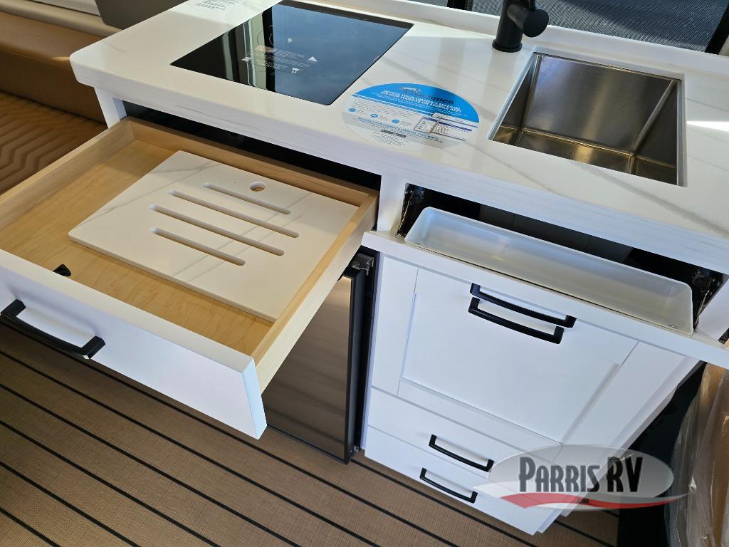 Are you looking for a versatile coach to take on far away journeys? This all-wheel drive includes a rear wet bath with a flip-down sink, plus a fiberglass shower to freshen up in each day. You can take a rest on the twin beds after a day of exploring, and the swivel table here will be the perfect spot to enjoy lunch at. If you like to cook your own meals you're in luck since there is an induction cooktop and a microwave oven, plus a Nova Kool compressor refrigerator for milk and eggs.