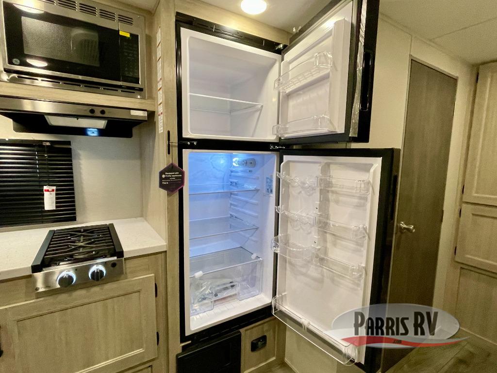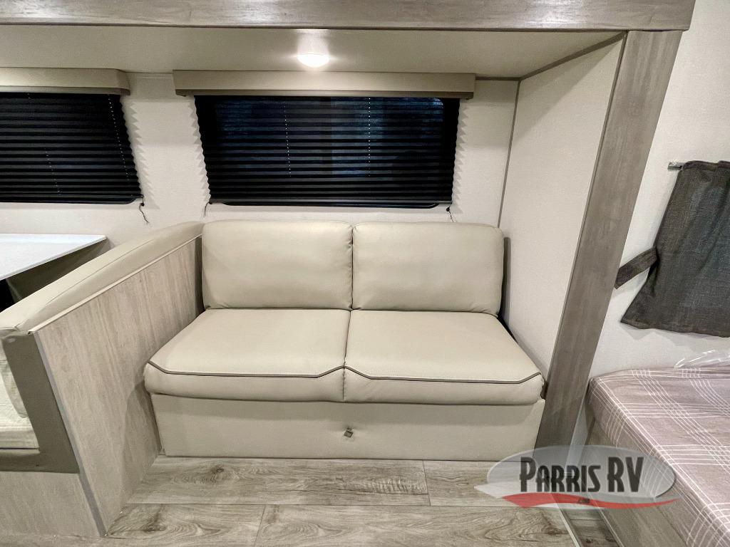 This travel trailer will be the best RV vehicle for you. Built to offer the ultimate comfort, this unit has a 60” jack-knife where you will be able to rest like royalty due to its undeniable comfort and the spacious queen bed will make it hard to wake up in the morning. The 38” dinette is the perfect feature for enjoying all your delicious meals prepared in the convenient kitchen which boasts a microwave, refrigerator, two-burner cooktop, sink and pantry storage. At the end of the day, relax in the incredible full bathroom featuring a 24” x 36” tub/shower, ideal for taking care of yourself.